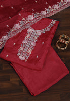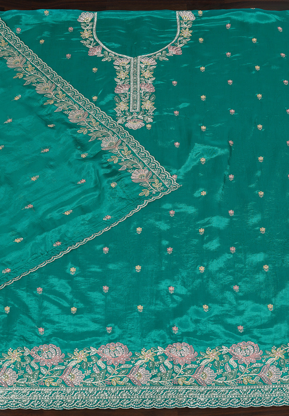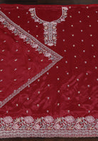 Experience the allure of Silk with our Unstitched Uppada Silk Suit, featuring zarkan, Aari And Thread work. Accompanied by an unstitched Shantoon bottom and a Uppada Dupatta, this ensemble embodies timeless elegance. The Uppada Silk Dupatta's Aari Thread, And Sequins Work adds a delightful touch, creating a charming and sophisticated look.