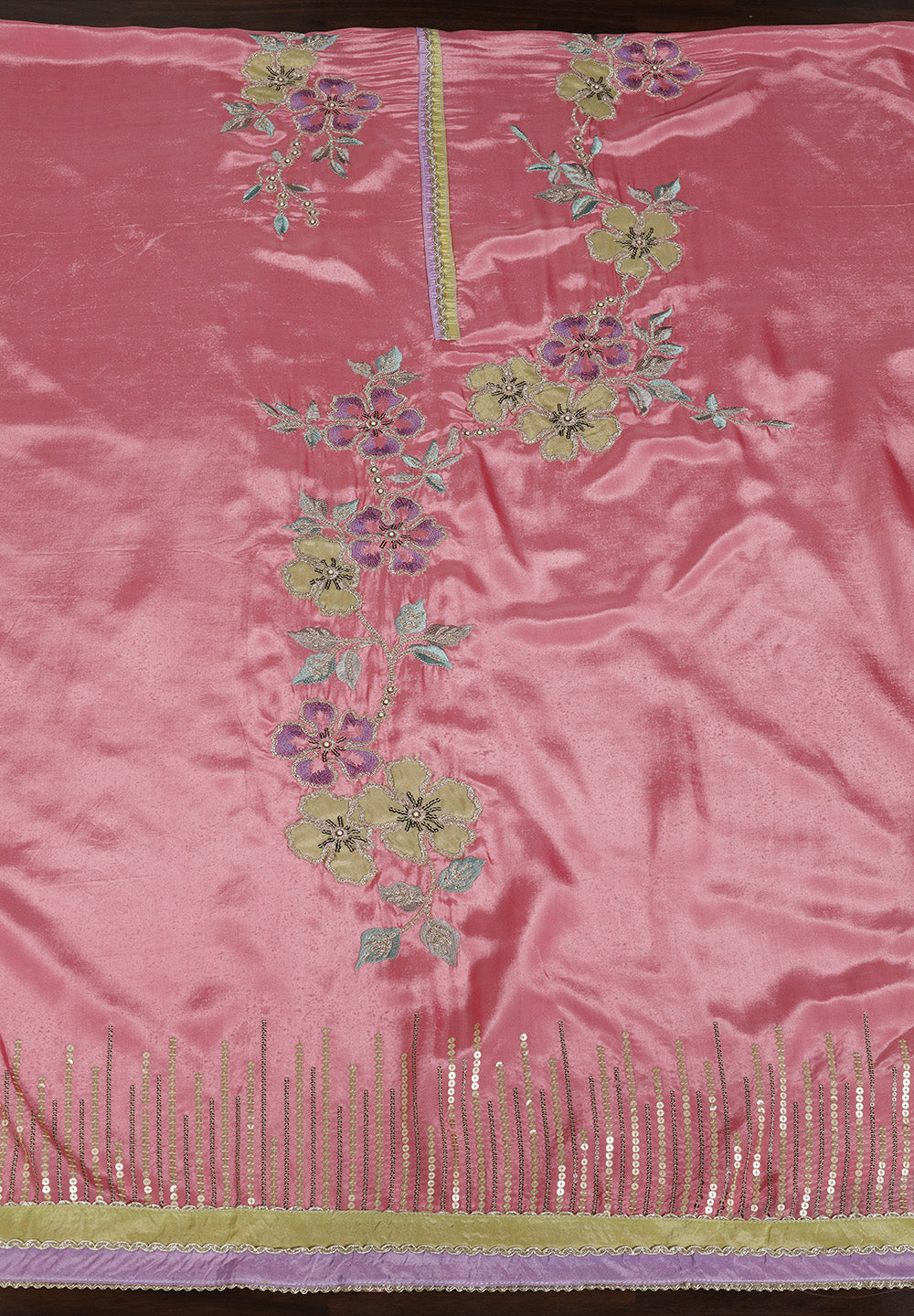 Experience the allure of Silk with our Unstitched Uppada Silk Suit, featuring Aari, Thread And Sequins work. Accompanied by an unstitched Cotton Silk bottom and a Chiffon Dupatta, this ensemble embodies timeless elegance. The Chiffon Dupatta's Aari Thread, And Sequins Work adds a delightful touch, creating a charming and sophisticated look.