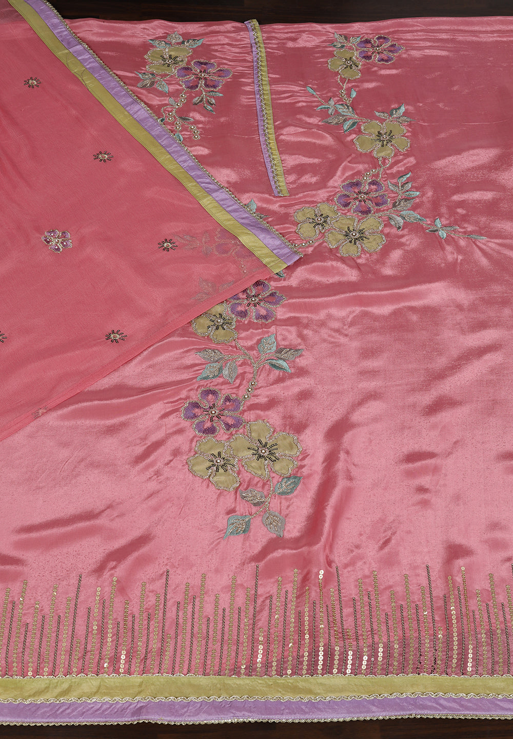- Accompanied With An Unstitched Cotton Silk Bottom And Chiffon Dupatta