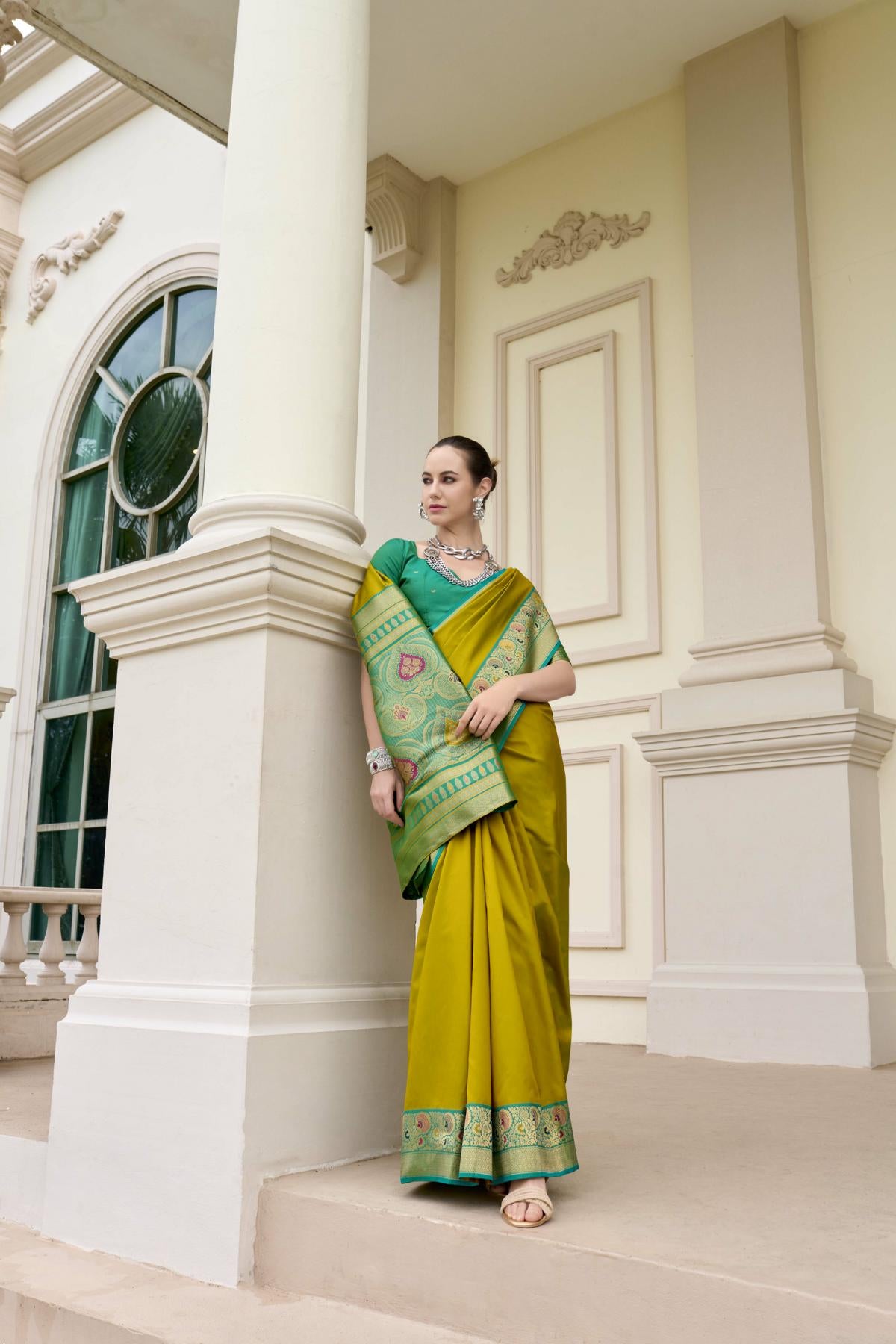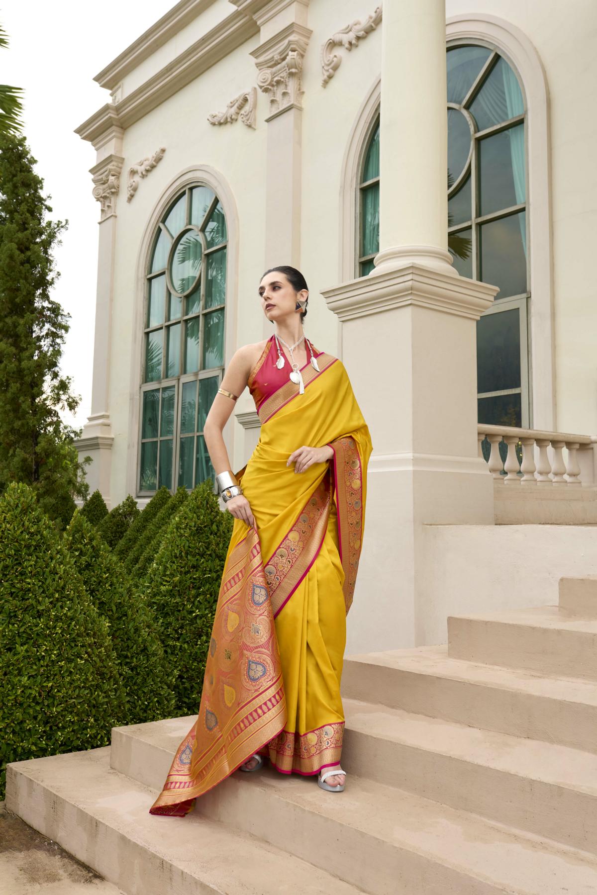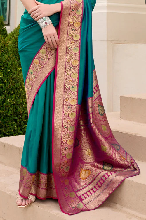 Draped in Royalty: Banarasi Silk with Golden Zari Grandeur