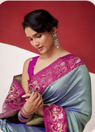 Dual-Tone Contrast Satin Silk Saree With Zari Pallu