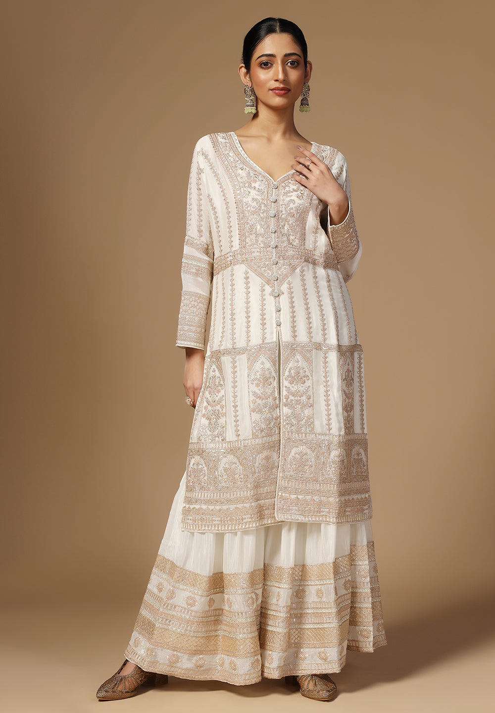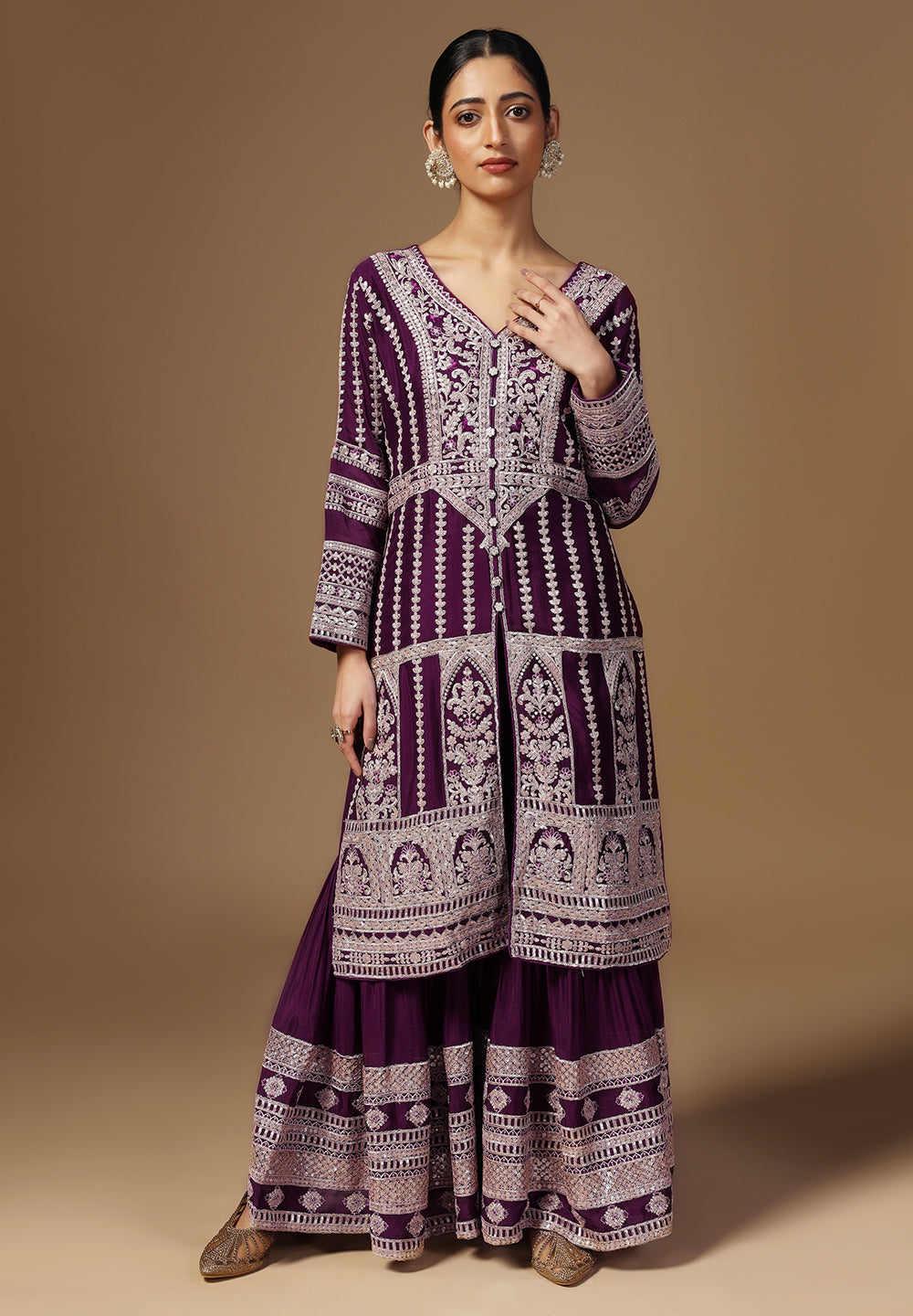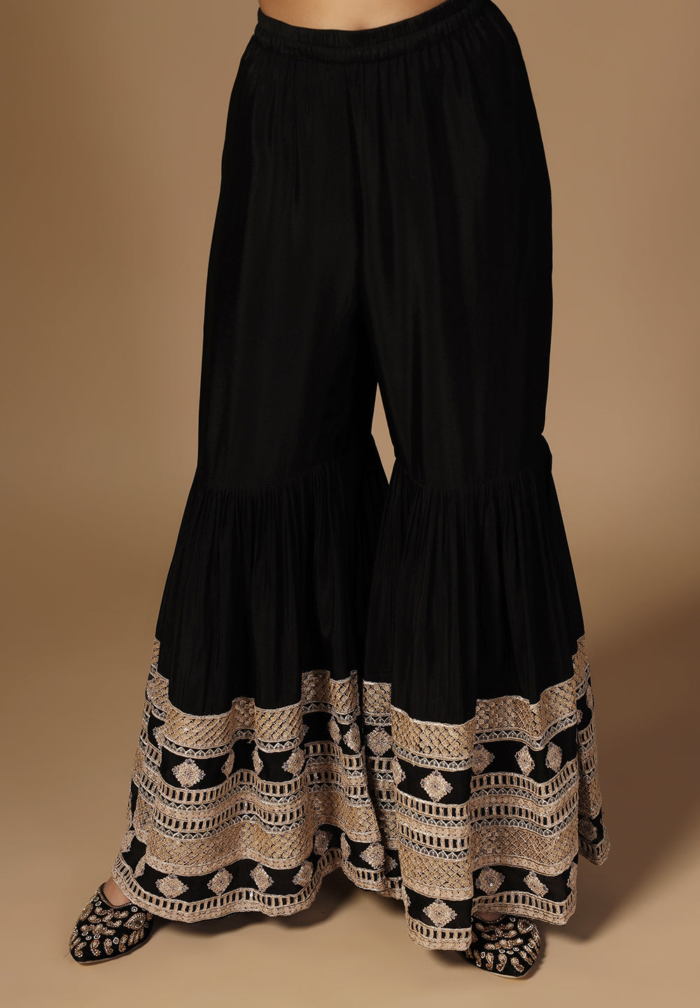 - The Sharara Suit is embellished with Beautiful all Over Zari work
