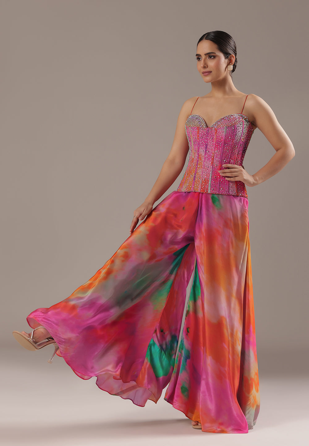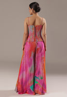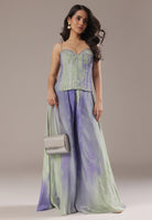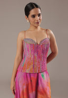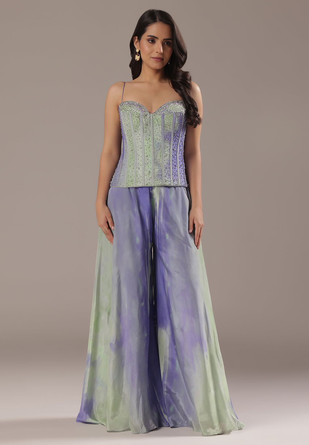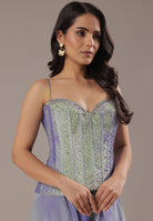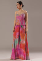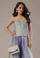 Embrace elegance with our crepe Choli adorned with beautiful Zarkan and Mirrror work. Accompanied by a stylish Sharara, this ensemble is a symbol of traditional charm and contemporary allure. Make a refined and chic statement at any occasion with this fusion of classic fashion and modern sophistication.