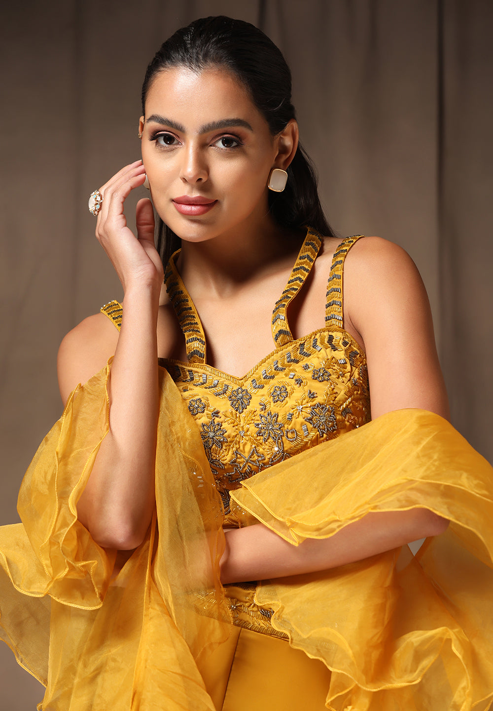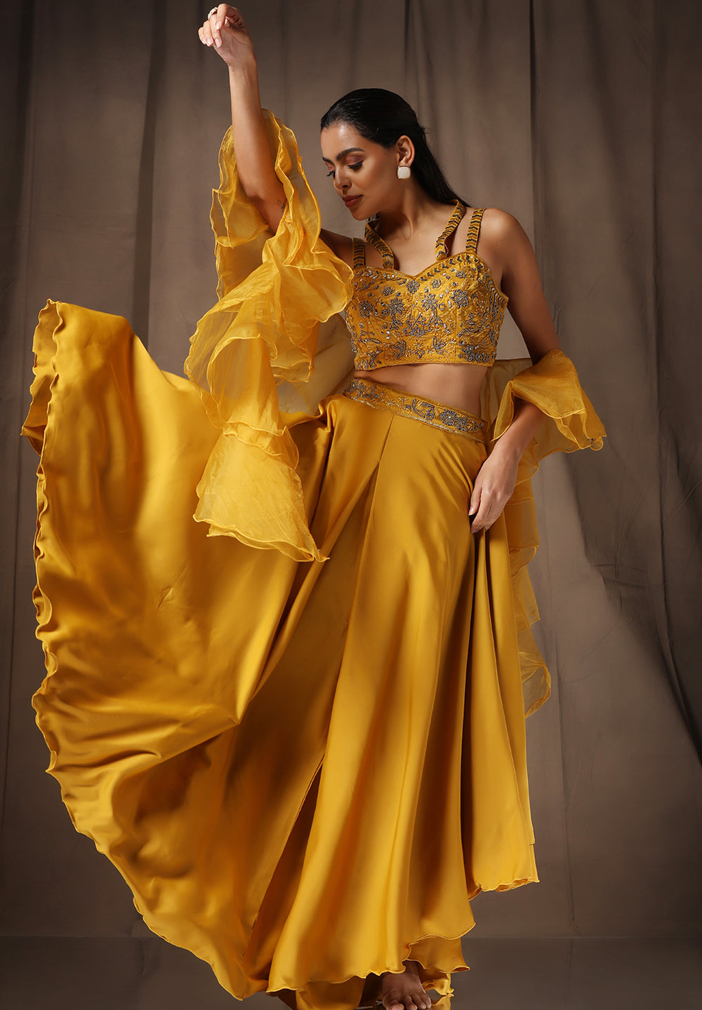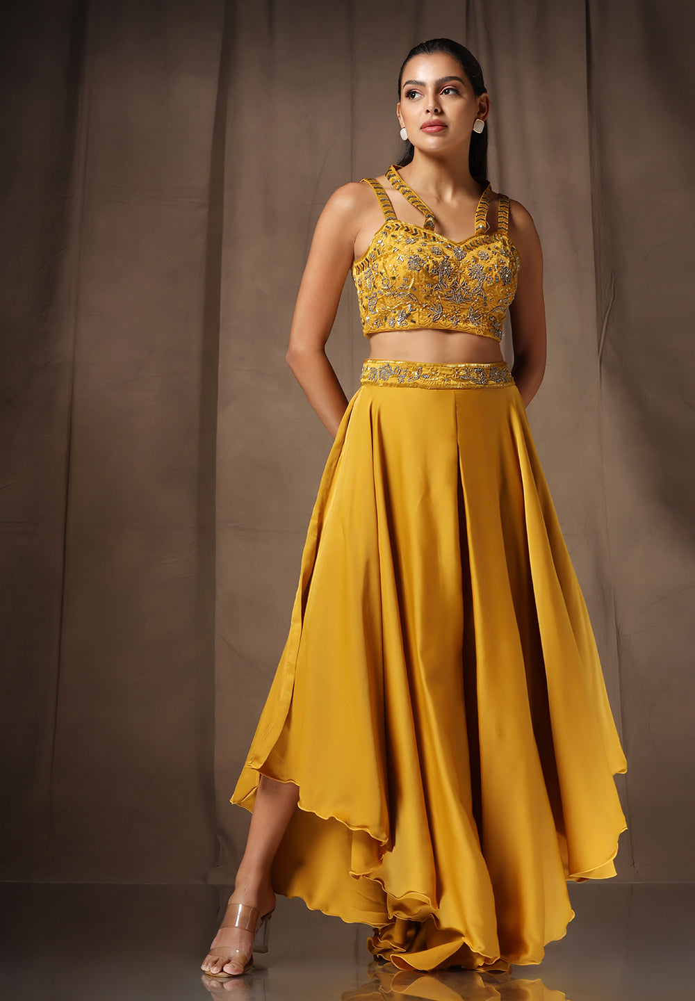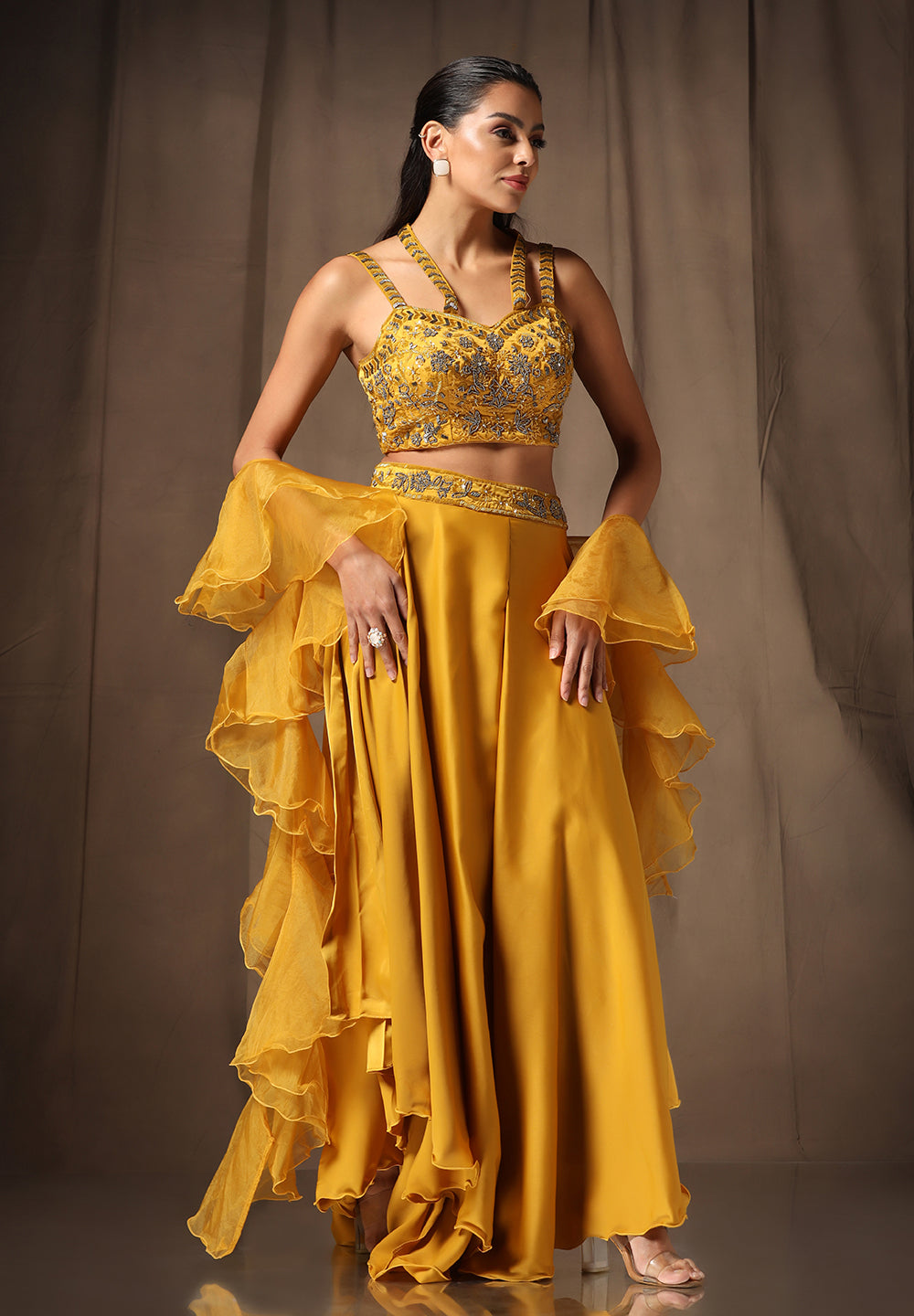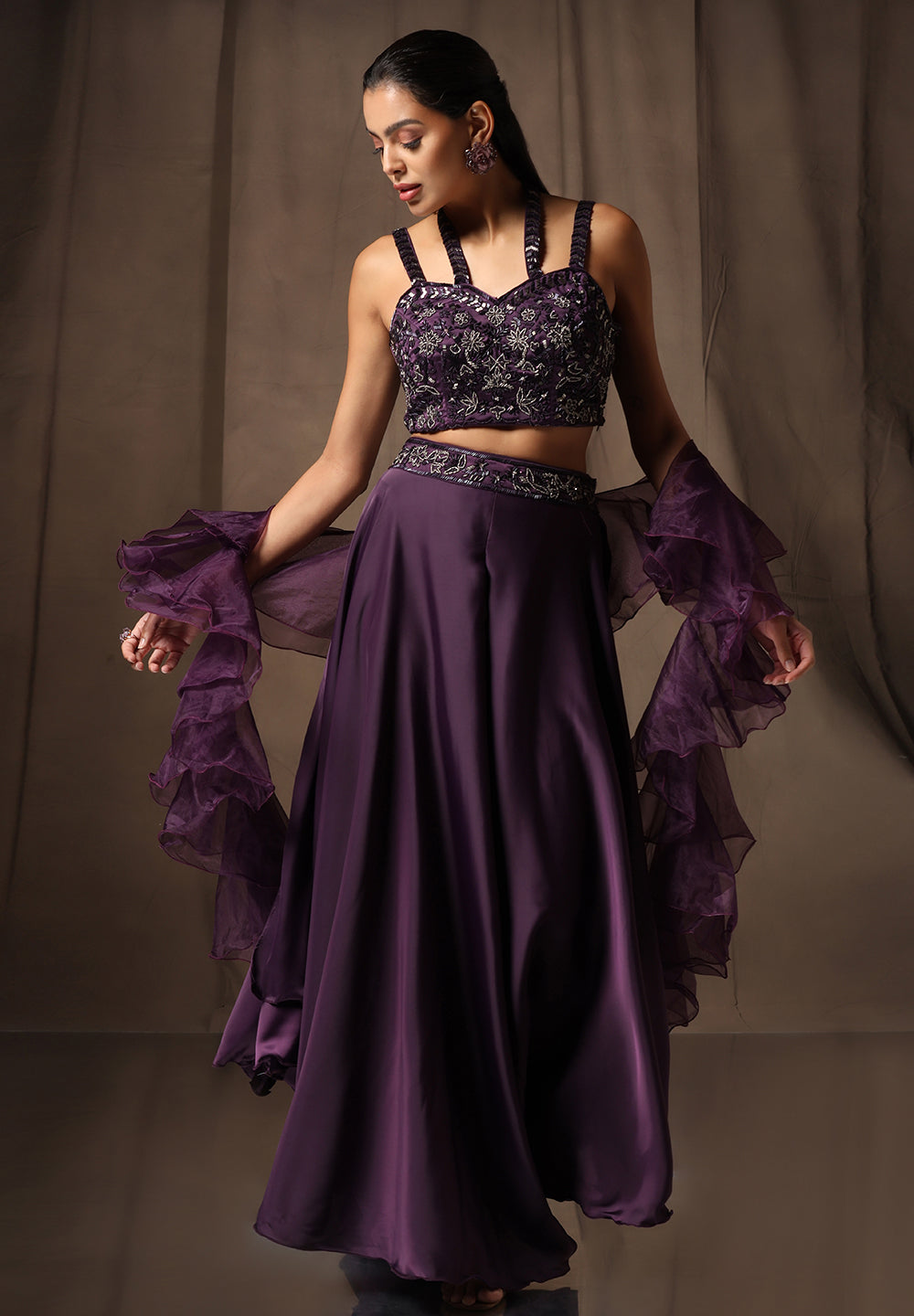 - Accompanied with a bottom and Choli