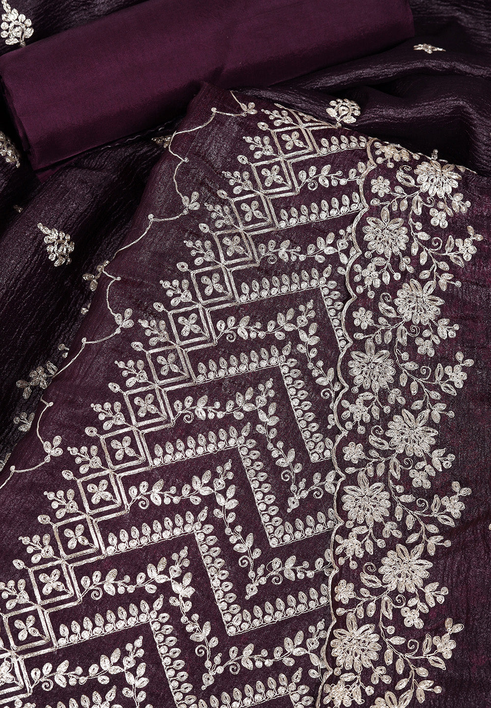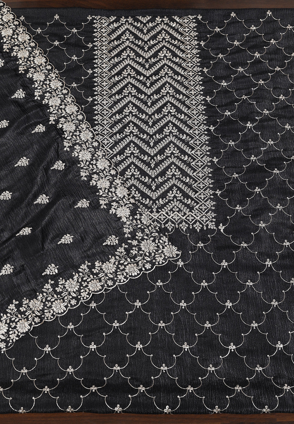 Elegant Crush Tissue Unstitched Suit with Exquisite Aari Work