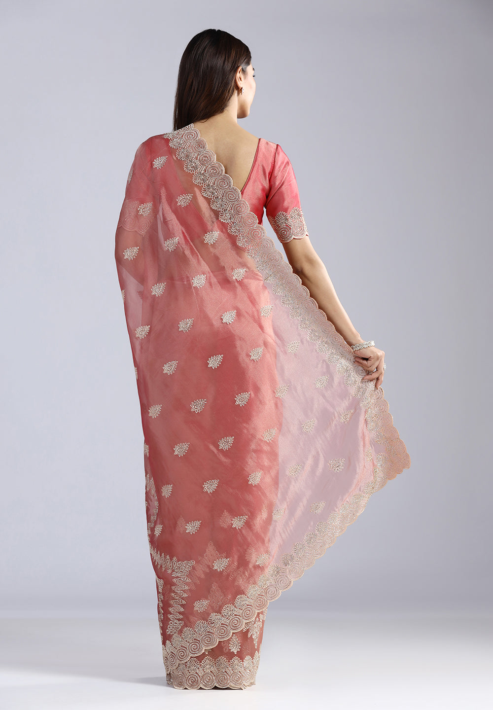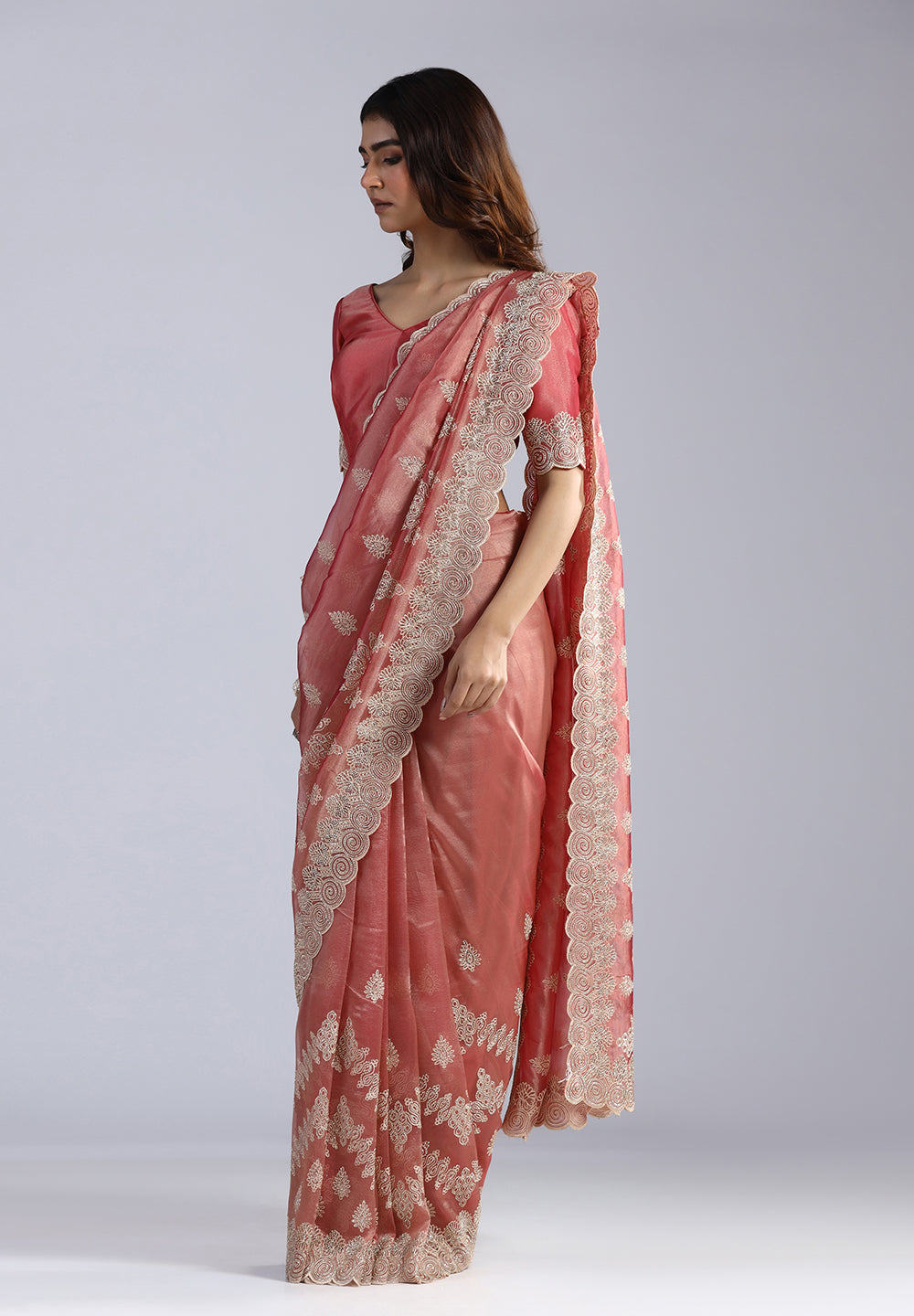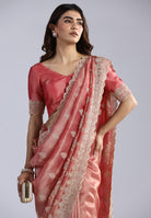 Exquisite Shimmer Organza Saree with Intricate Threadwork & Swarovski Accents