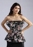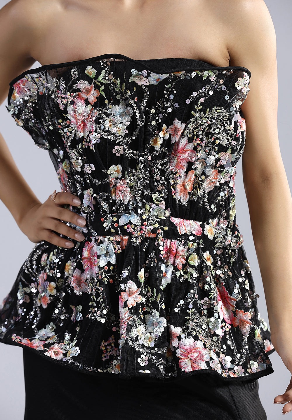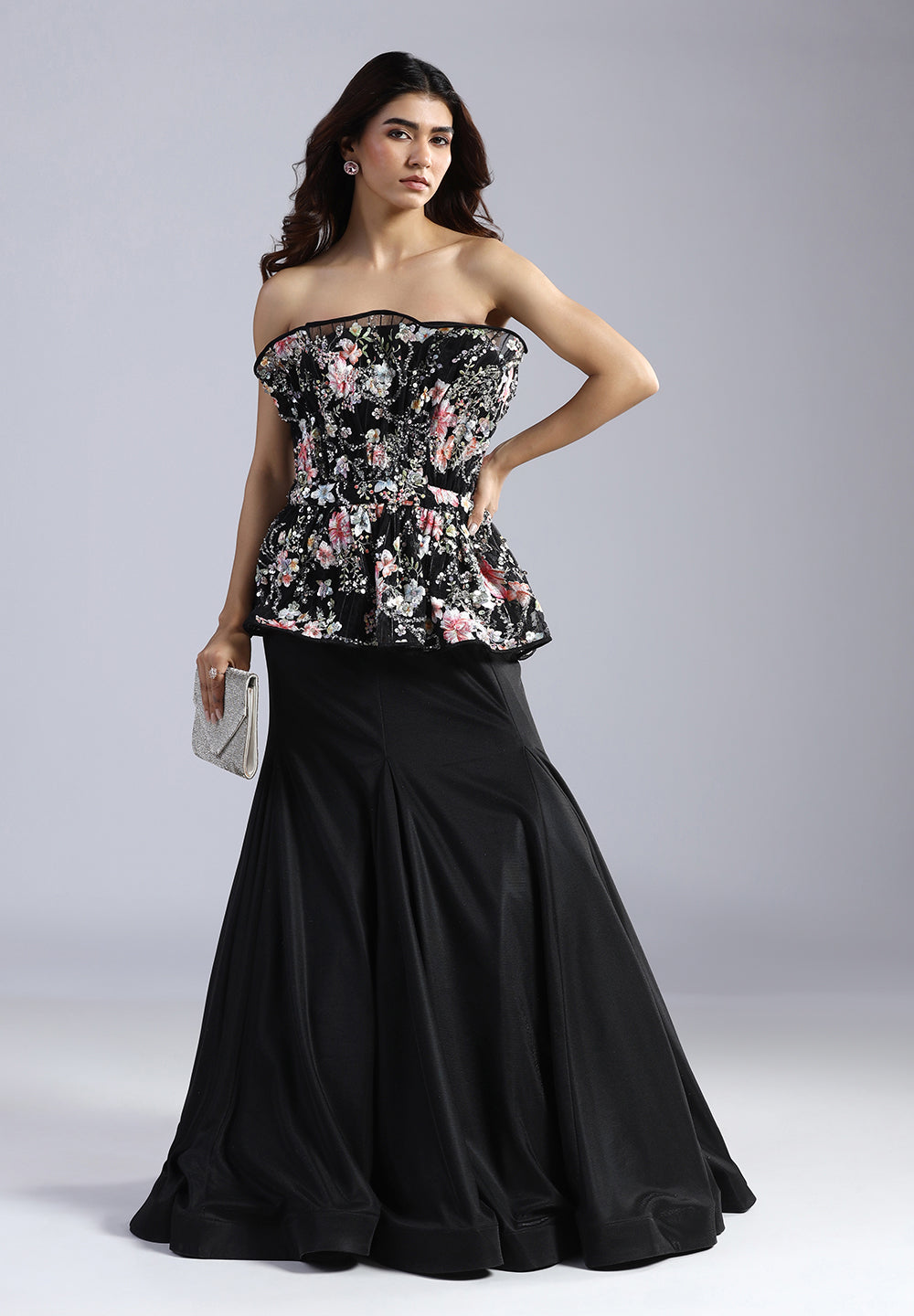 Floral Sequin Peplum Gown with Flared Mermaid Skirt