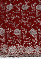 - All-Over Buti & Vine Pattern: The intricate "Jaal" pattern covers the "Pallu" and lower pleats, while smaller, coordinated floral "Butis" accent the rest of the saree for a balanced look
