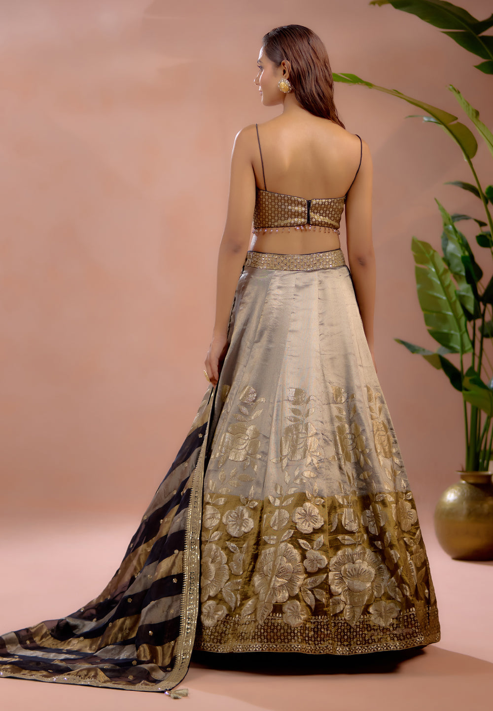Inayat - Golden Grace Tissue Lehenga Embellished with Luxurious Zari Work