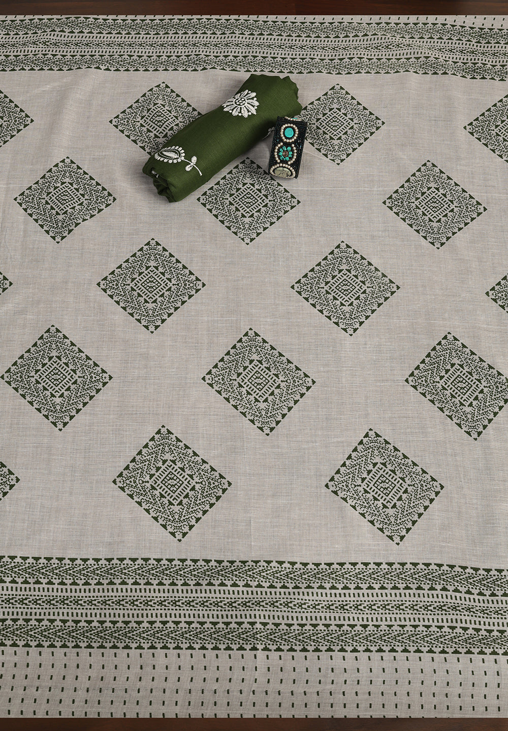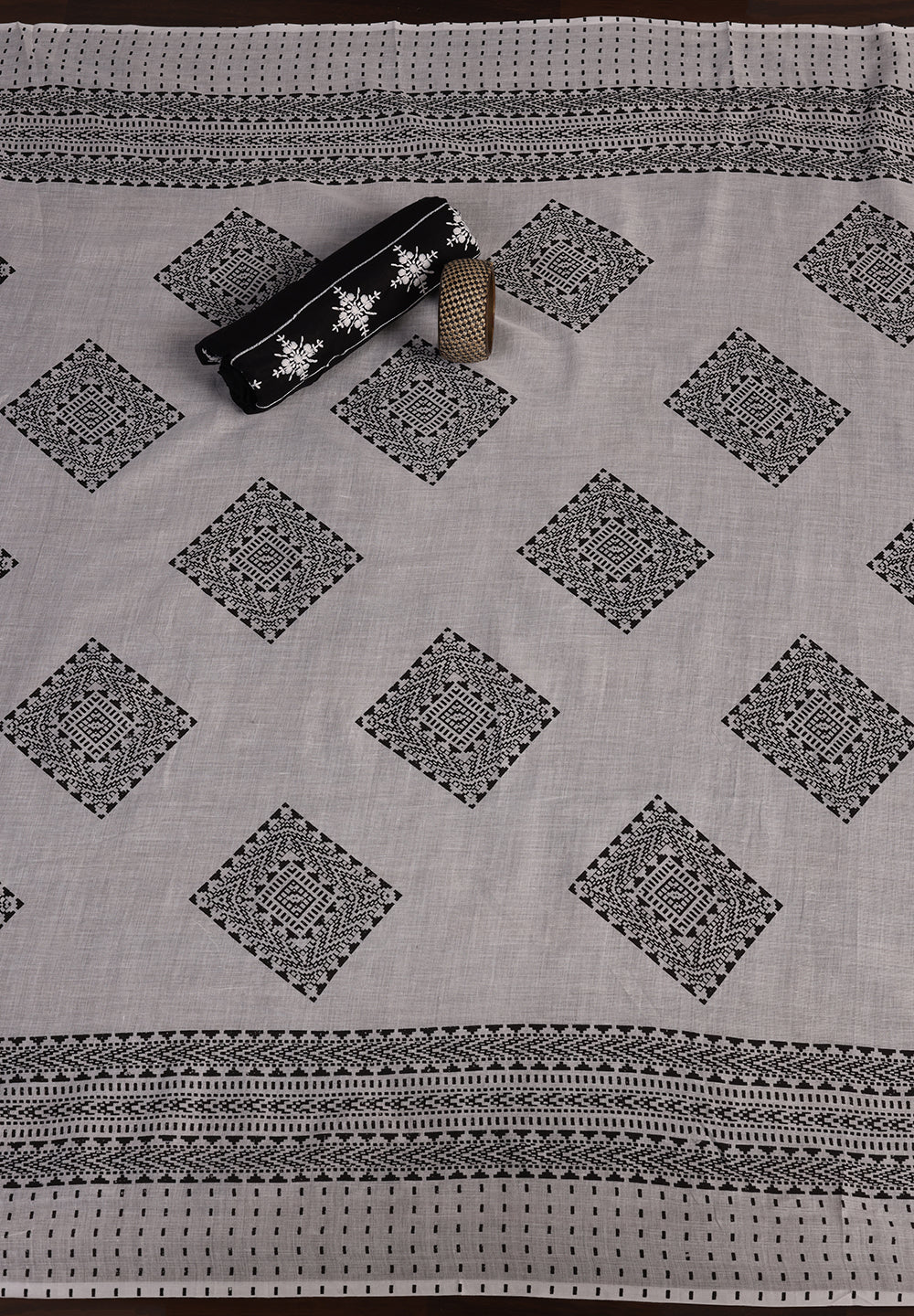 - Accompanied With An Unstitched Cotton Bottom And Printed Cotton Dupatta