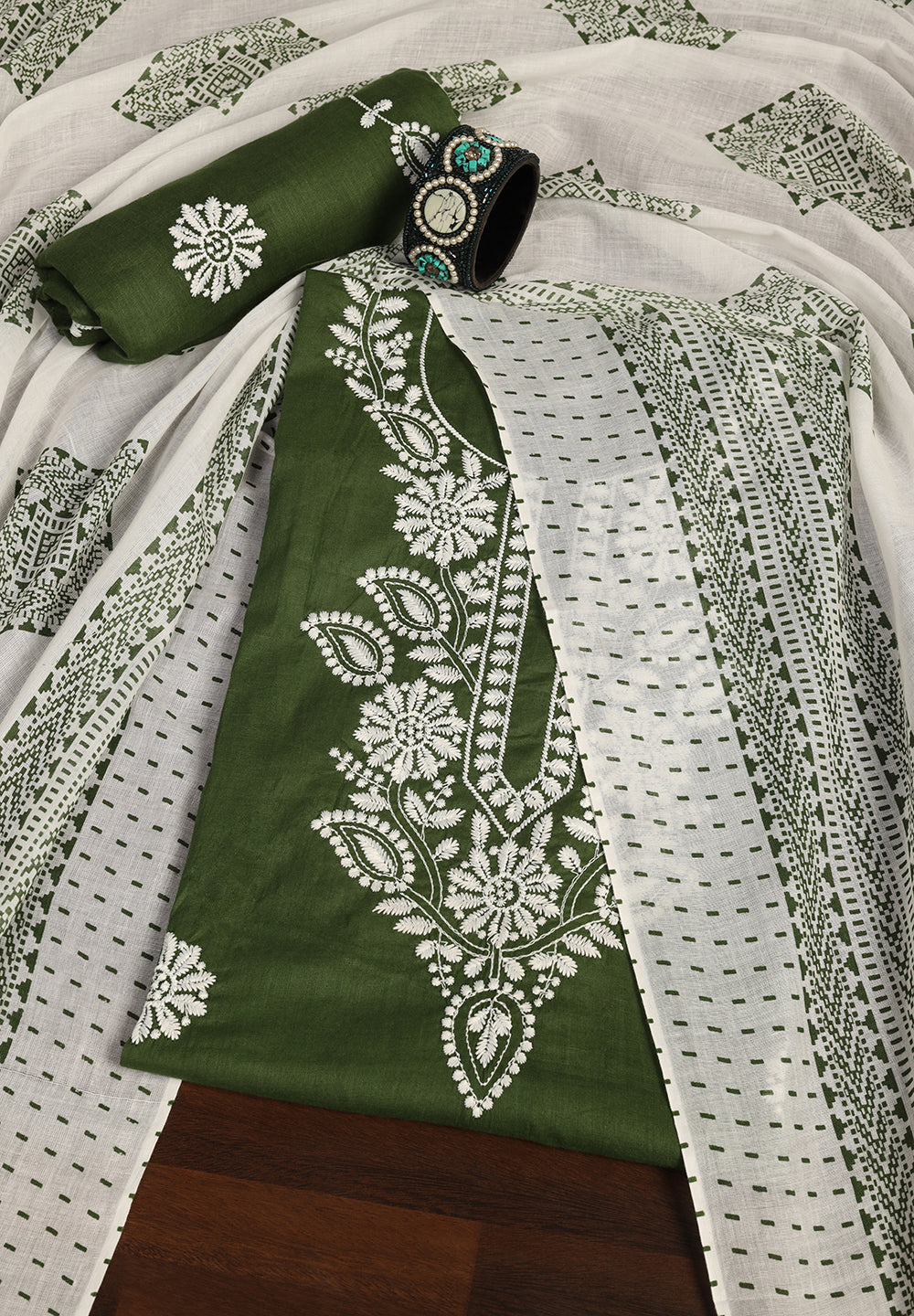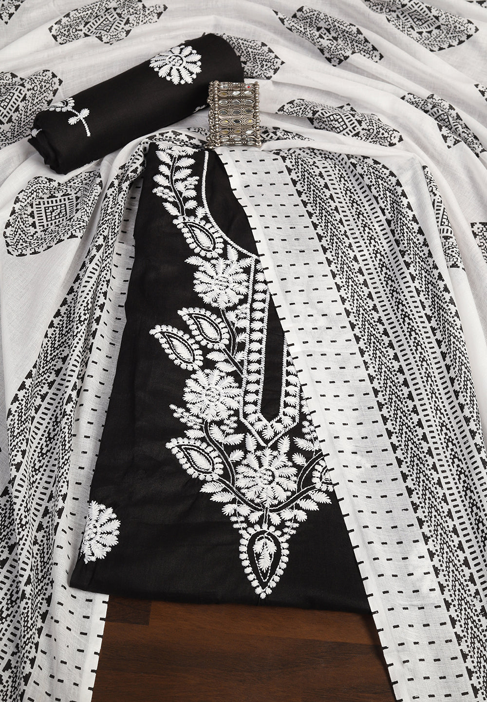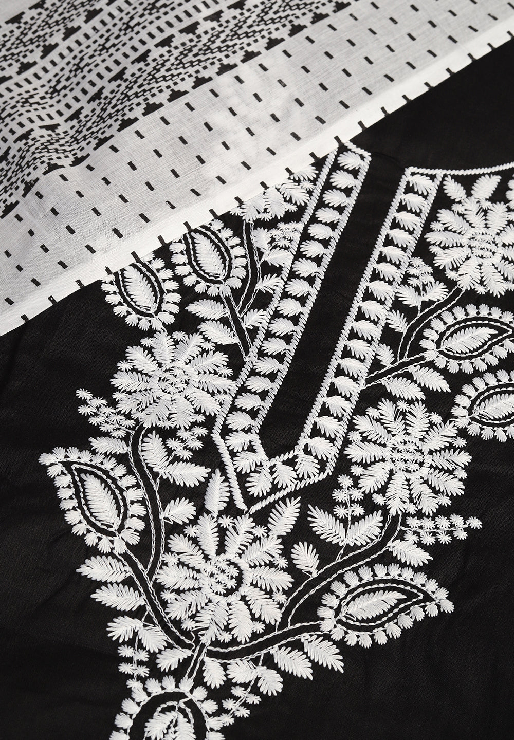 Elevate your style with our Cotton Suit Set. The unstitched fabric is adorned with exquisite Thread Work. Paired with an unstitched Cotton bottom and a Cotton Printed Dupatta, the ensemble is designed to bring together the beauty of craftsmanship and elegance.