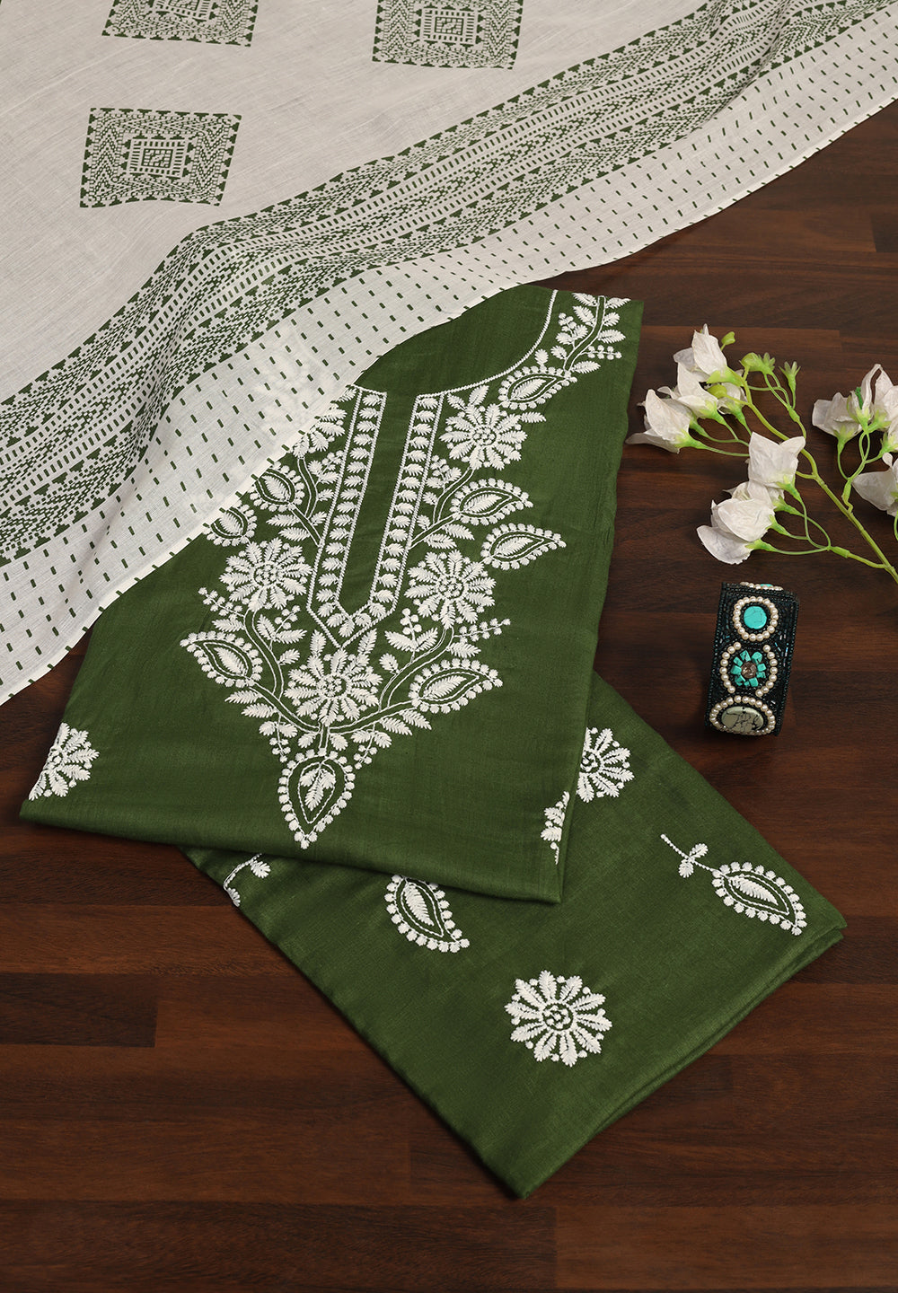 "Grace in Every Stitch: Cotton Unstitched Suit with Fine Resham Work"