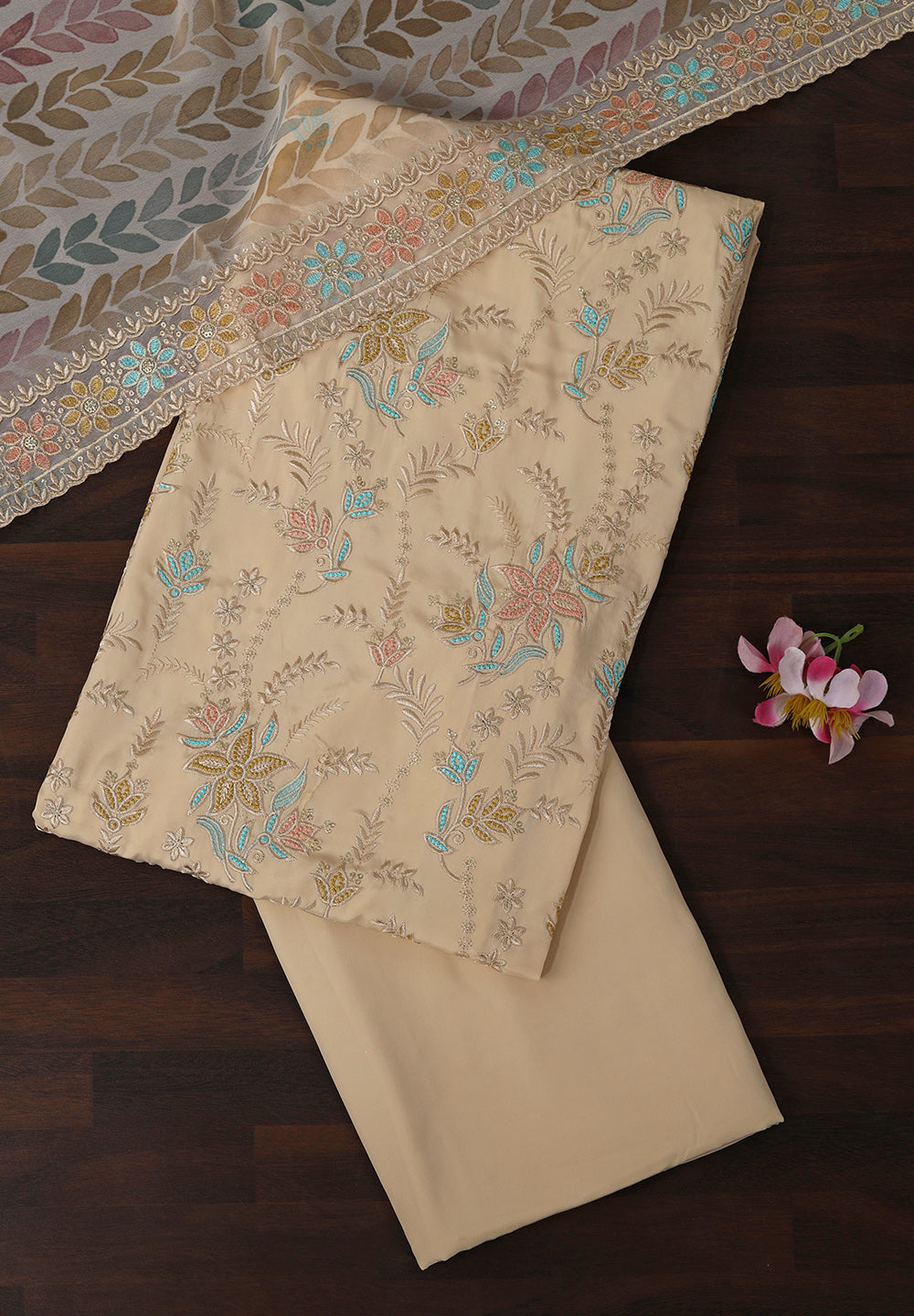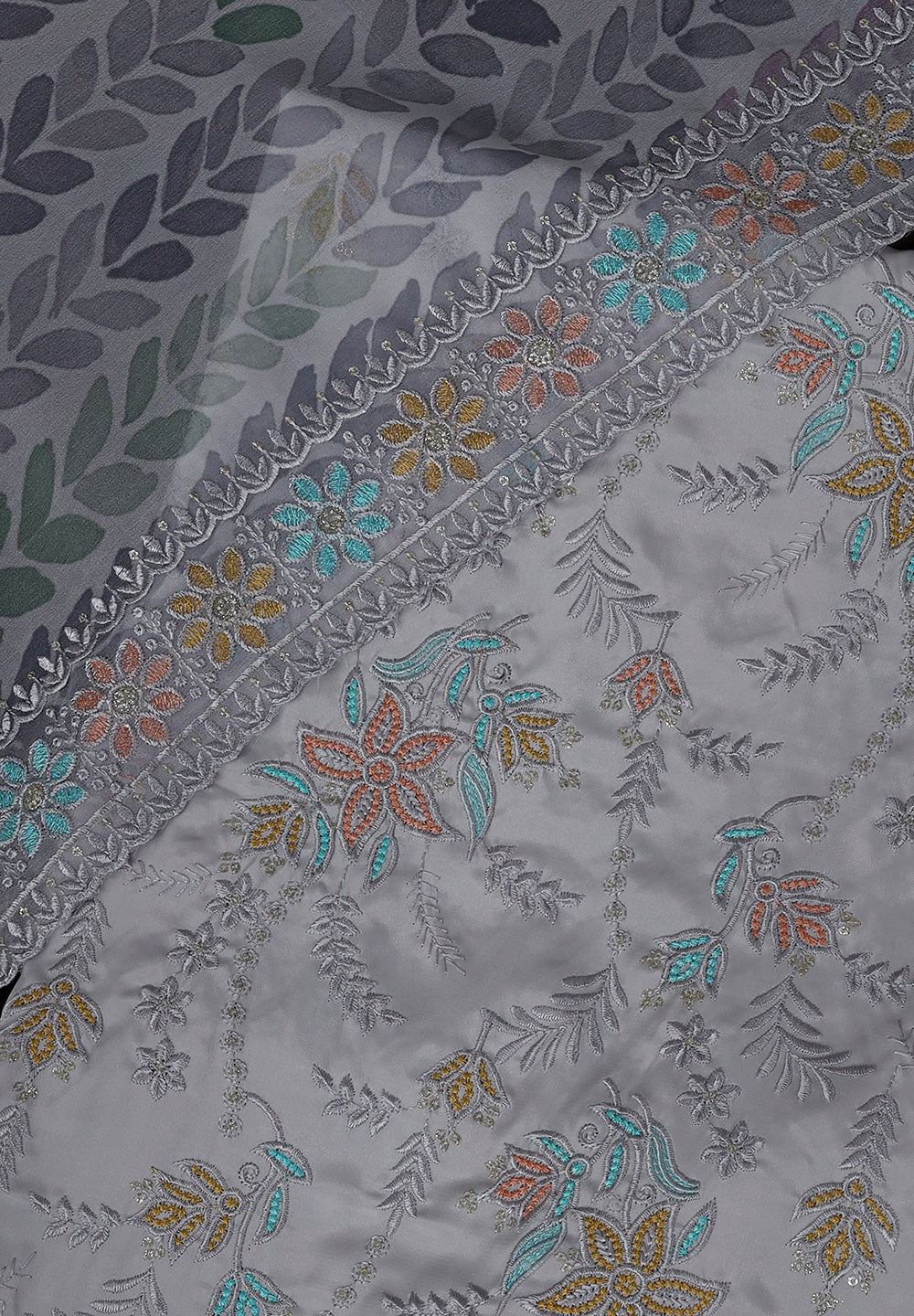 Grace in Every Stitch Crepe Unstitched Suit with Fine Resham Work
