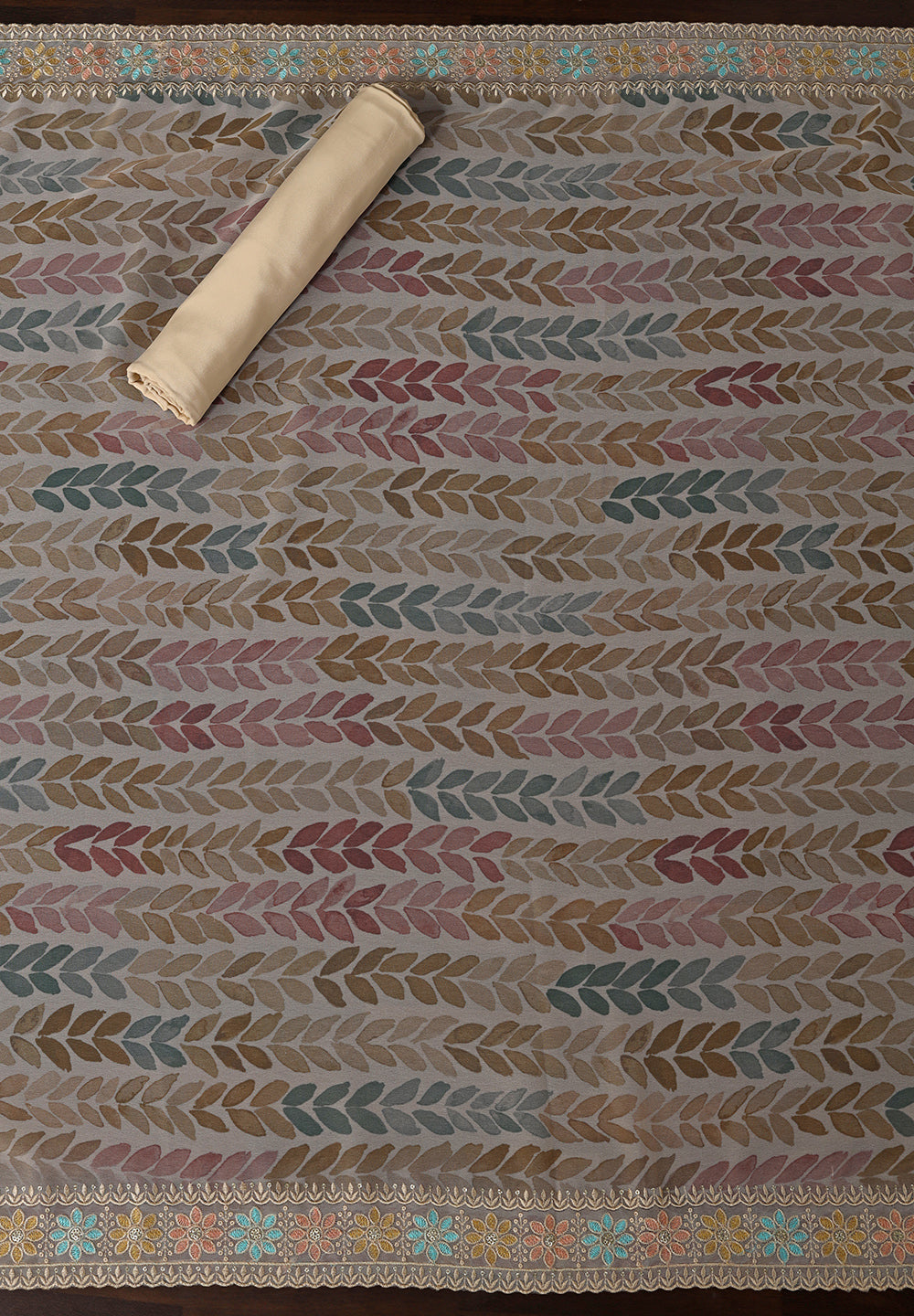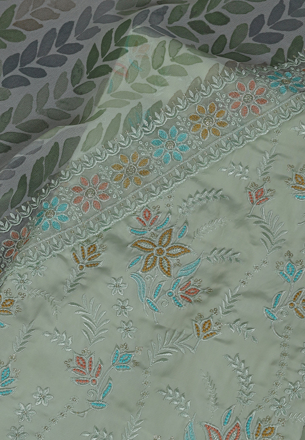 - Accompanied With An Unstitched Crepe Bottom And Printed Chiffon Dupatta