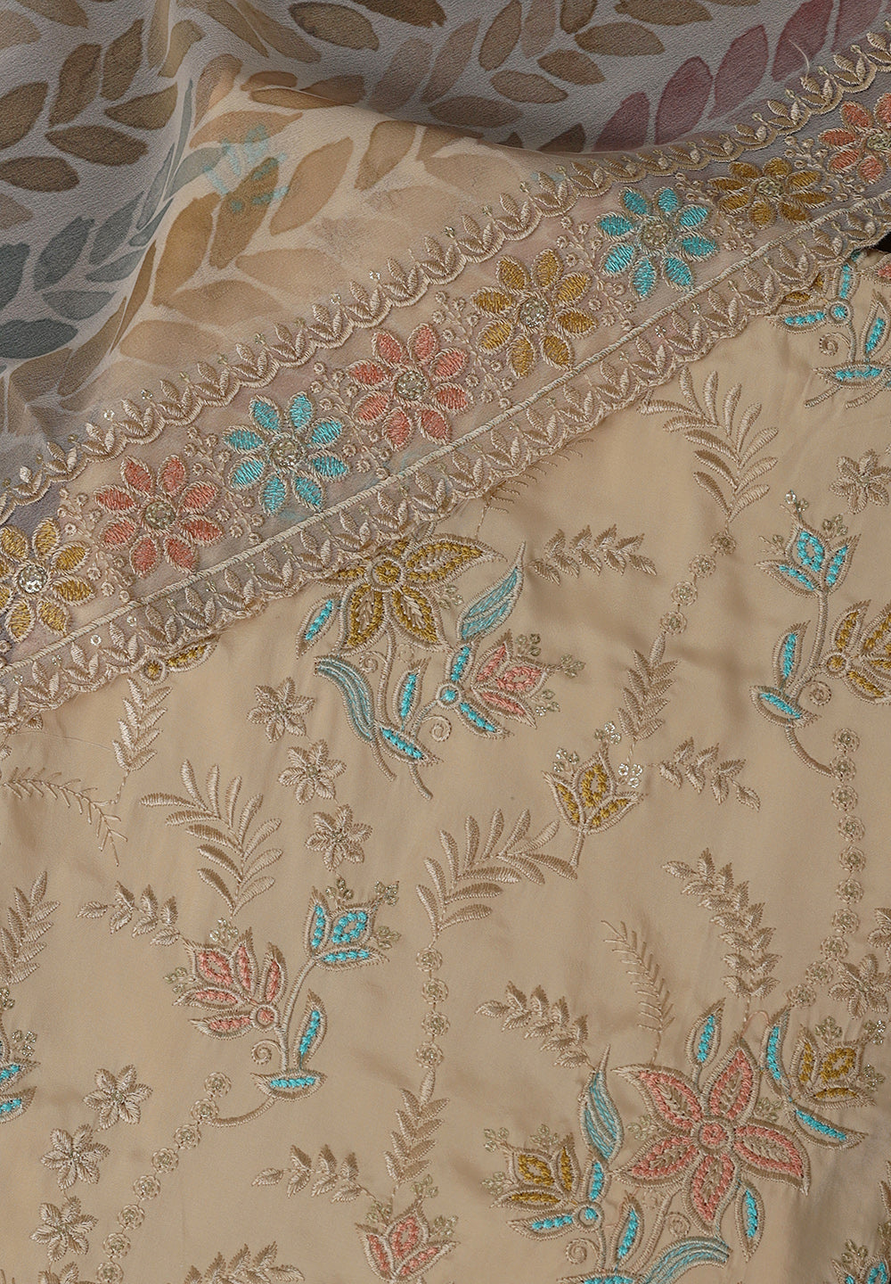 - Designed with Printed Thread Work Crepe Dupatta