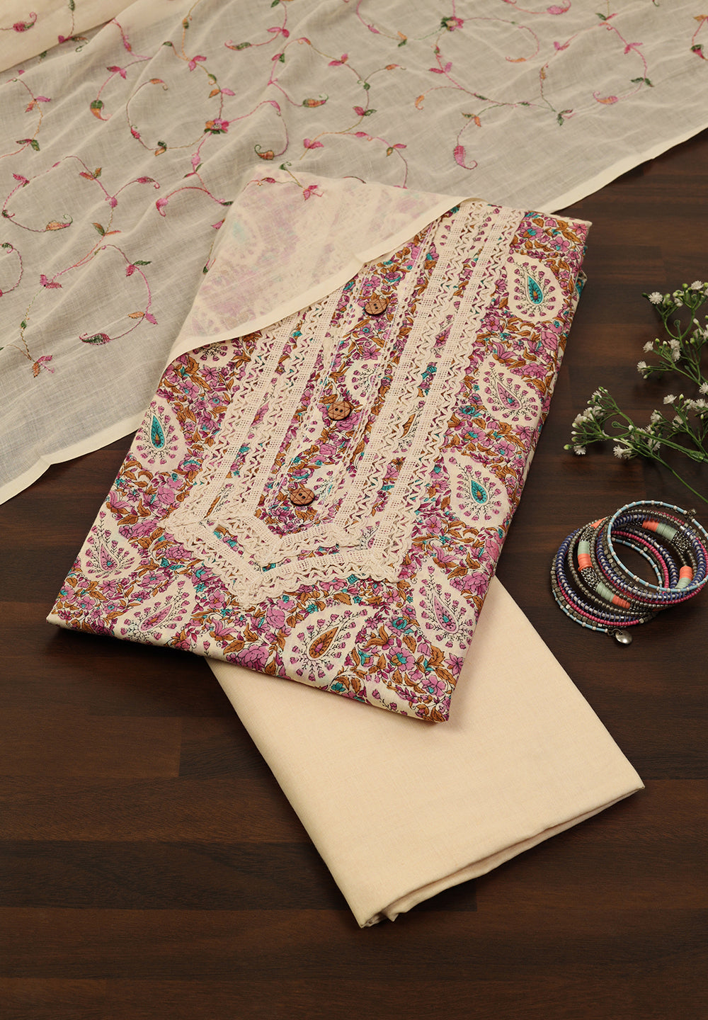 - Cotton Unstitched Fabric Suit