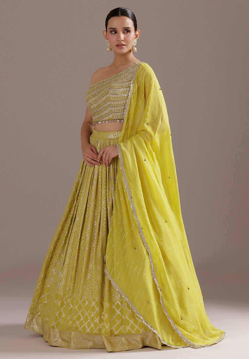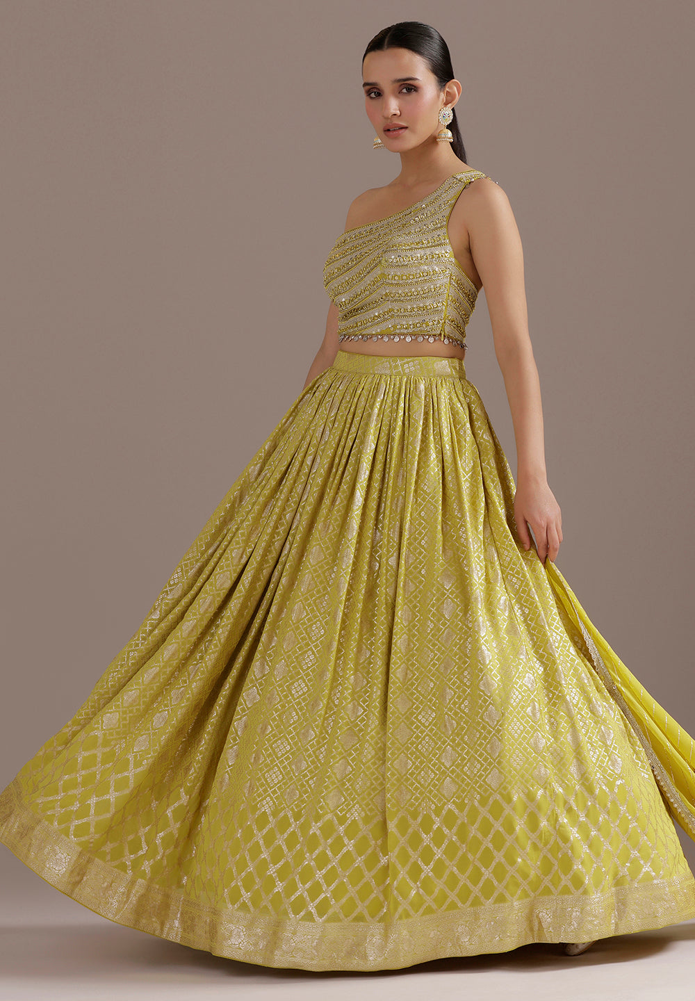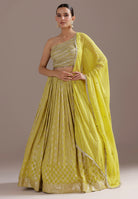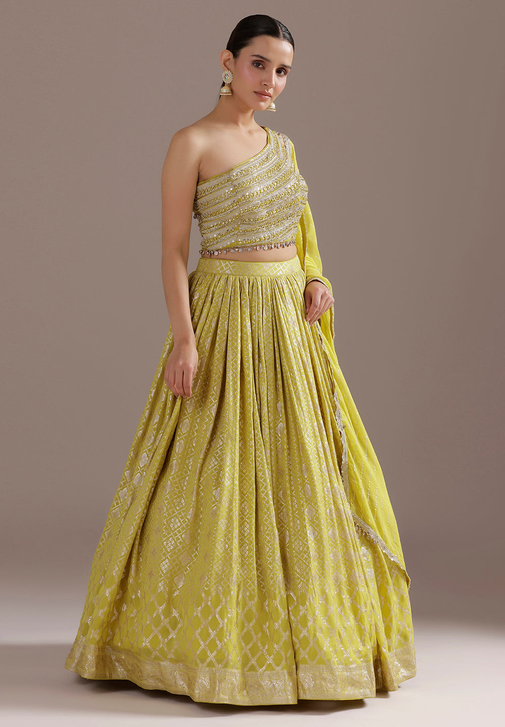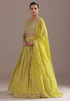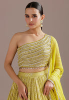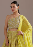 Lime Yellow Cutdana Work One-Shoulder Lehenga Set