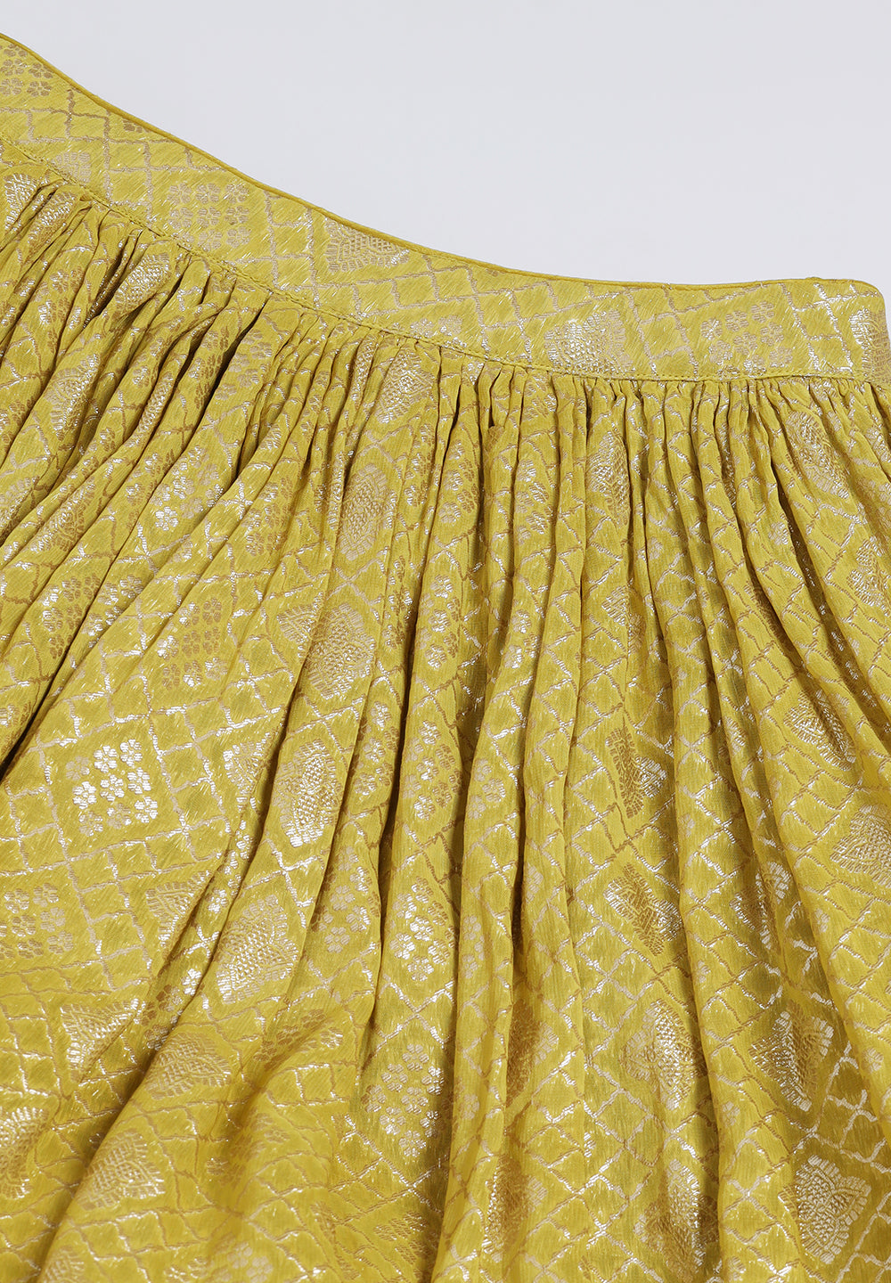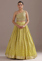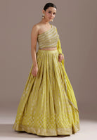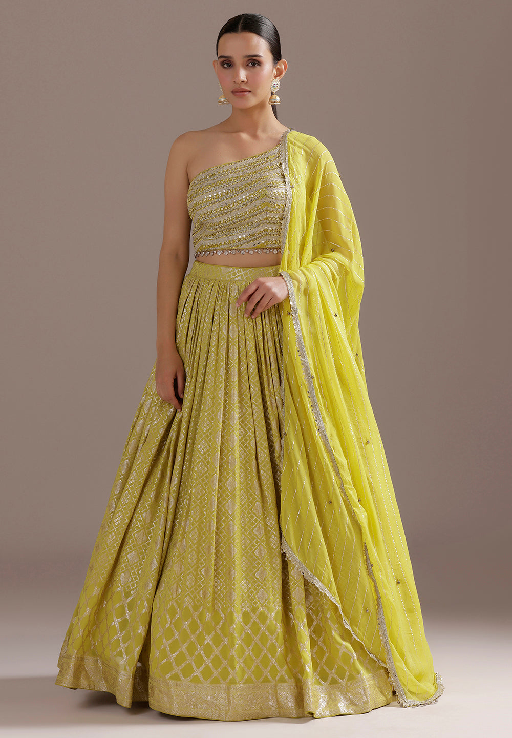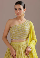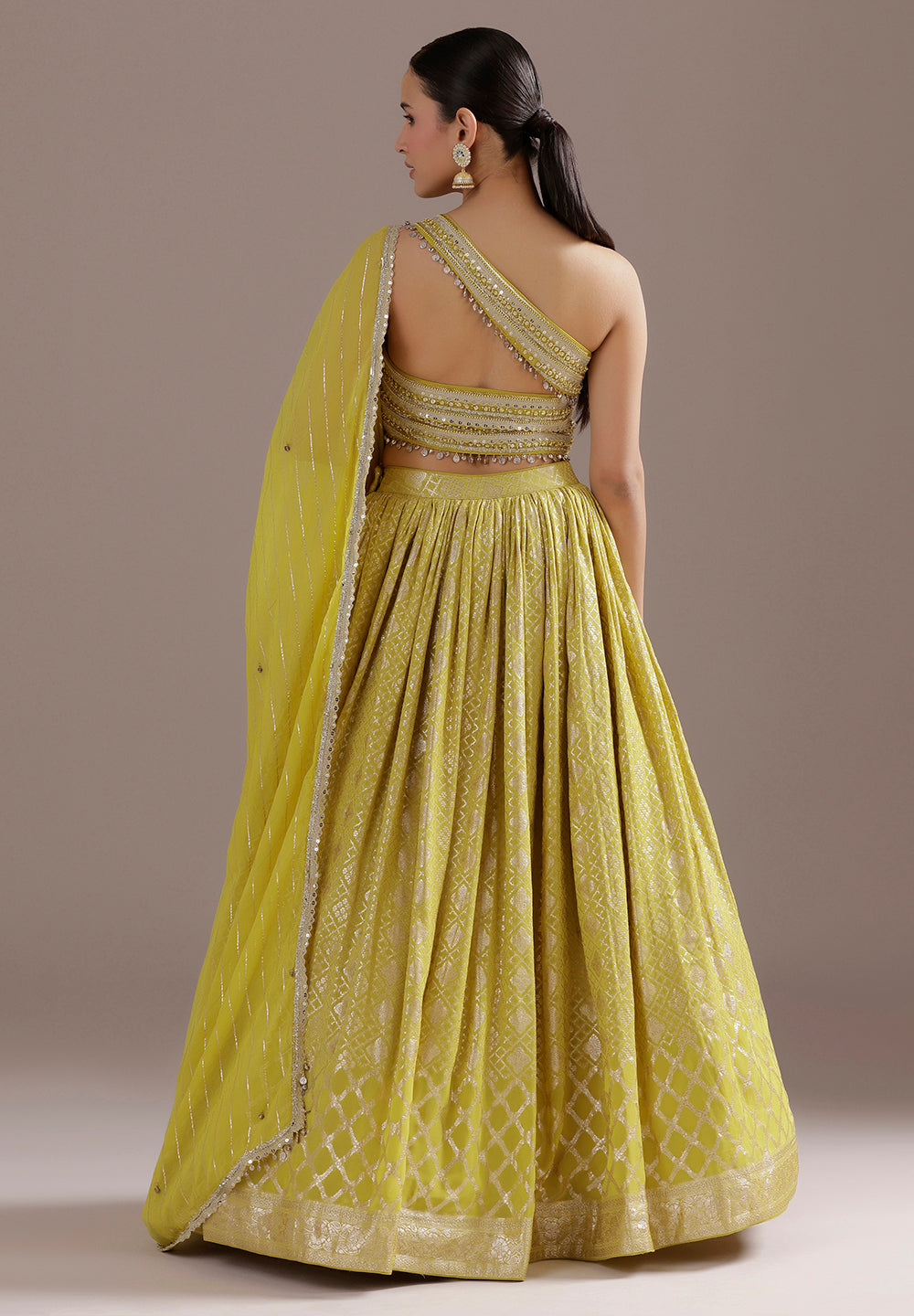 Lime Yellow Cutdana Work One-Shoulder Lehenga Set
