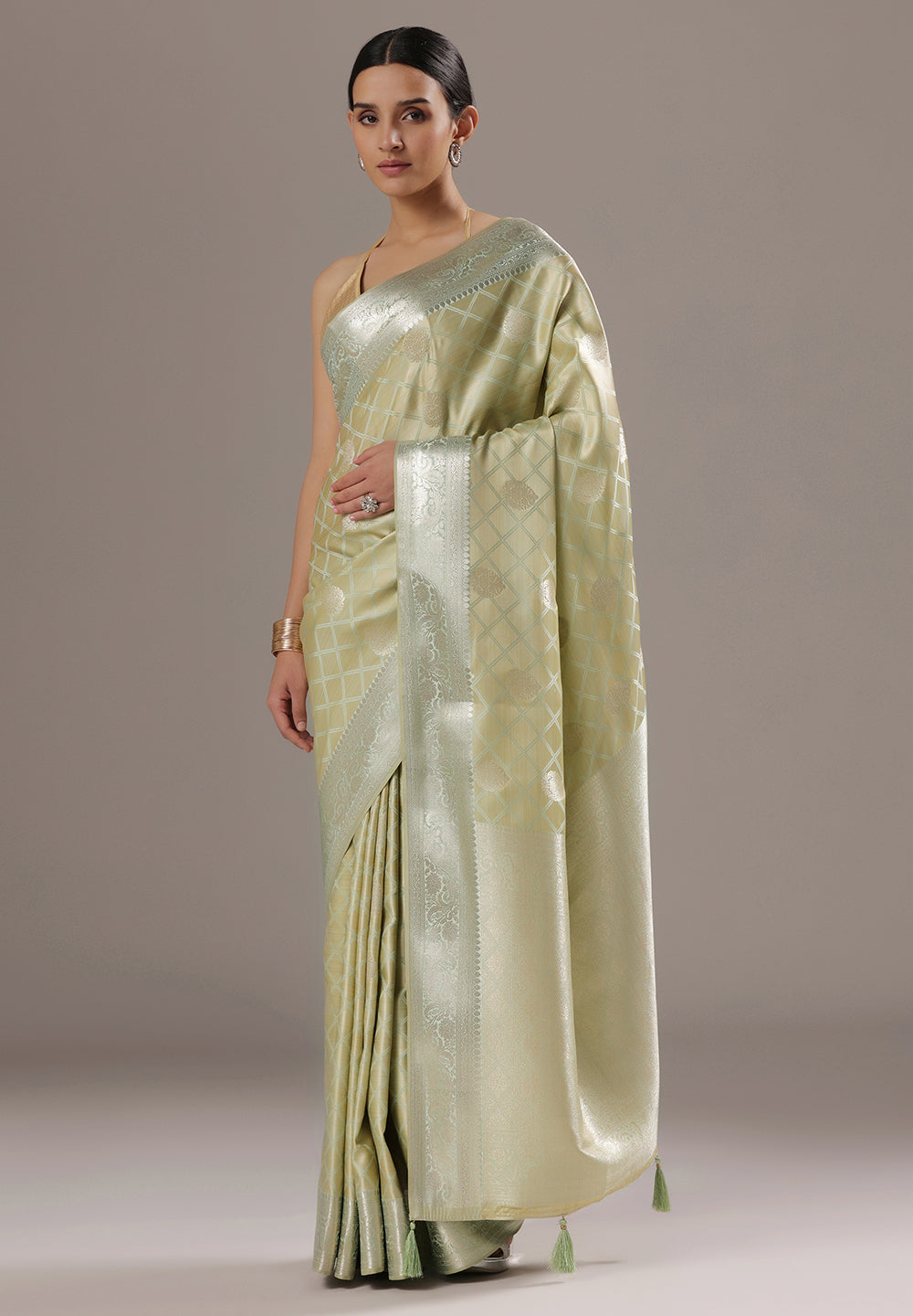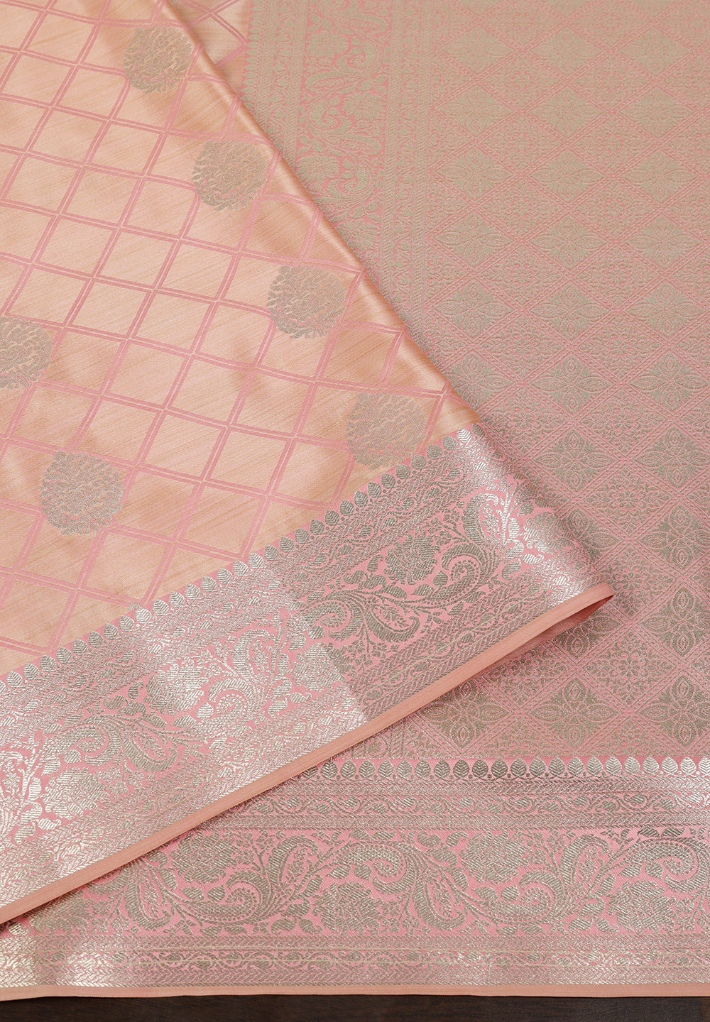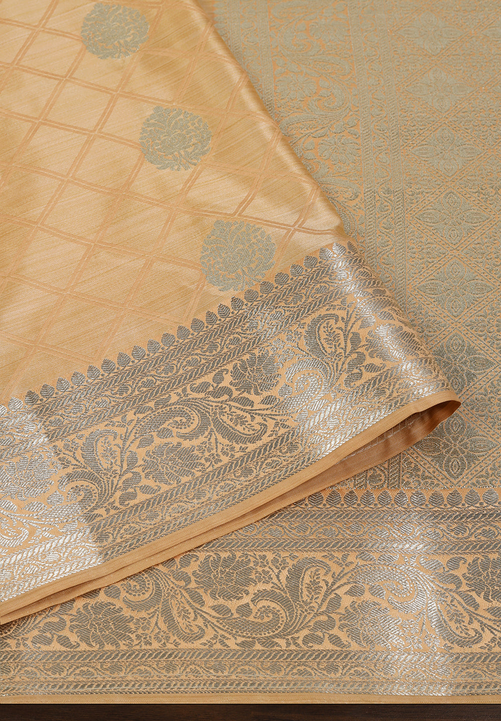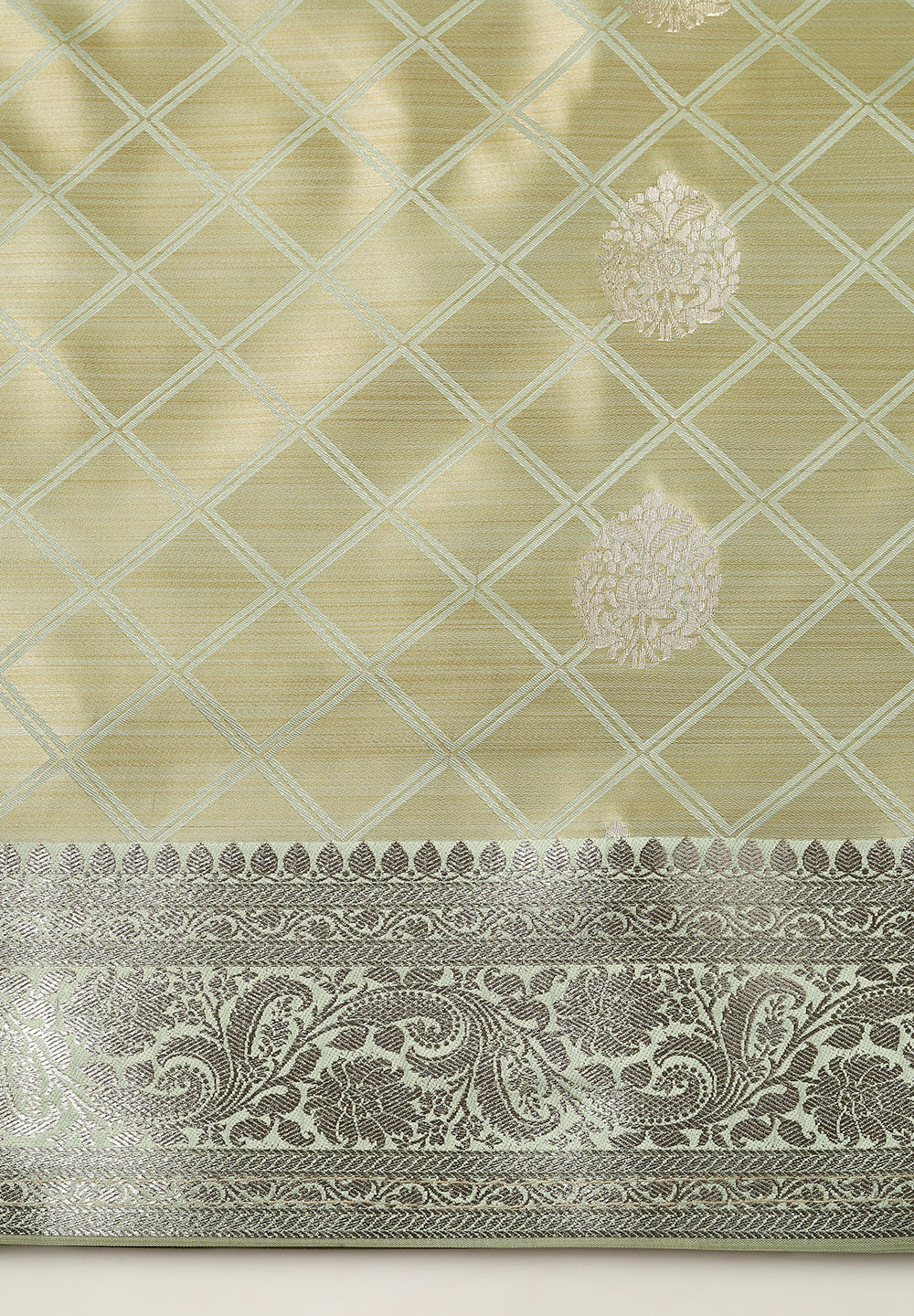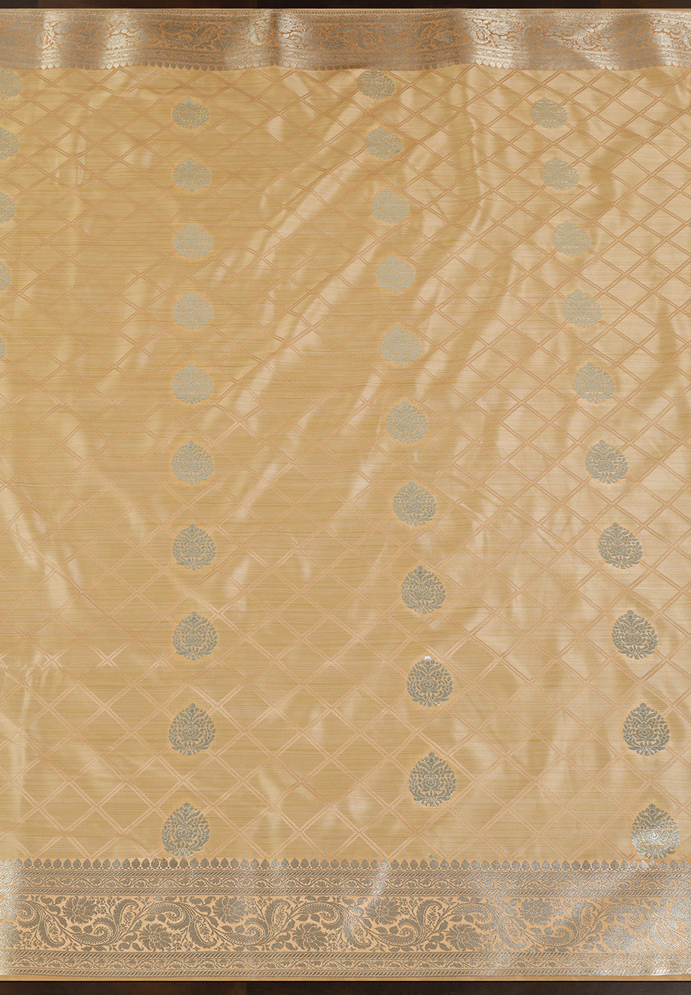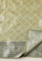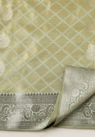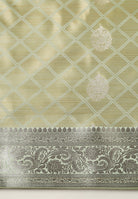 Silk Banarasi Saree With Zari Border & Square Motifs