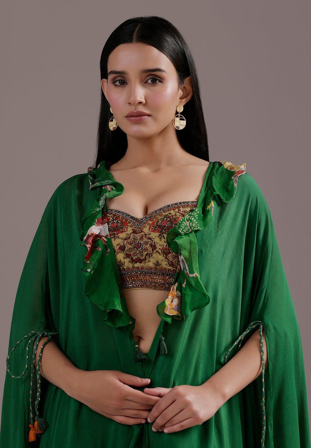 - Accompanied with an Readymade blouse and Shrug