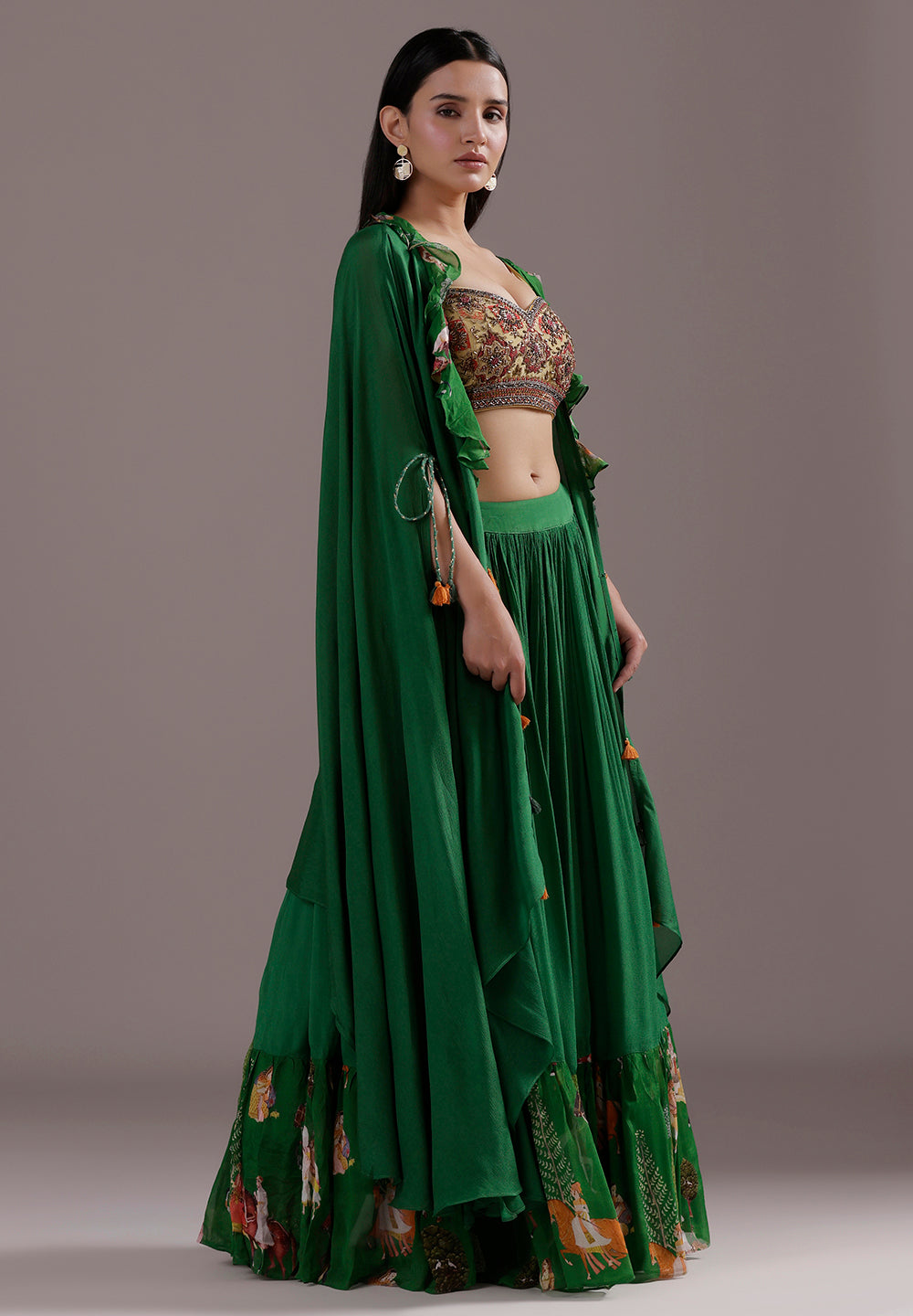 - The Lehenga is Embellished with Multi Print