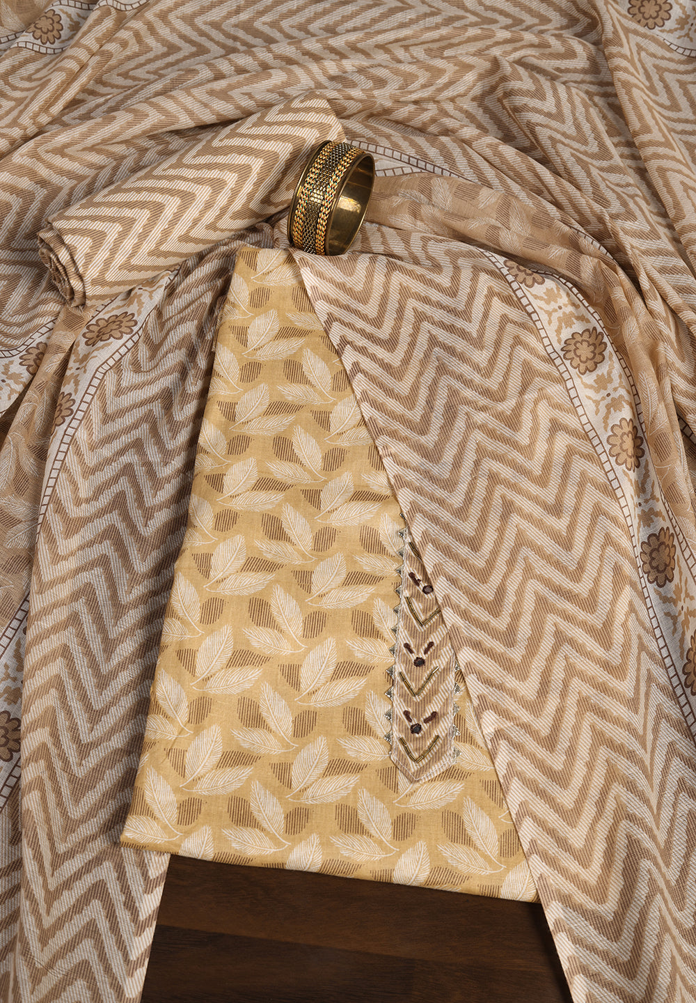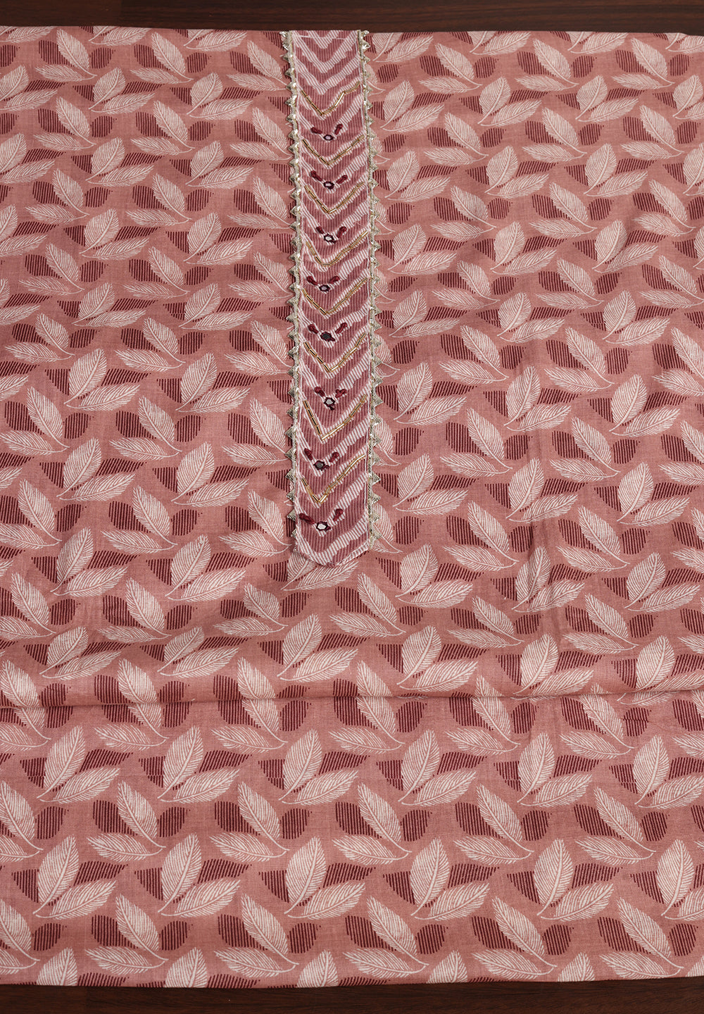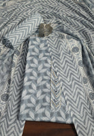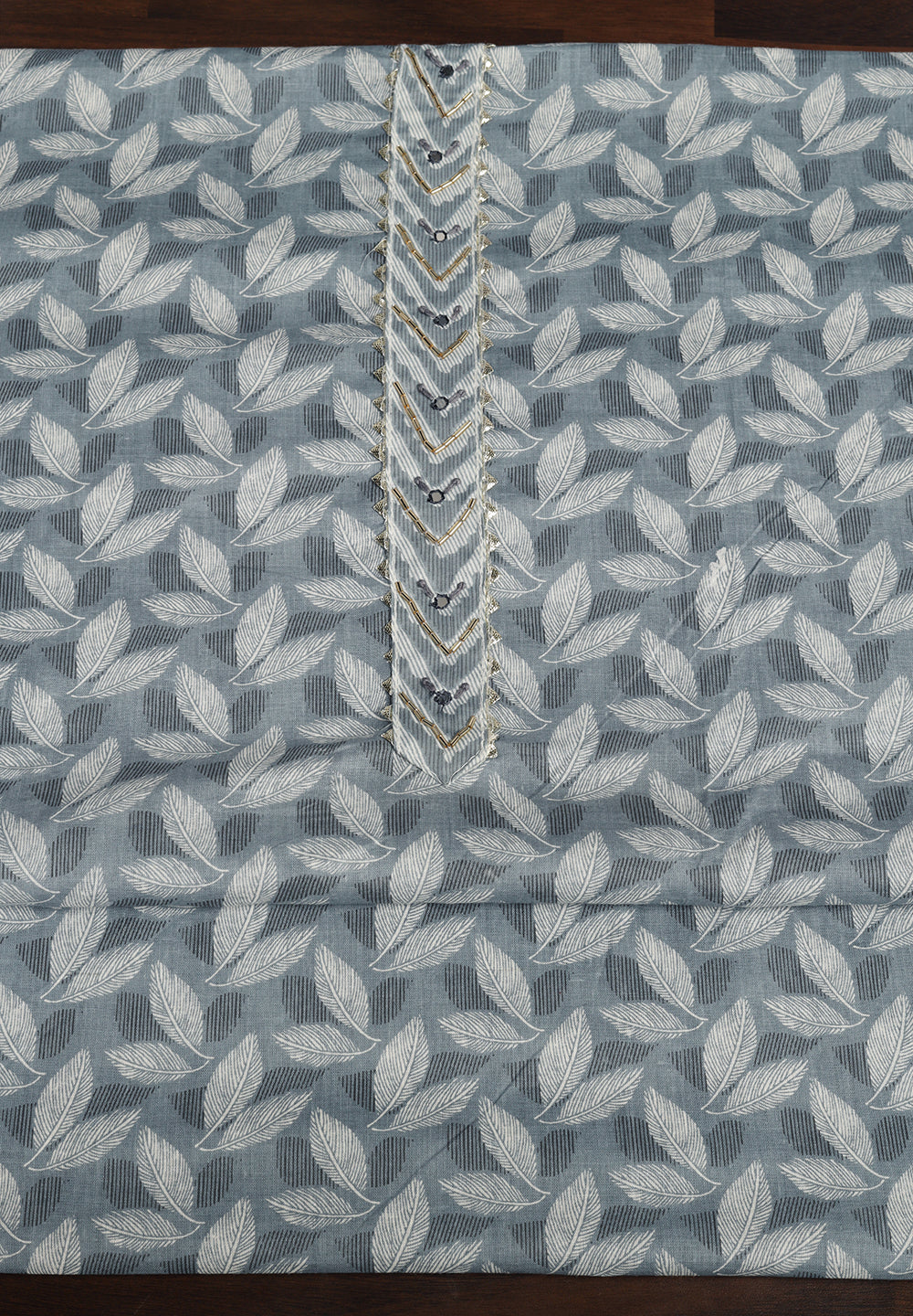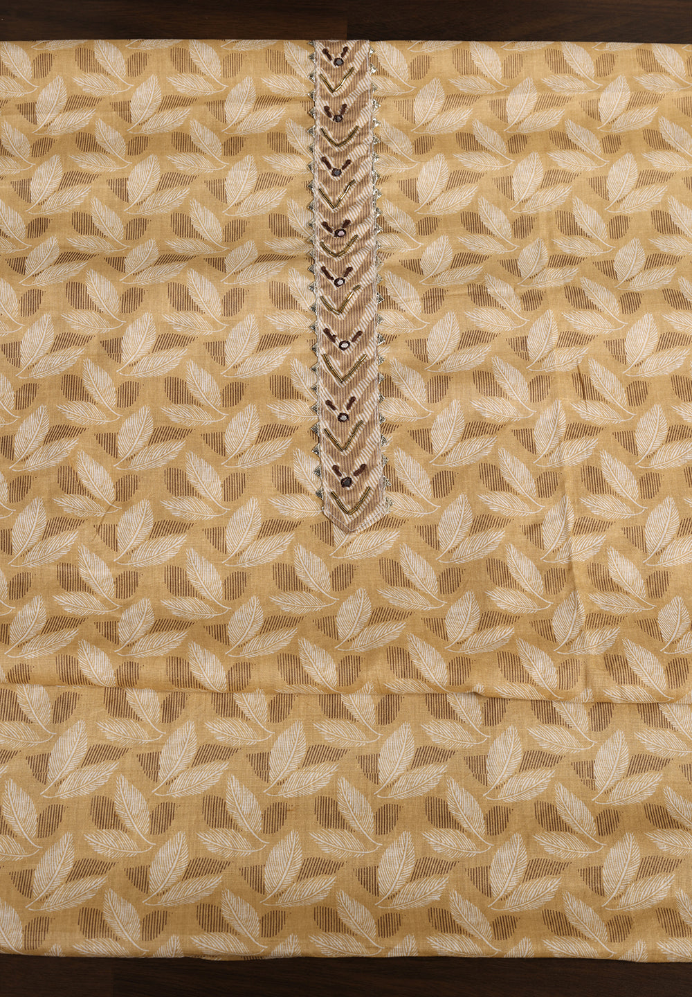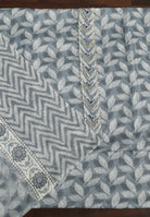 "Leaf Print Cotton Suit – Unstitched Grace with Neck Patch Detail"