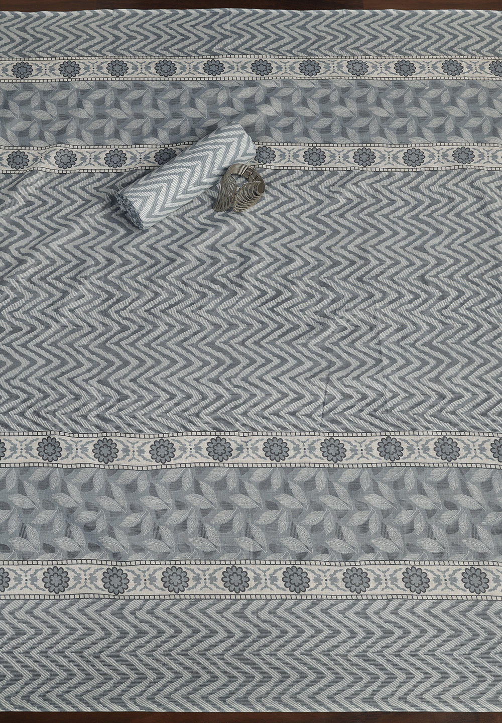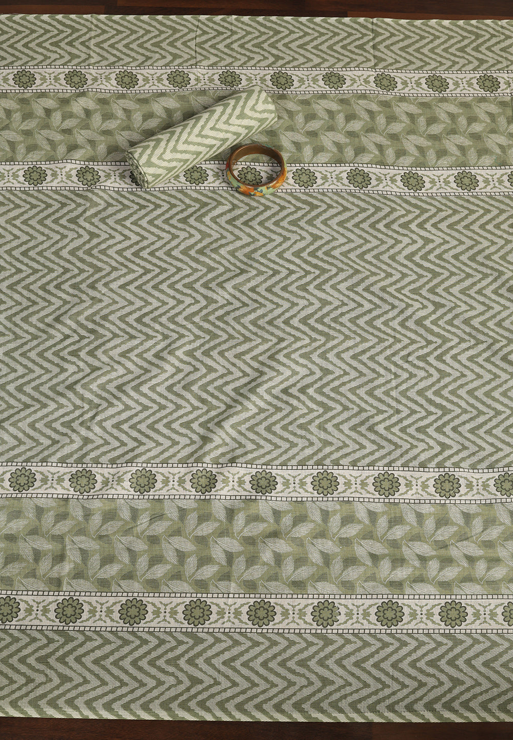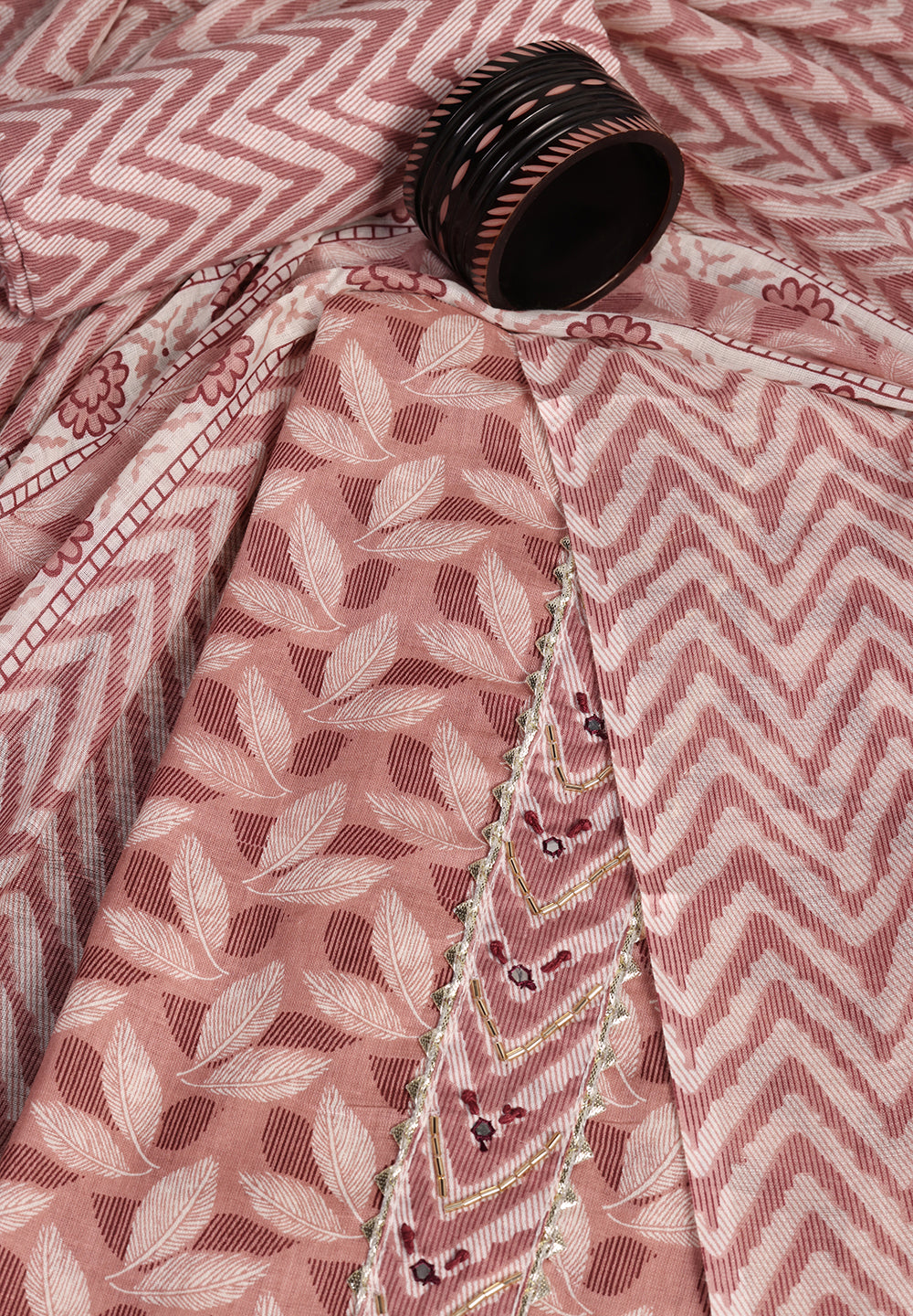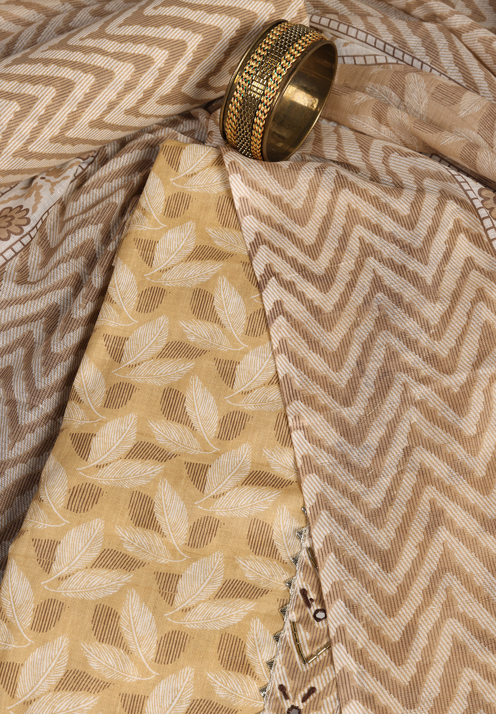 "Leaf Print Cotton Suit – Unstitched Grace with Neck Patch Detail"
