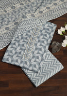Elevate your style with our Cotton Suit Set. The unstitched fabric is adorned with exquisite Neck Patch and Leaf Print, Paired with an unstitched Printed Cotton bottom and a Printed Cotton Dupatta, the ensemble is designed to bring together the beauty of craftsmanship and elegance. Available in Green, Grey, Peach and Pink Color.