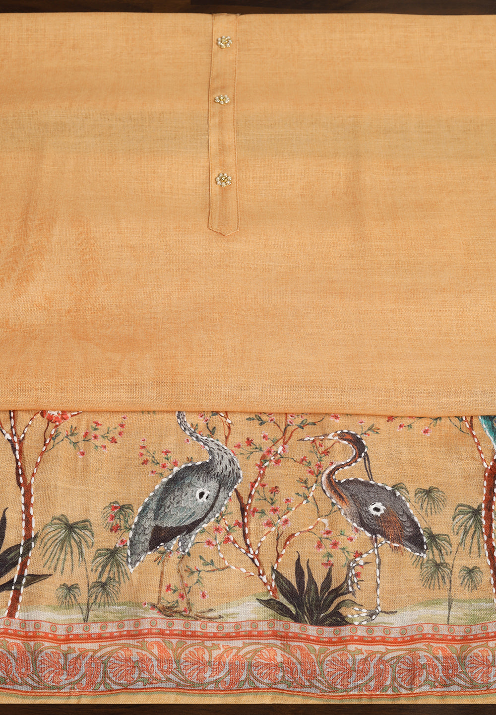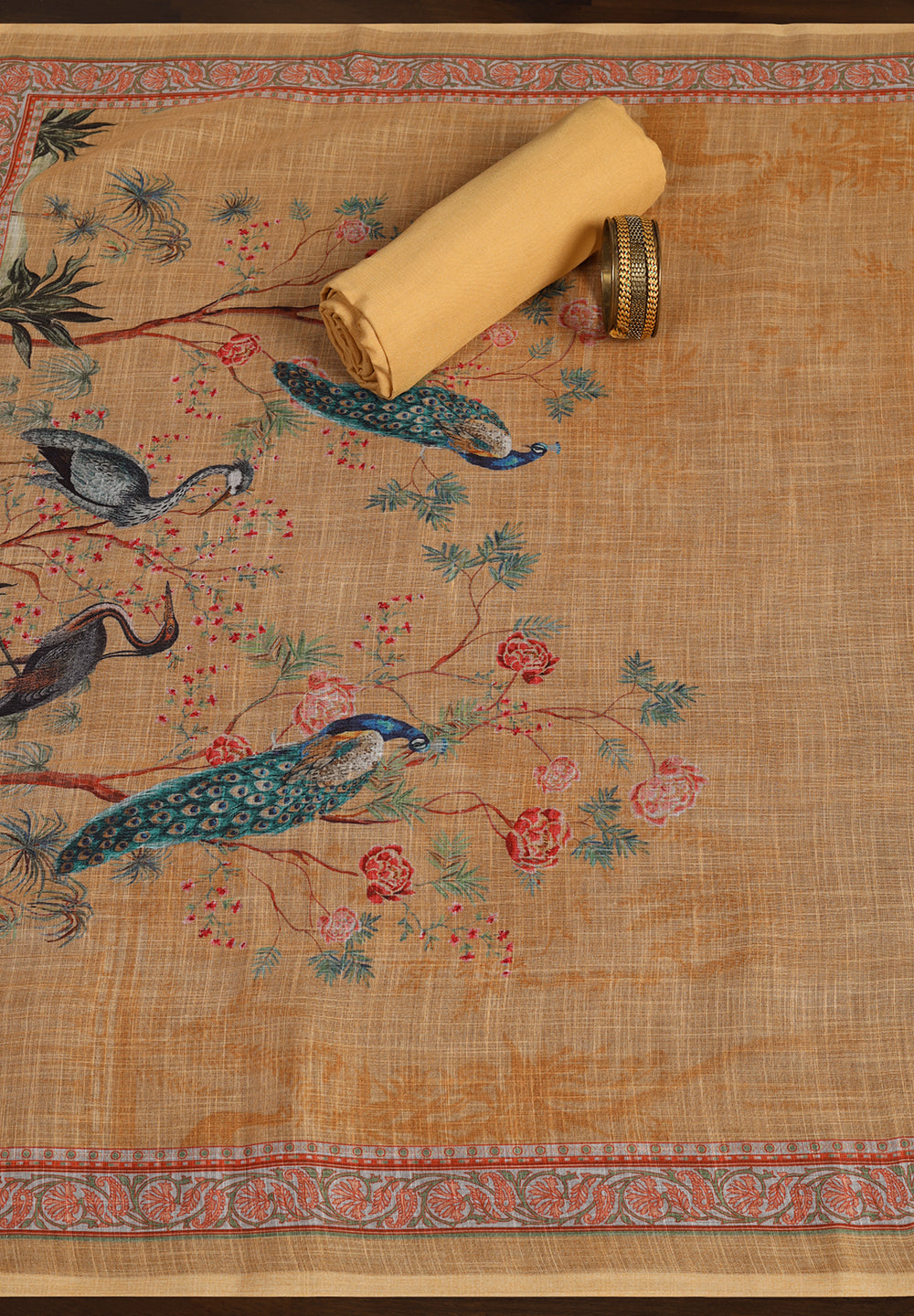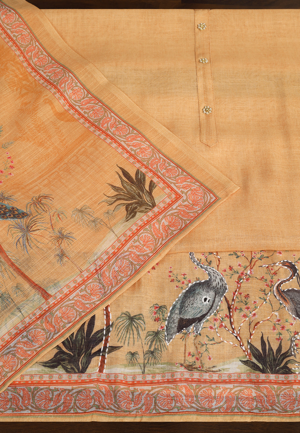 Elevate your style with our Linen Cotton Suit Set. The unstitched fabric is adorned with exquisite Printed Thread work. Paired with an unstitched Cotton bottom and a Linen Cotton Dupatta, the ensemble is designed to bring together the beauty of craftsmanship and elegance.