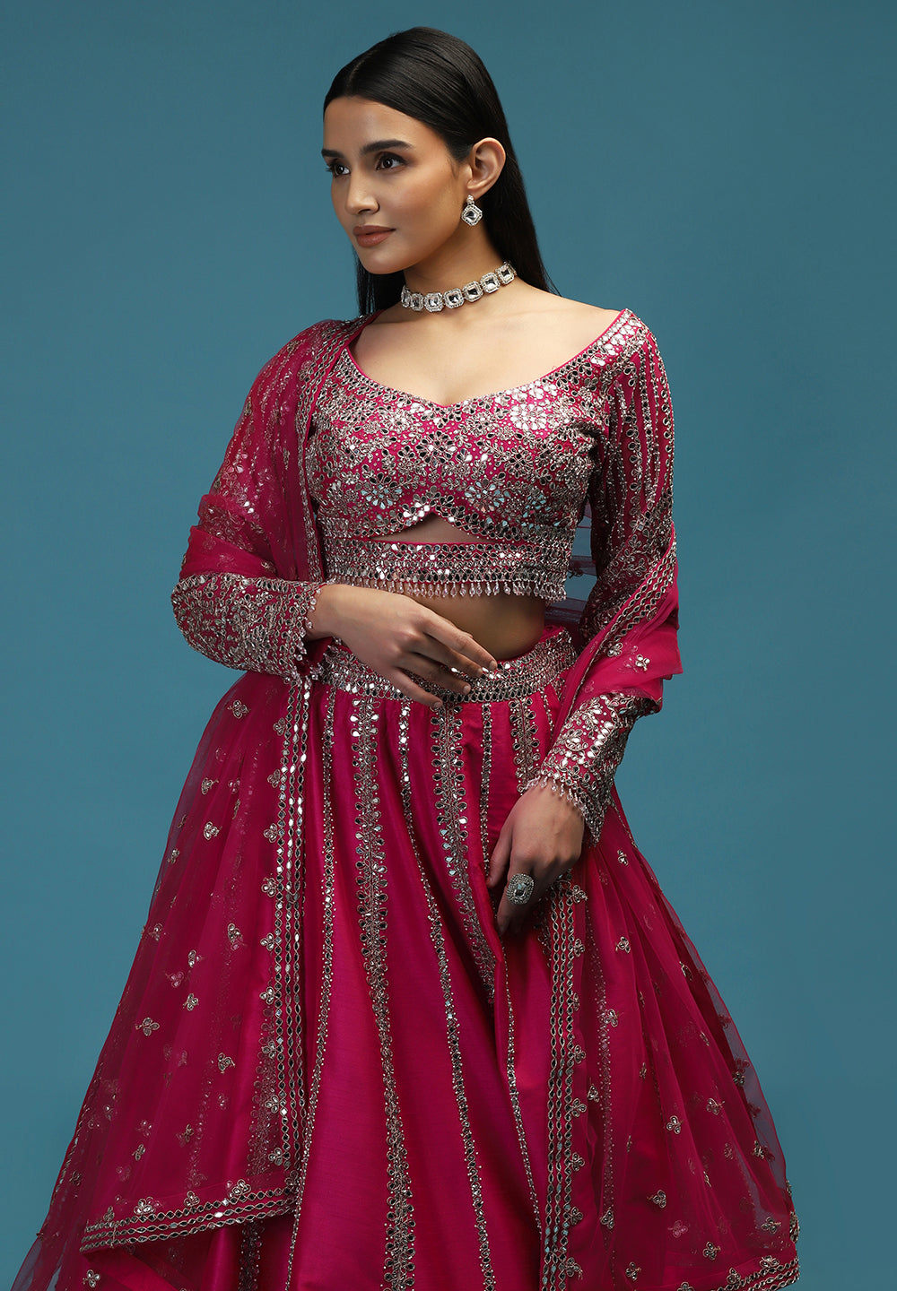 - The Lehenga is embellished with Mirror, Stone And Dori Work