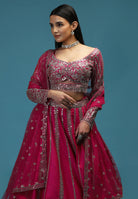 Immerse yourself in the enchanting allure of "Ethereal Blossom" Lehenga Set by Bombay Selections. Crafted with precision from Net, this ready-to-wear ensemble exudes grace. The zip closure ensures easy elegance, while the included Dupatta adds a finishing touch to your timeless look.