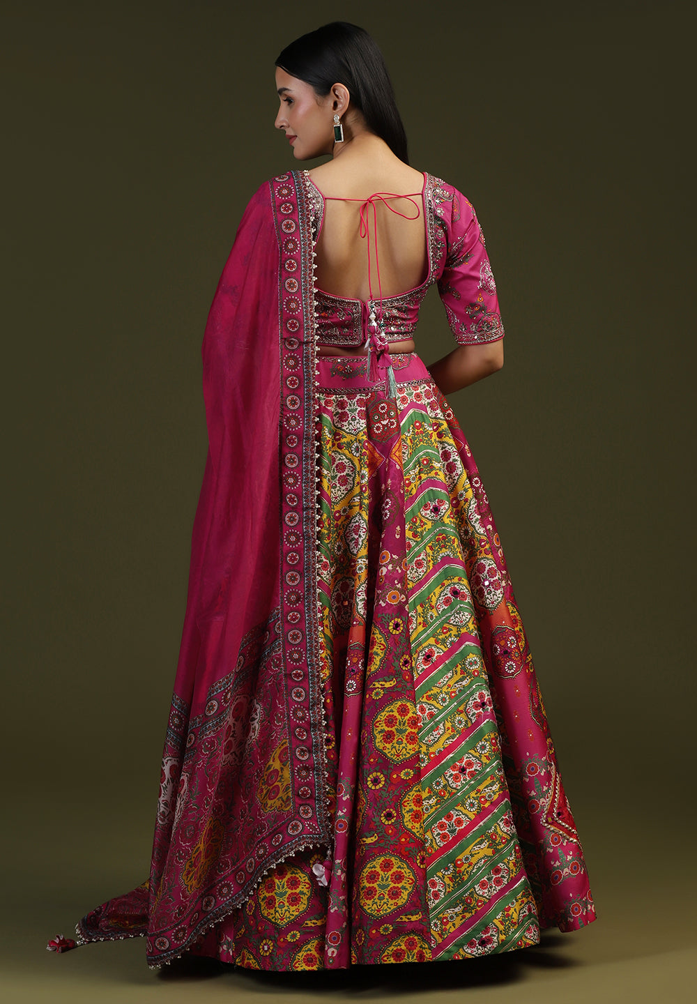 - The Lehenga is Embellished with Multi Printed Dabka Work