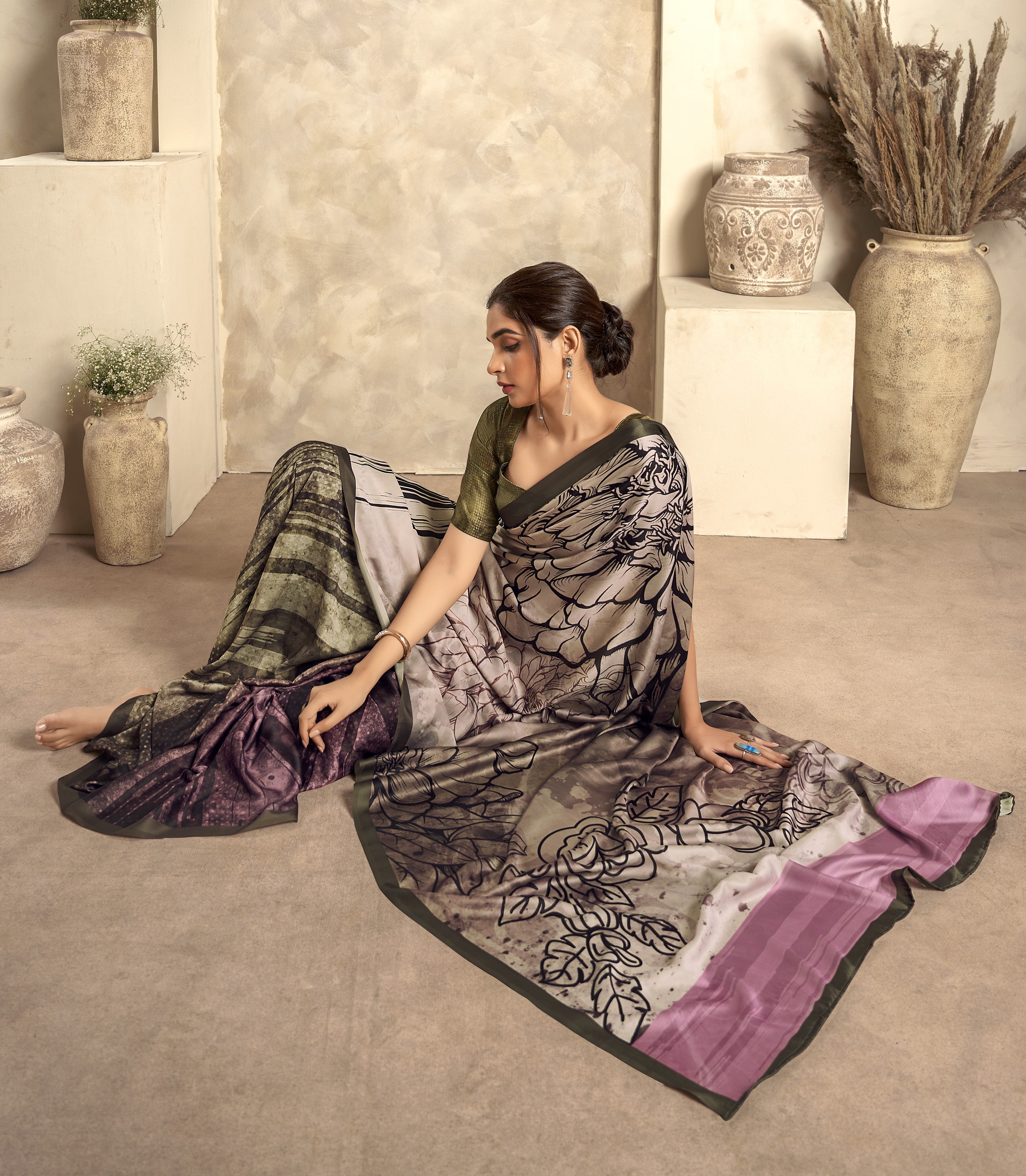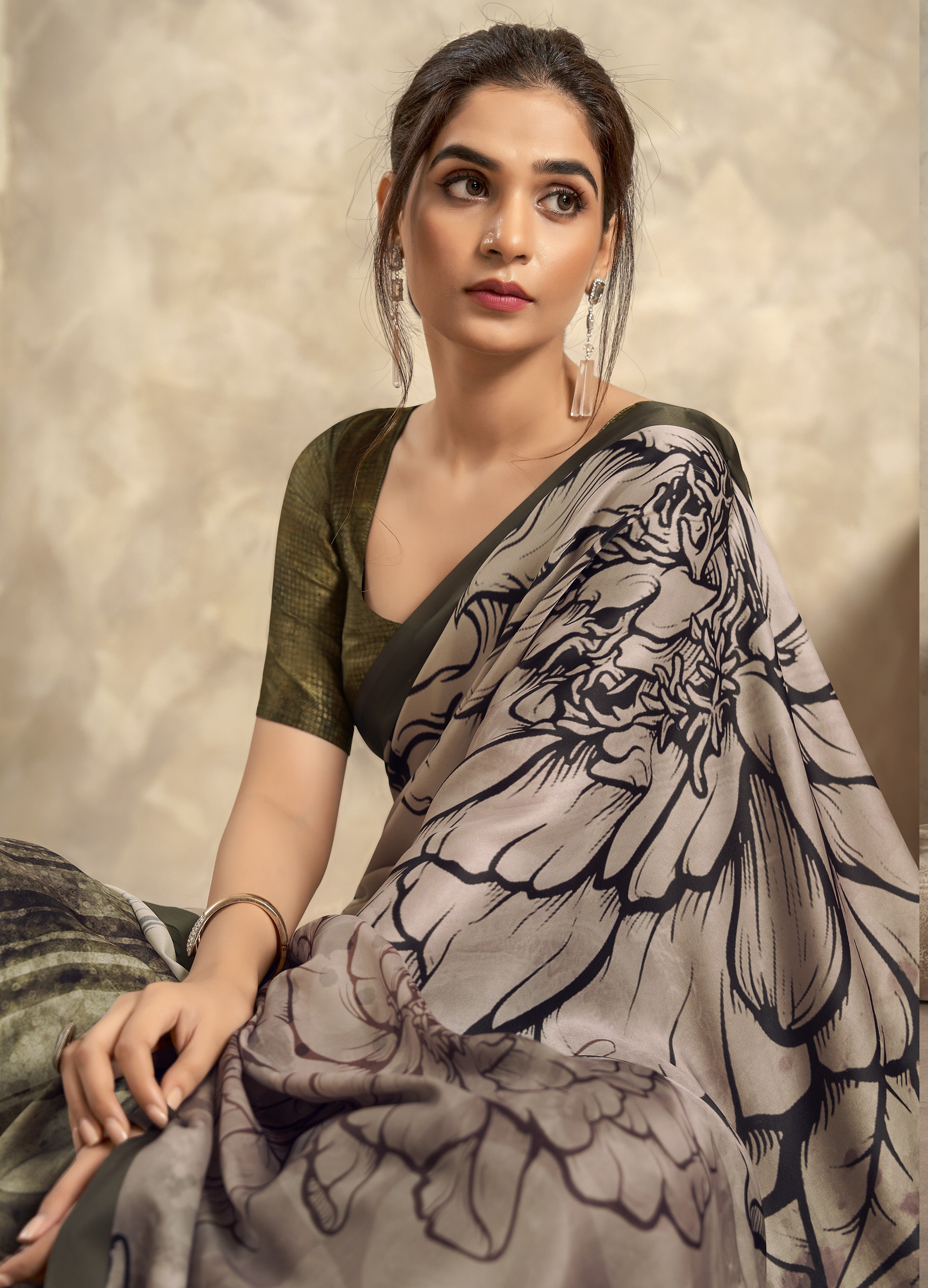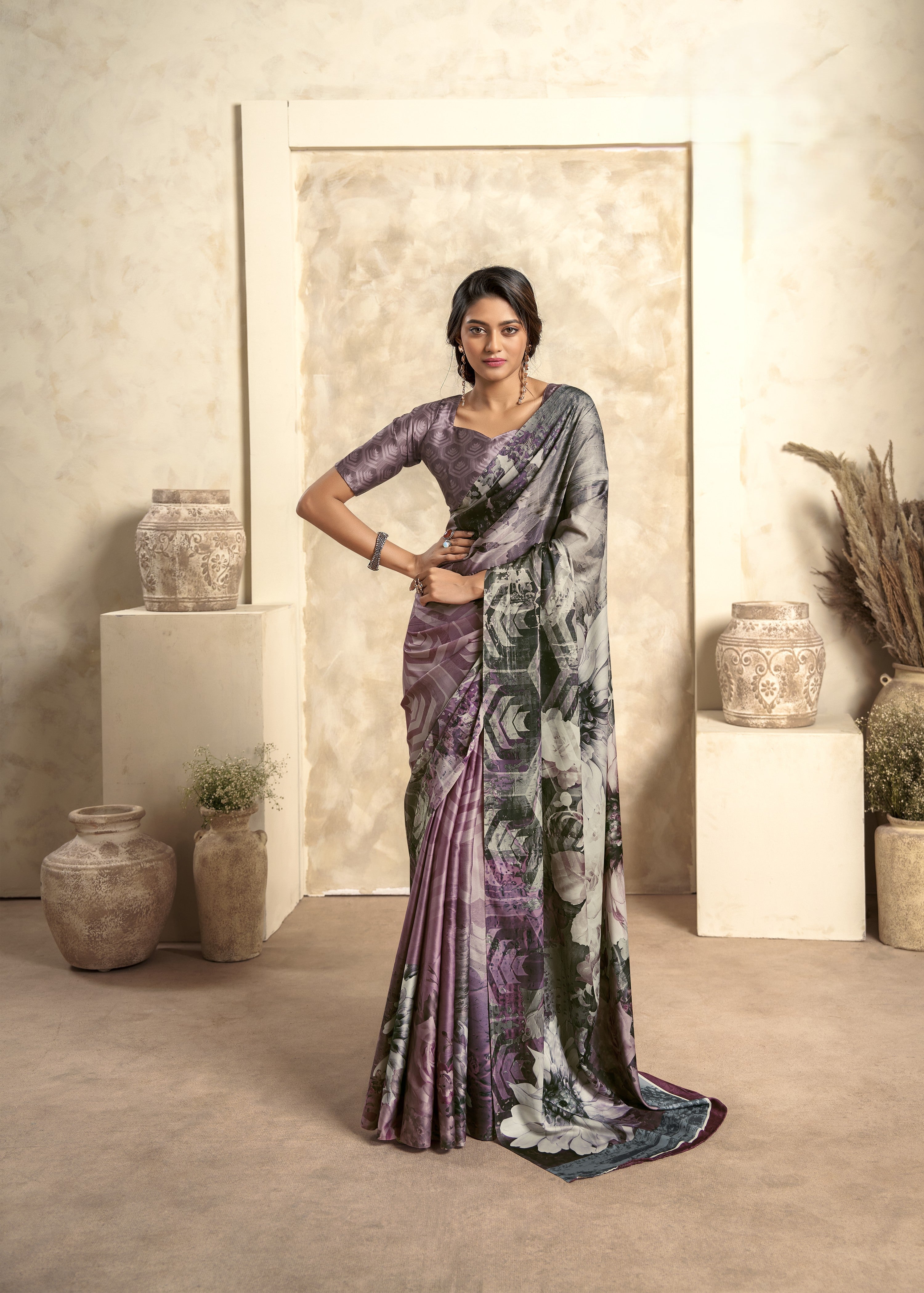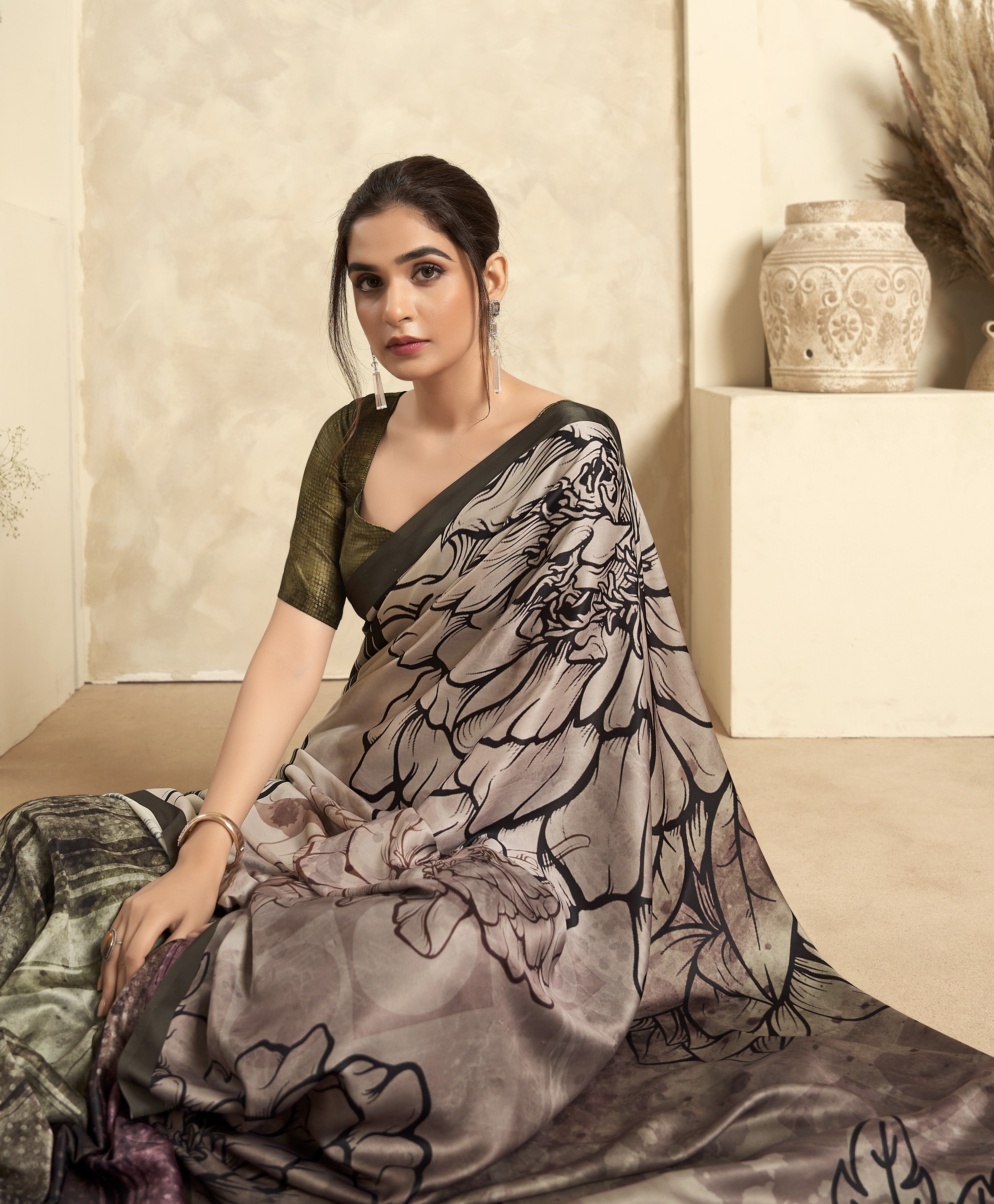 - Satin Crepe Printed Saree