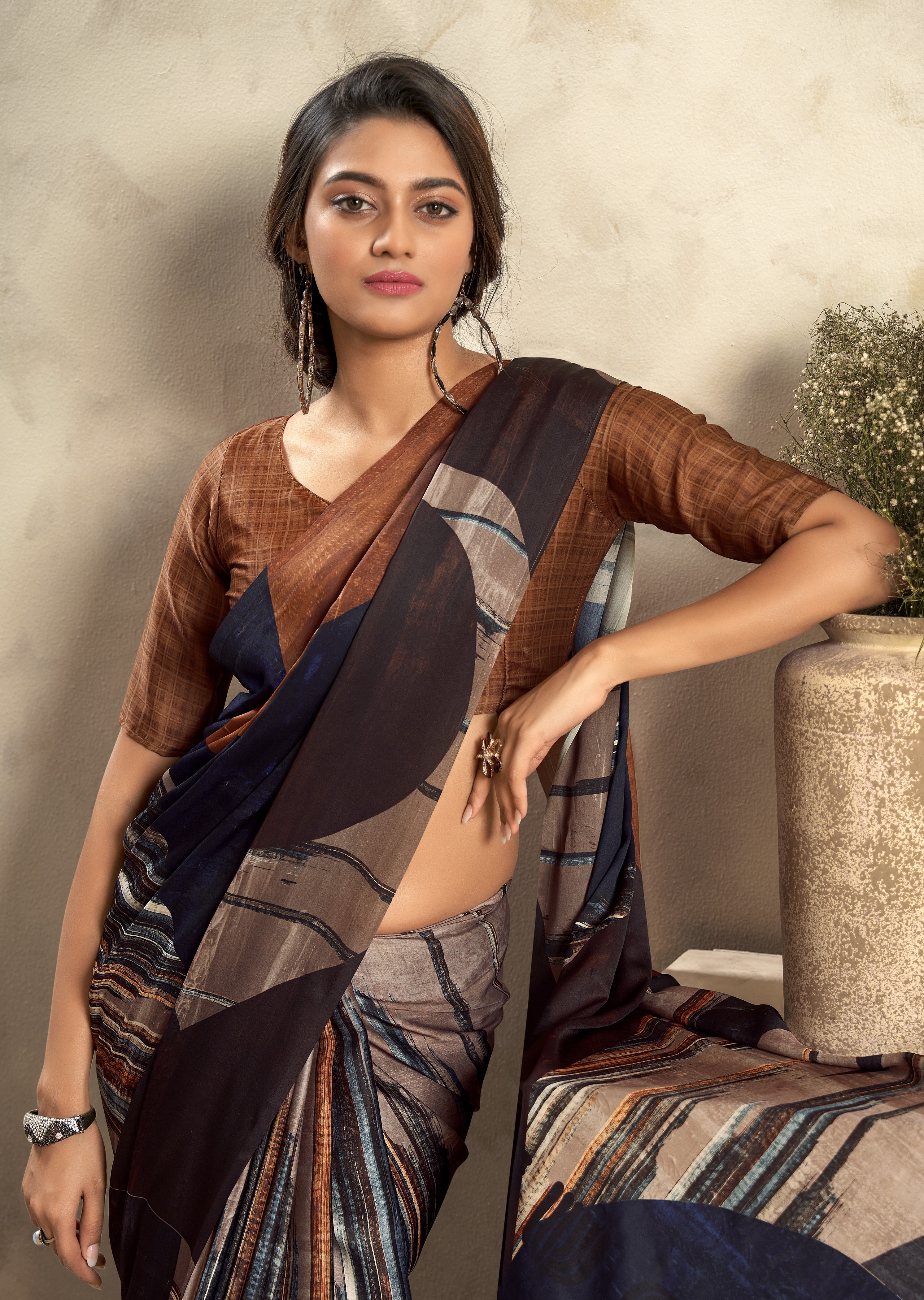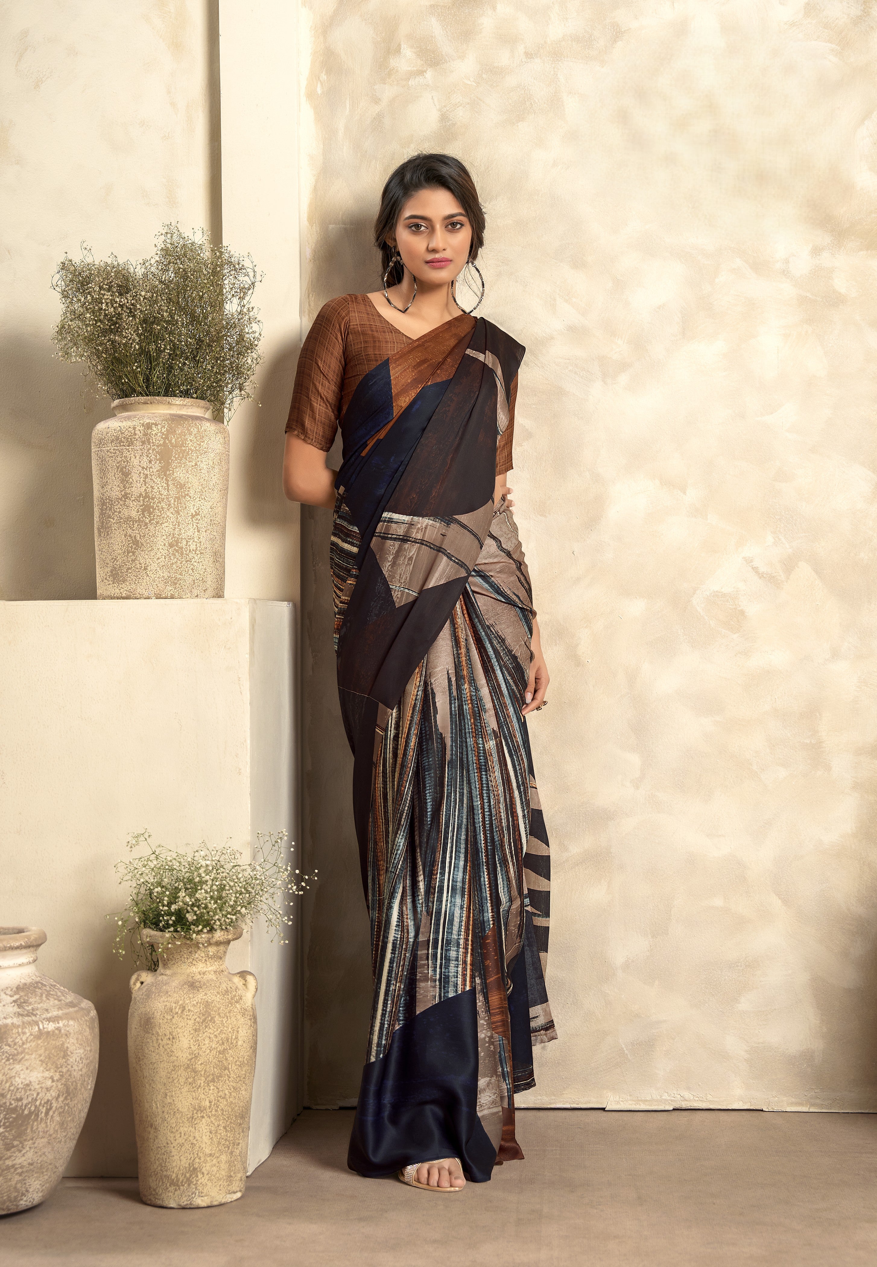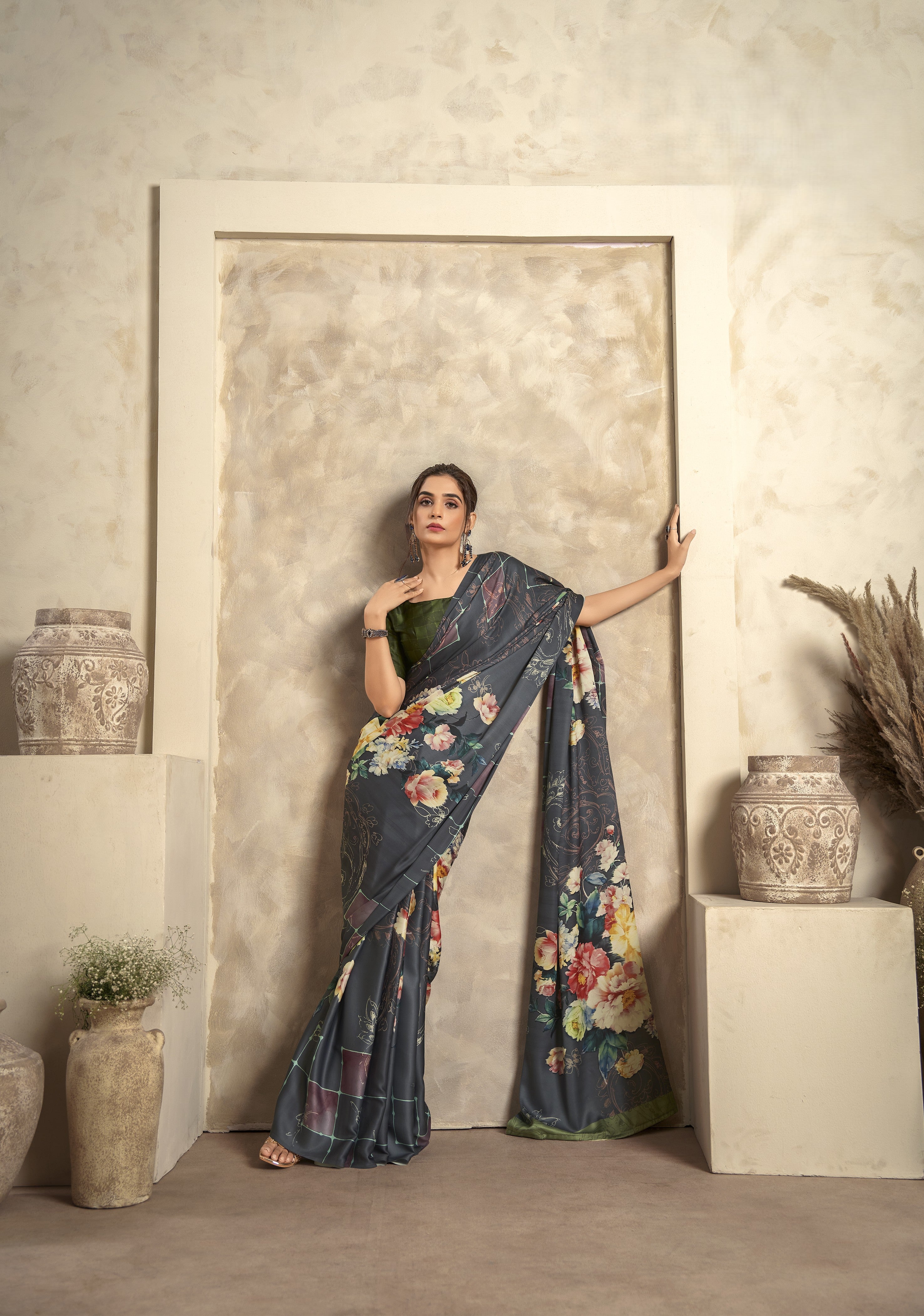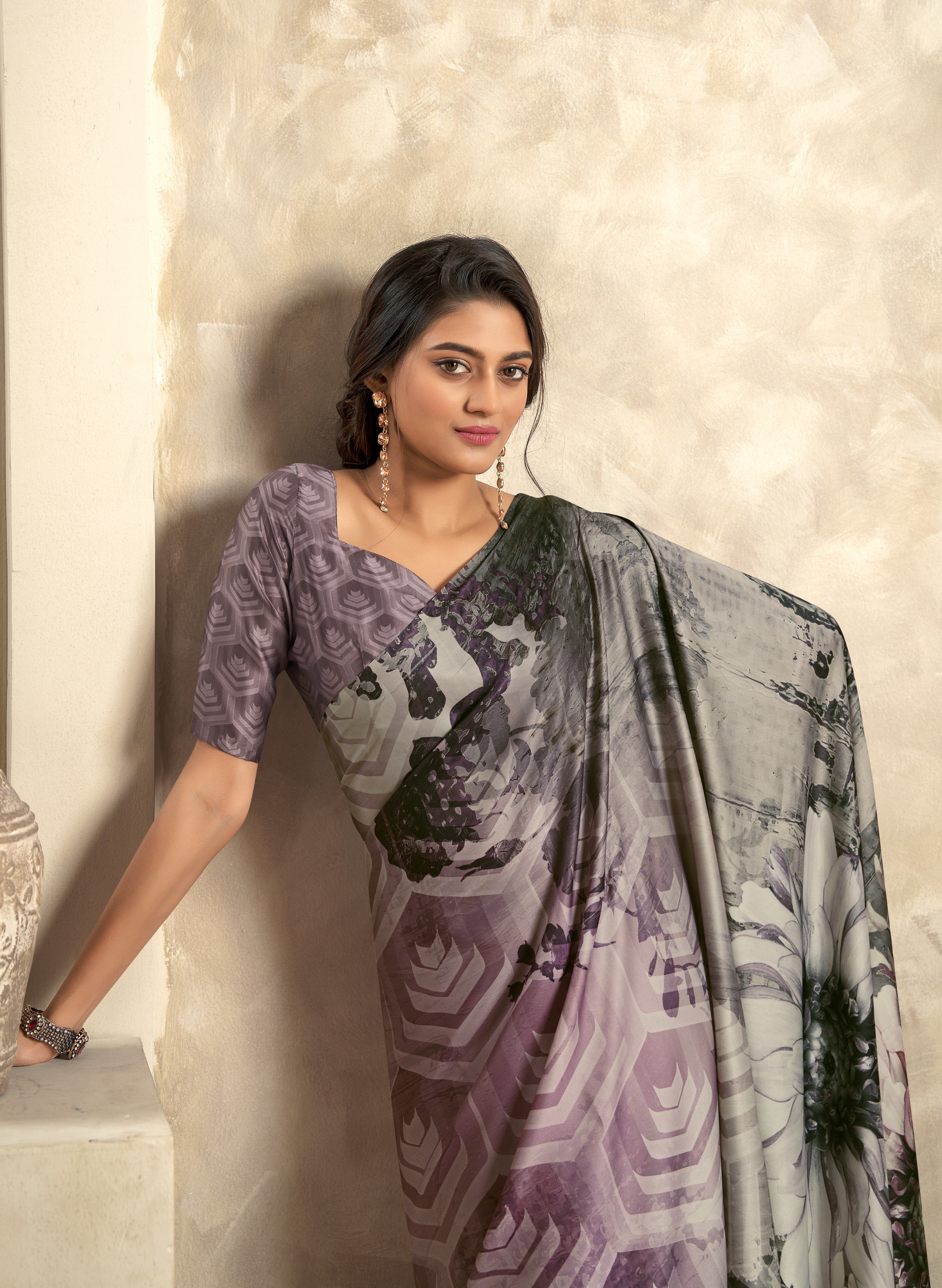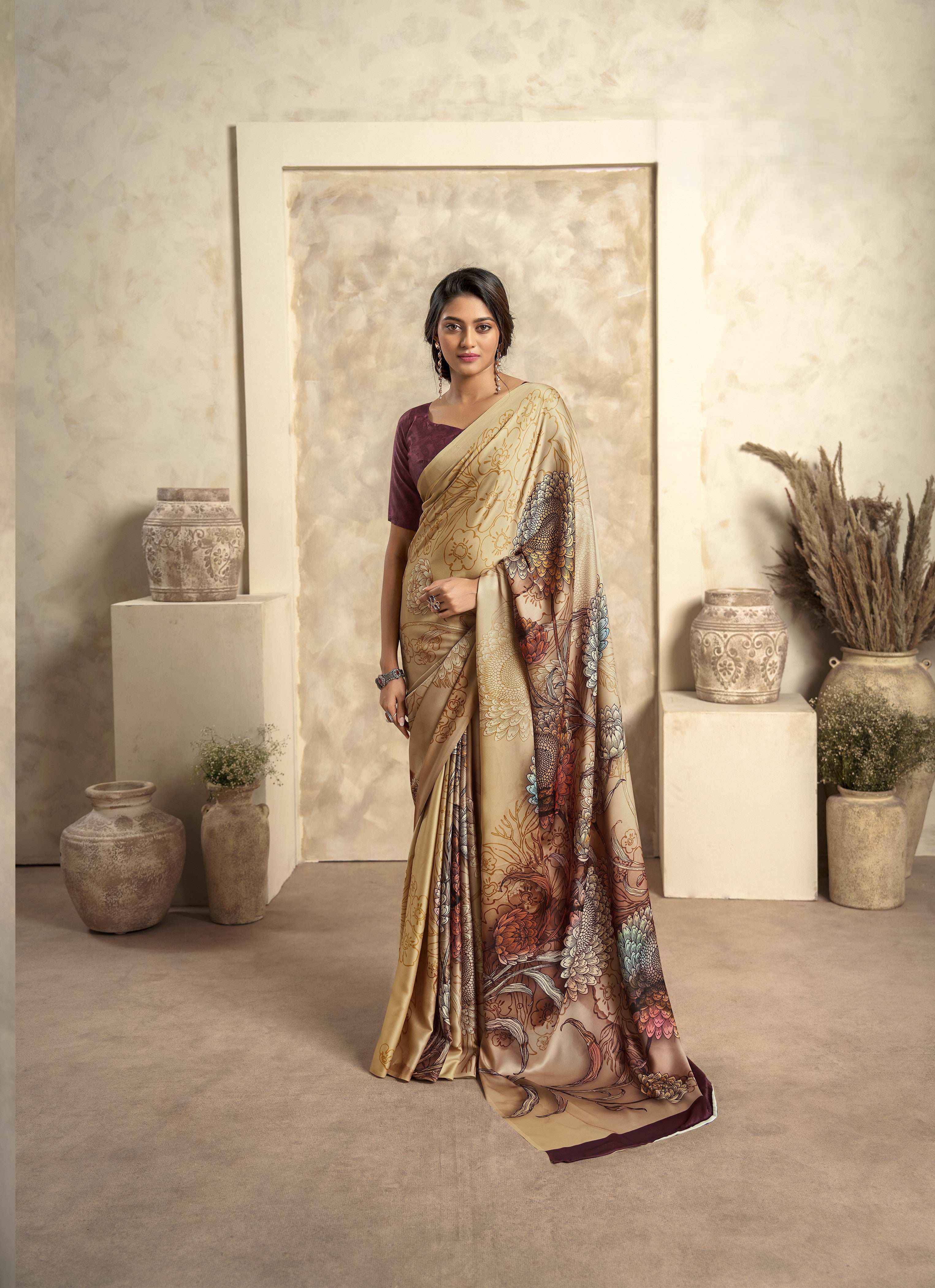 - Satin Crepe Printed Saree