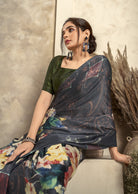 Multi Printed Satin Crepe Saree