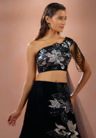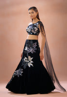 Inayat - Black Velvet Lehenga with Sparkling Sequin & Zircan Detailing