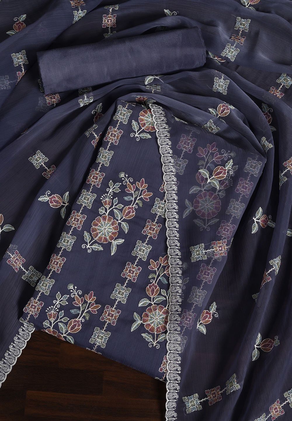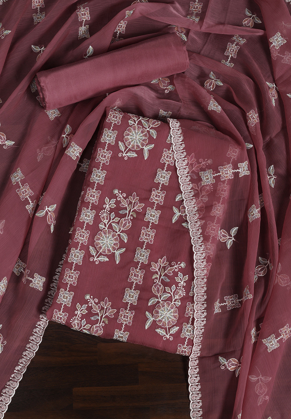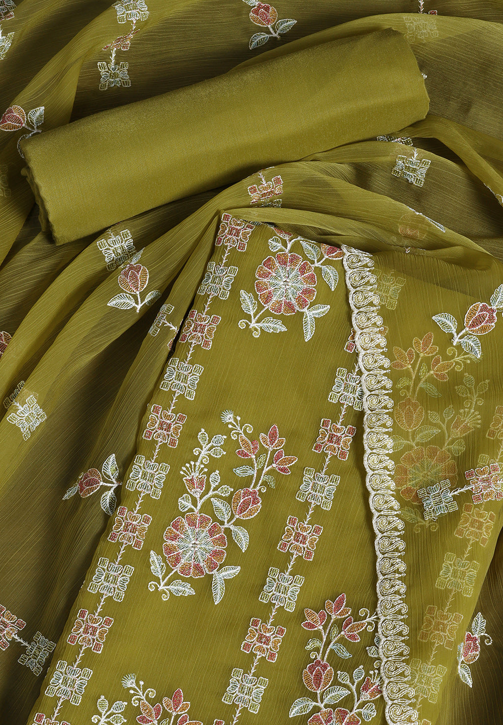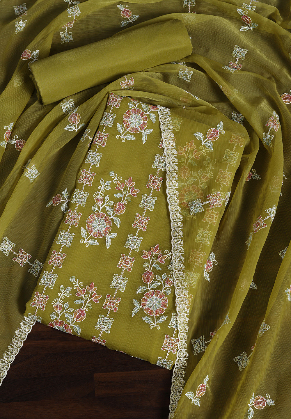 - Chiffon Unstitched Fabric Suit
