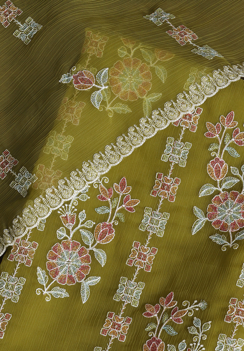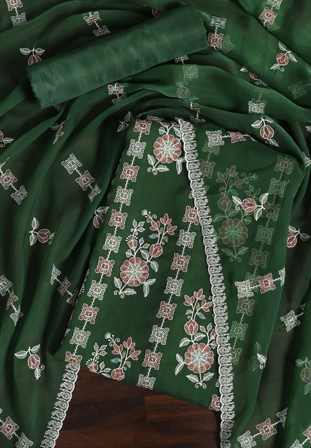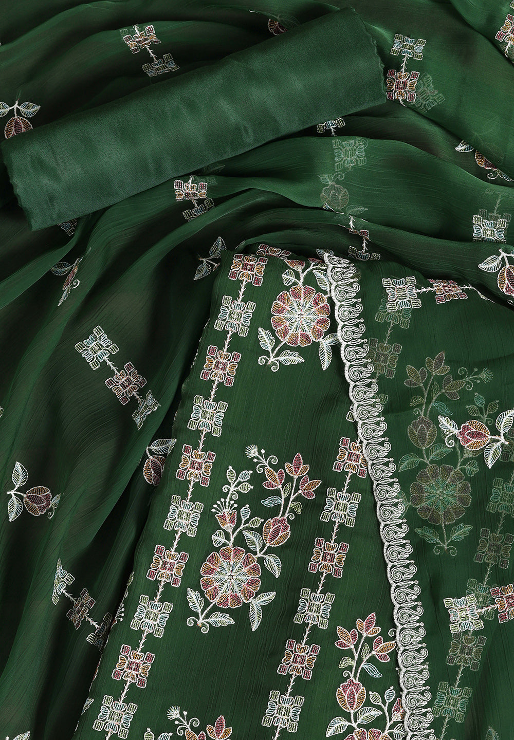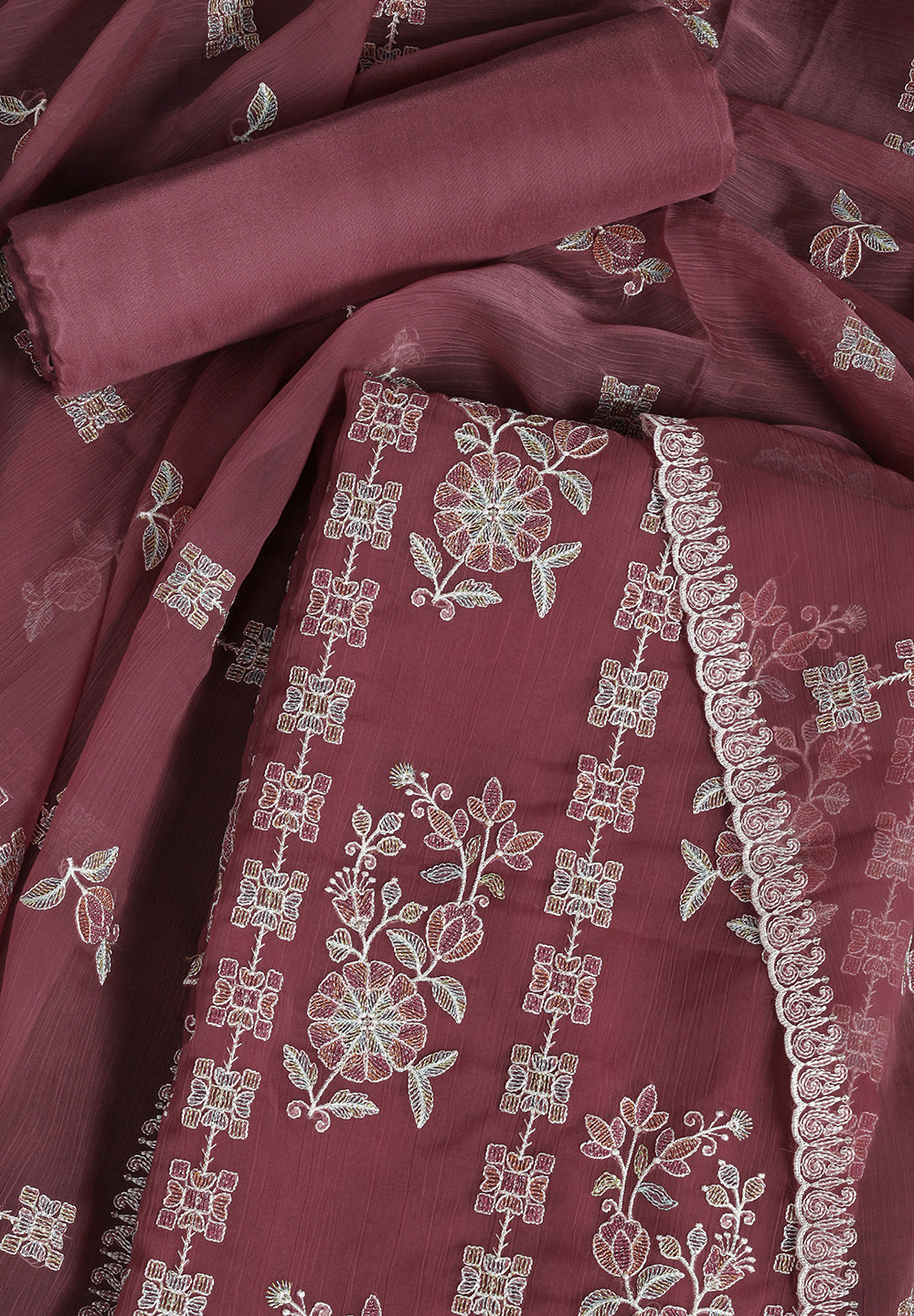 - Chiffon Unstitched Fabric Suit