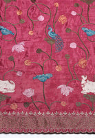 - Scalloped Borders: The edges feature a dense Zari-laden scalloped finish, achieved through precise needlework that prevents fraying while giving the saree a heavy, designer fall