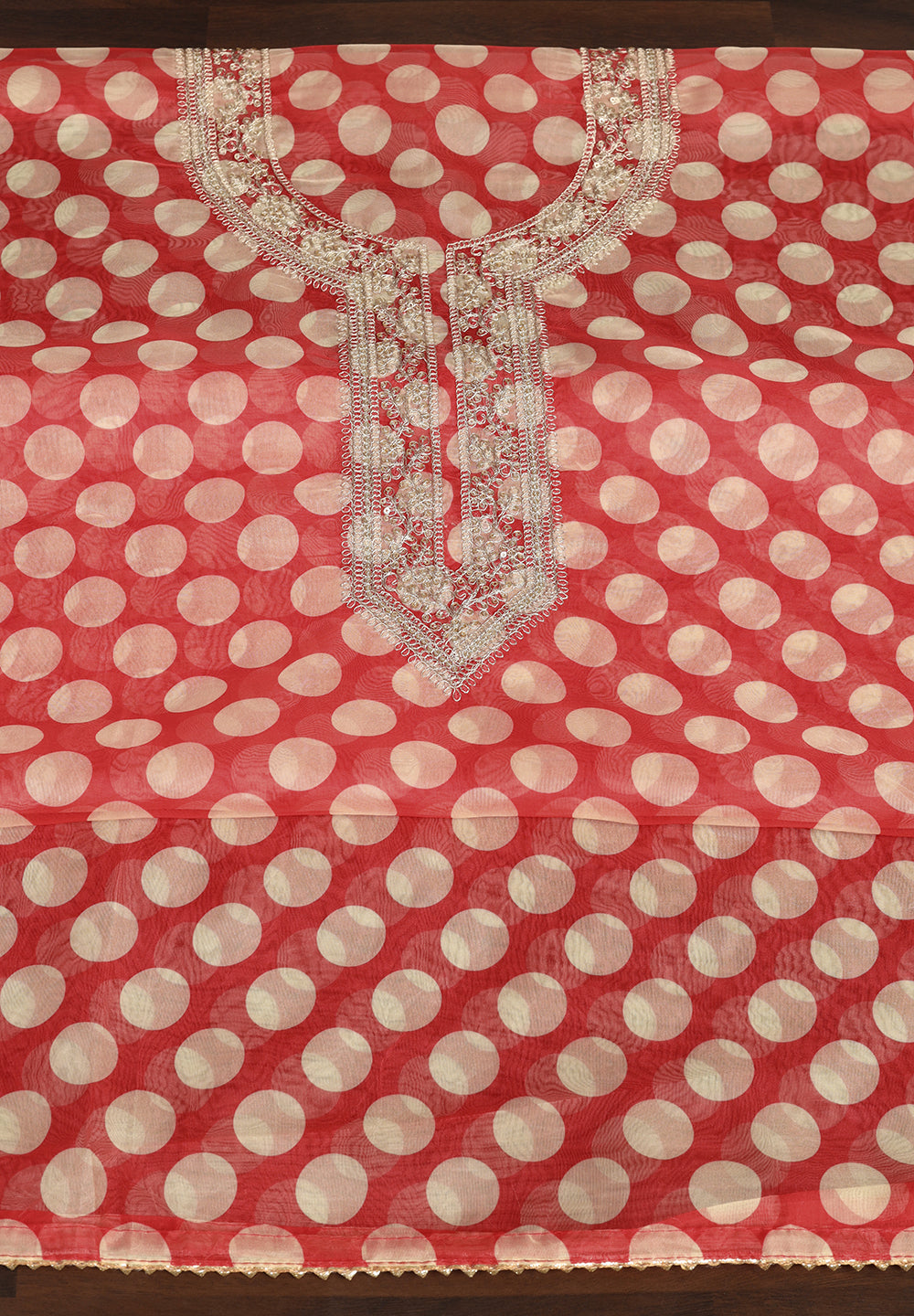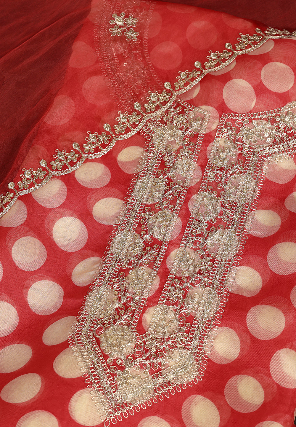 - Accompanied With An Unstitched Santoon Bottom And Organza Dupatta
