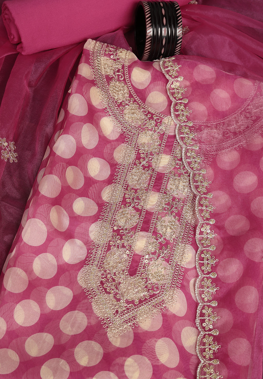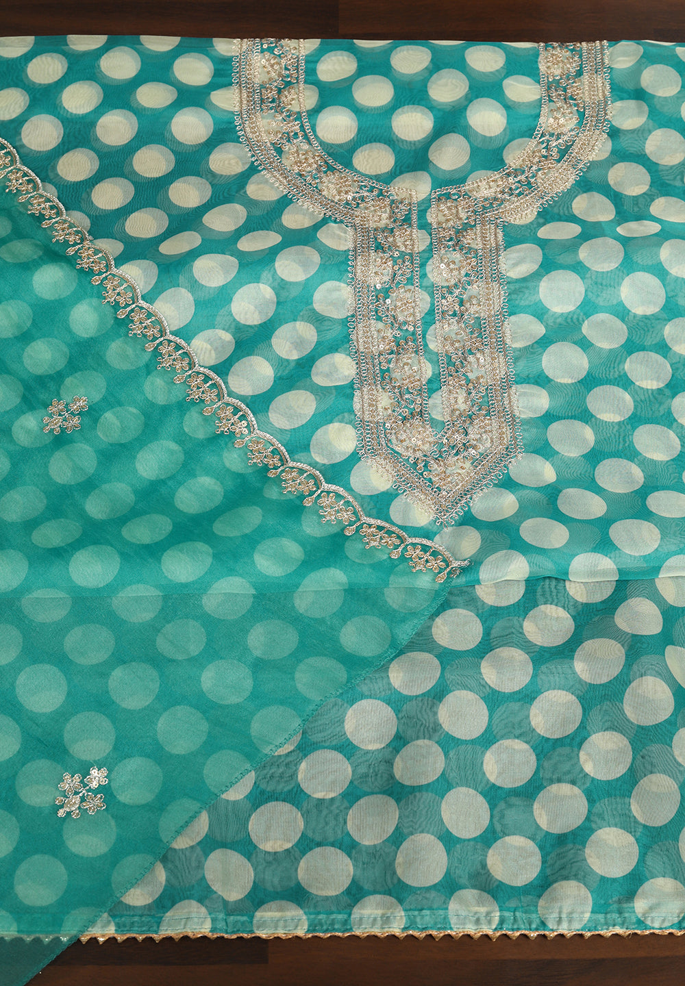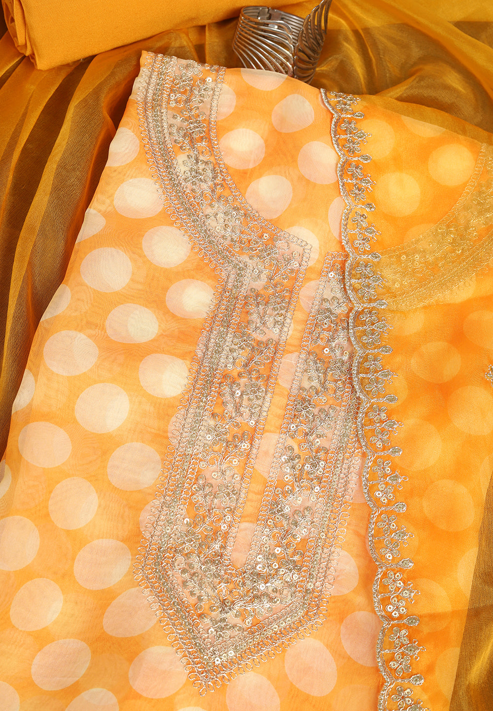 Organza Unstitched Suit with Intricate Aari Sequins Work