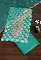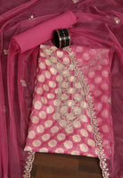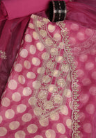 Elevate your style with our Organza Suit Set. The unstitched fabric is adorned with exquisite Aari And Sequins Work, Paired with an unstitched Santoon bottom and Organza Dupatta, the ensemble is designed to bring together the beauty of craftsmanship and elegance. Available in Pink, Seagreen and Yellow Color.