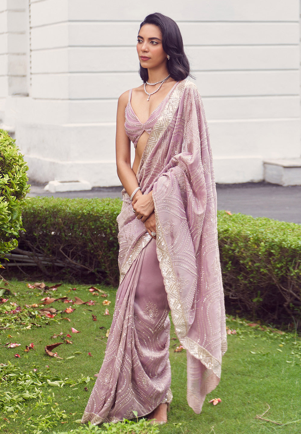 - The border has a beautiful combination of sequence and cutdana work