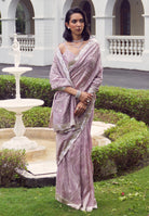 -Pink Tissue Designer Saree is embelished with Cutdana work