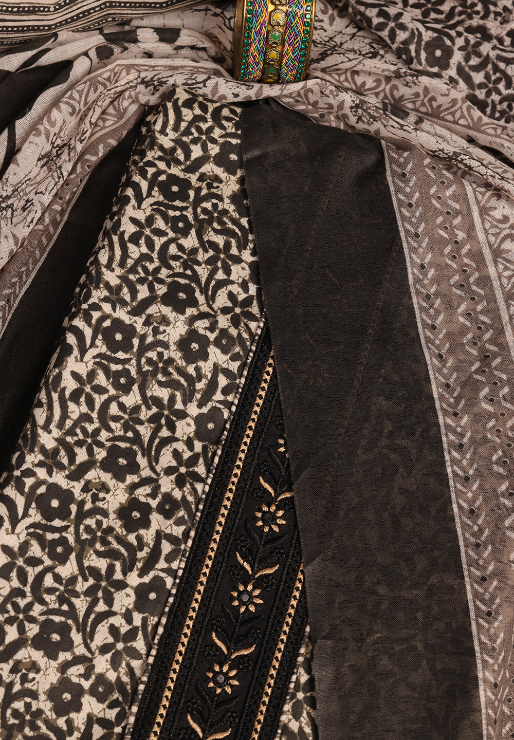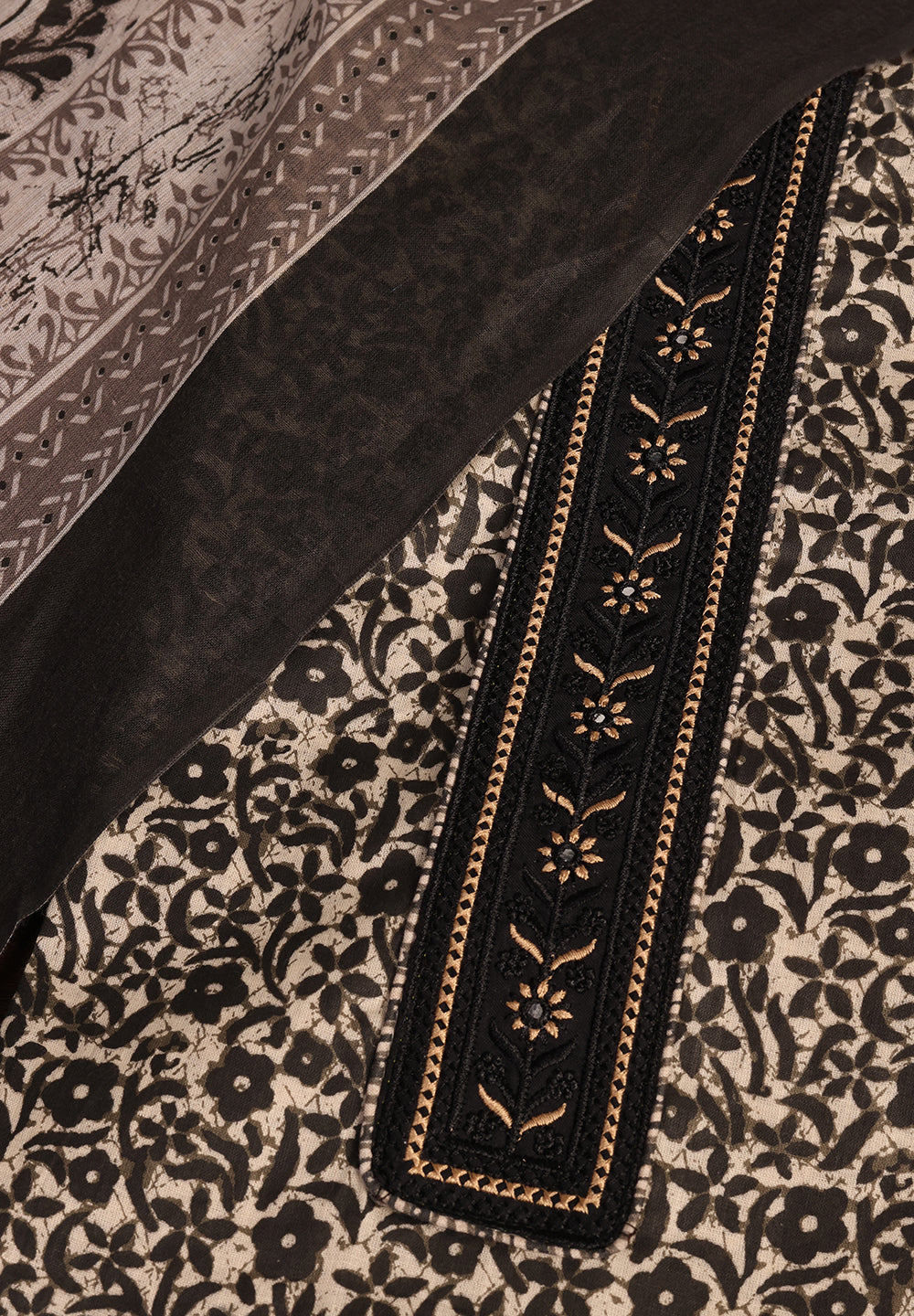 - Elevated With Floral Print unstitched suits combine With Neck Patch