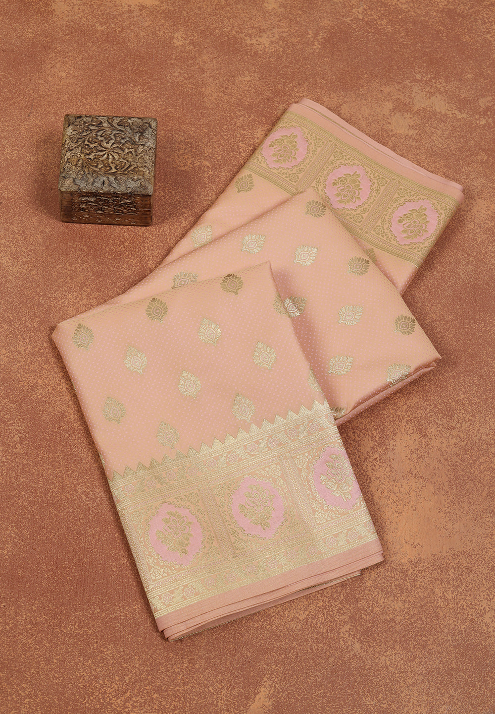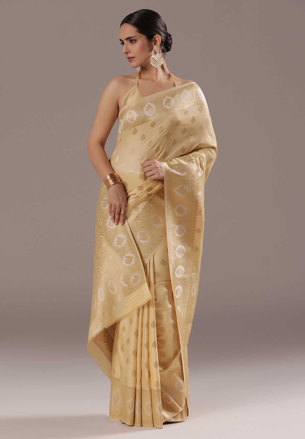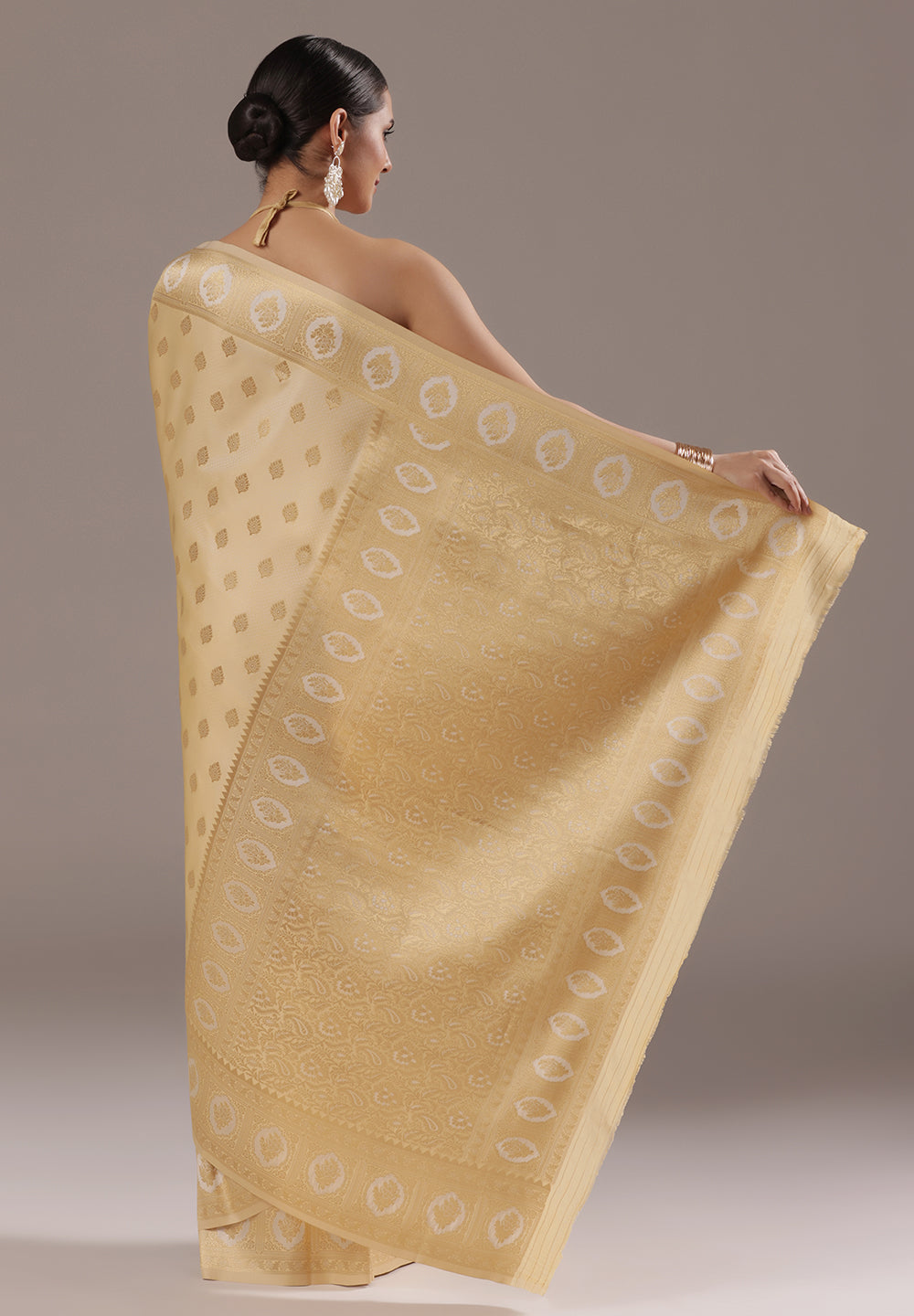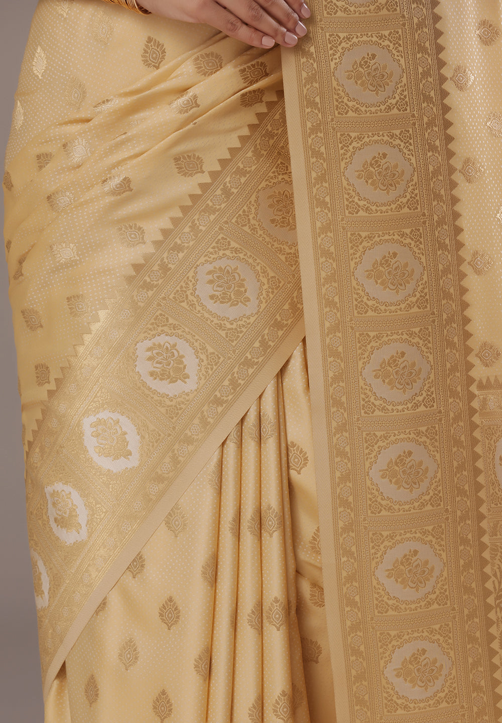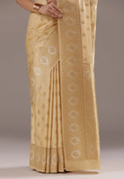 - The Saree is Elevated With All Over Zari