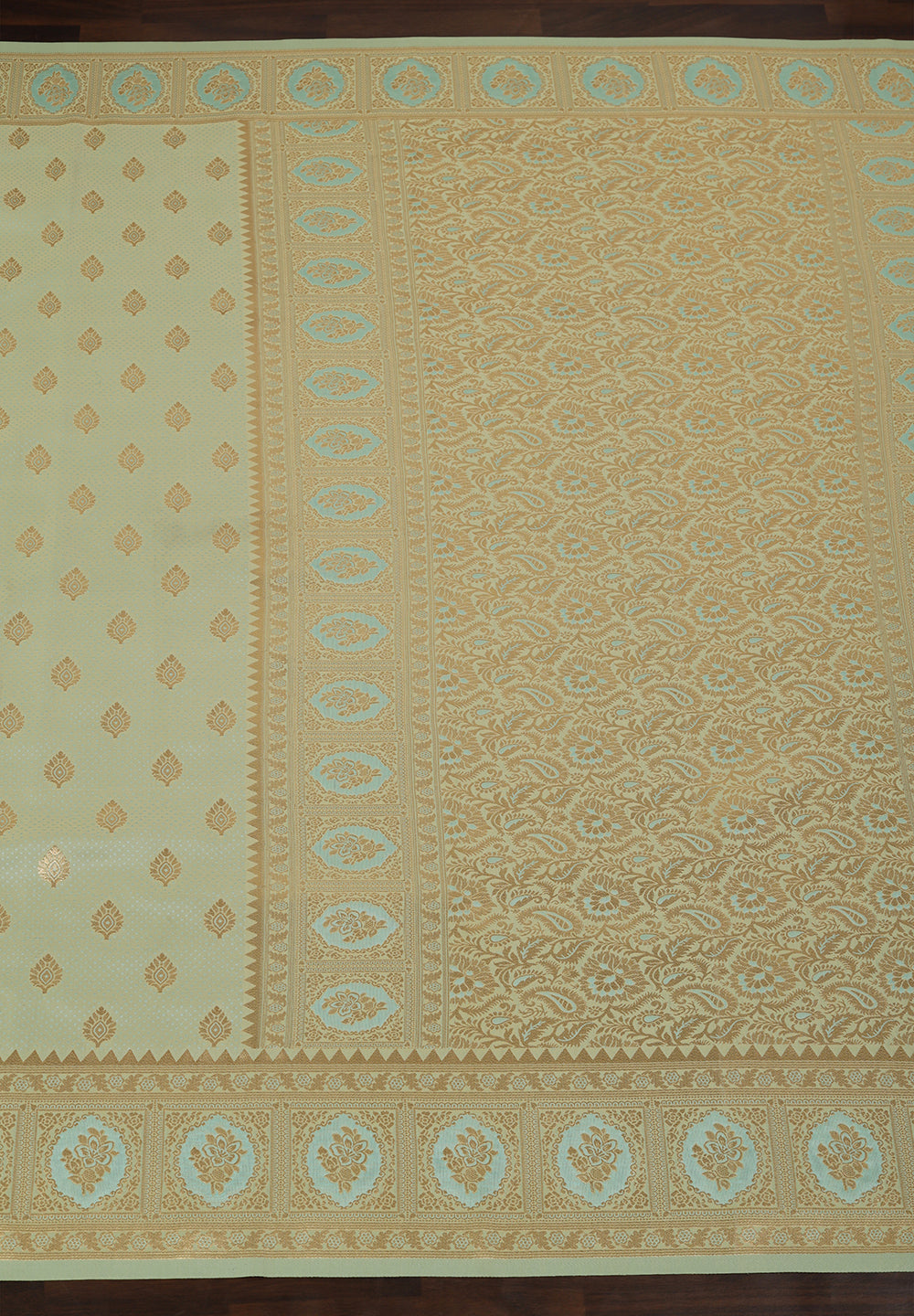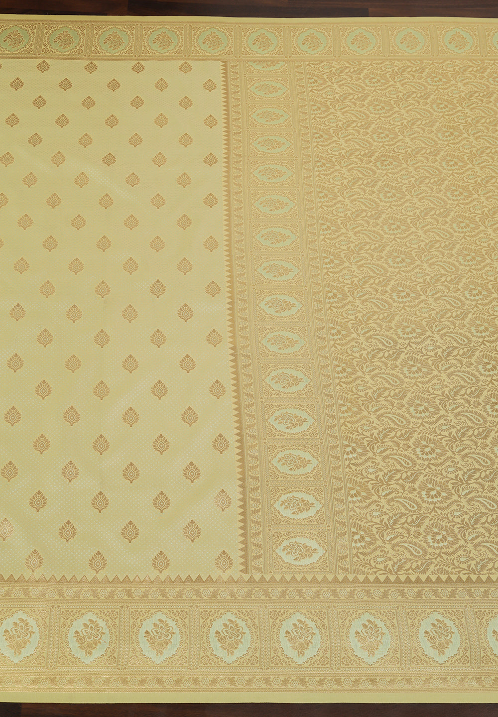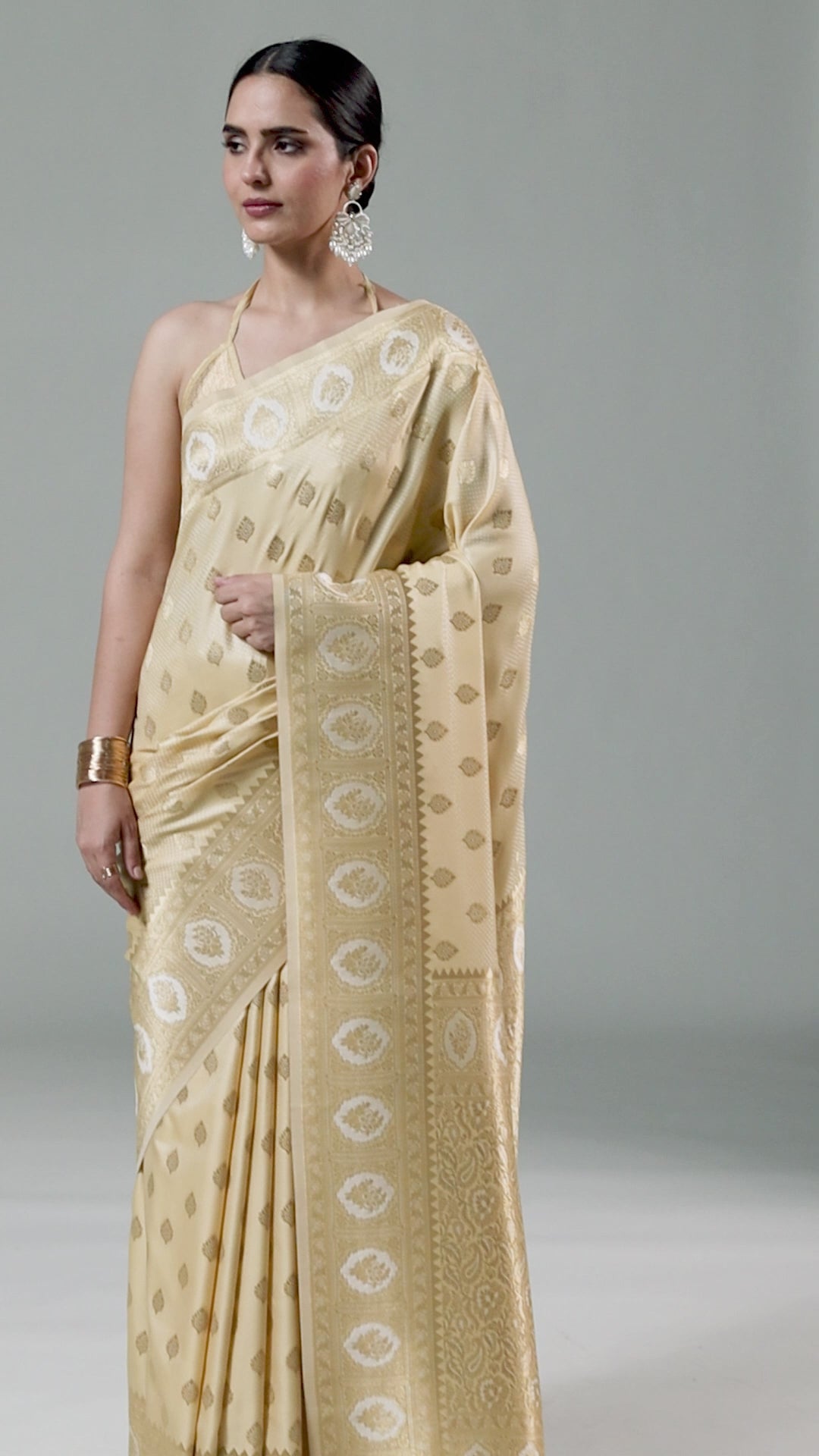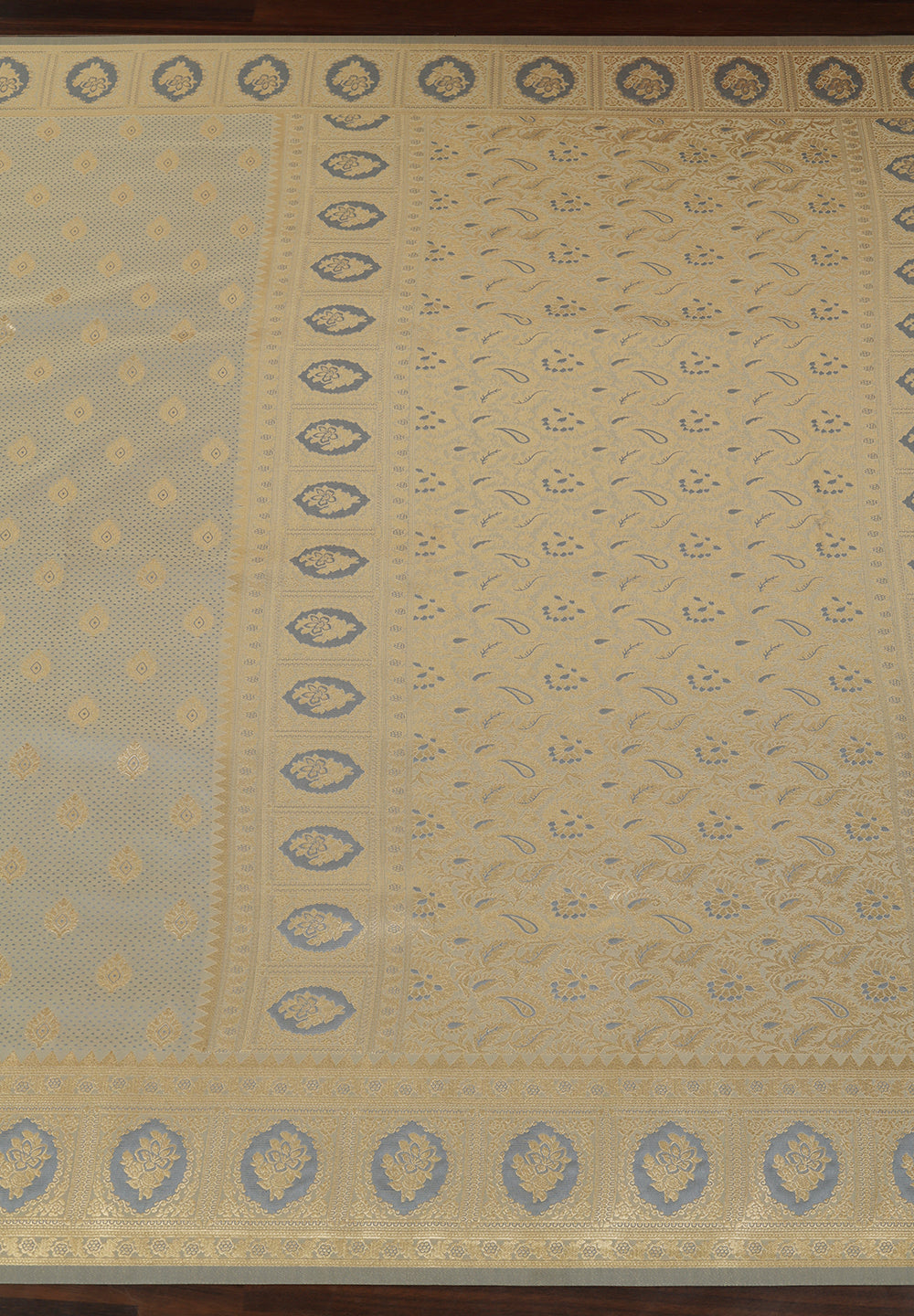 - The Saree is Elevated With All Over Zari