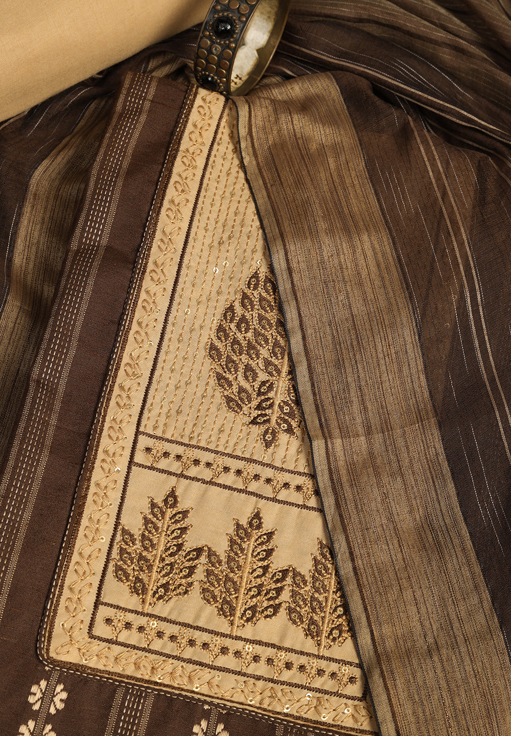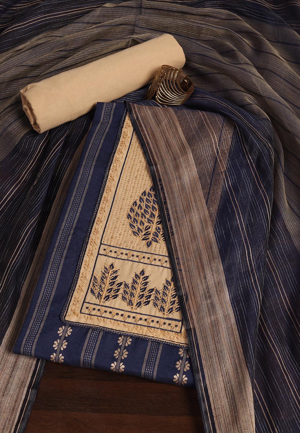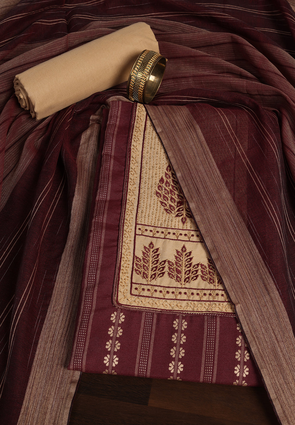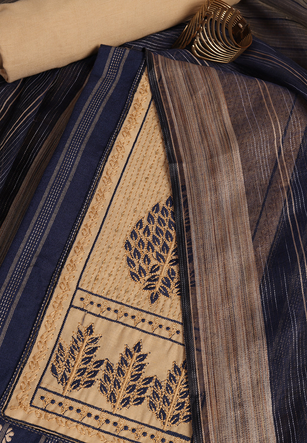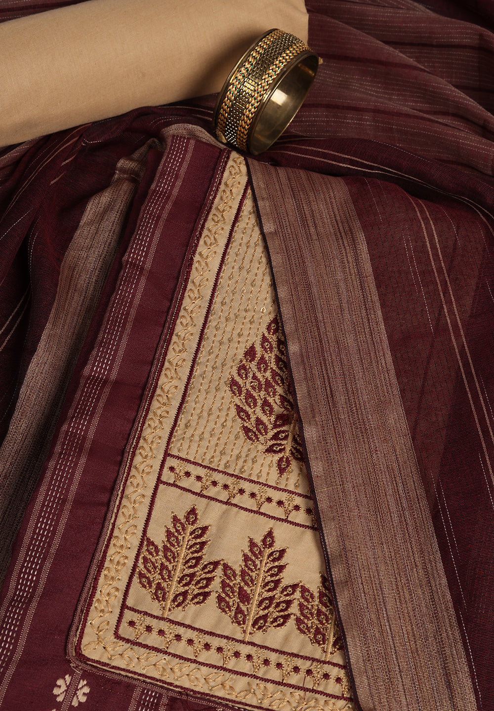 "Unstitched Cotton Suit with Artistic Resham Thread Detailing"