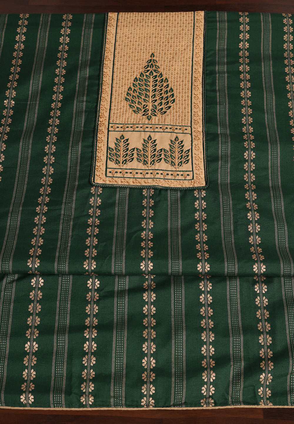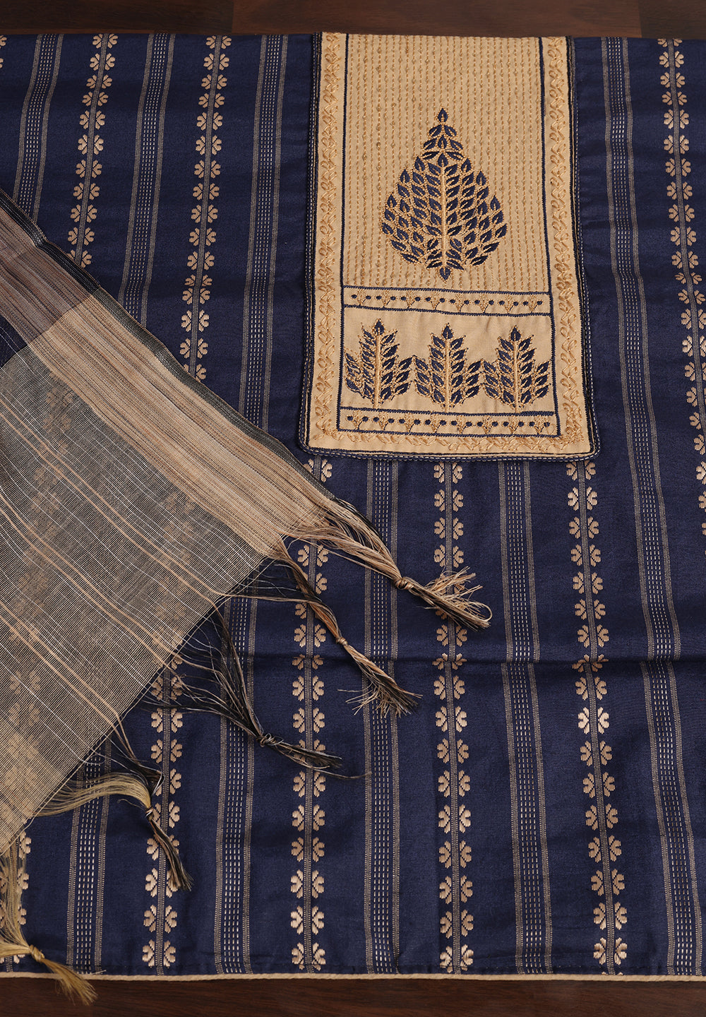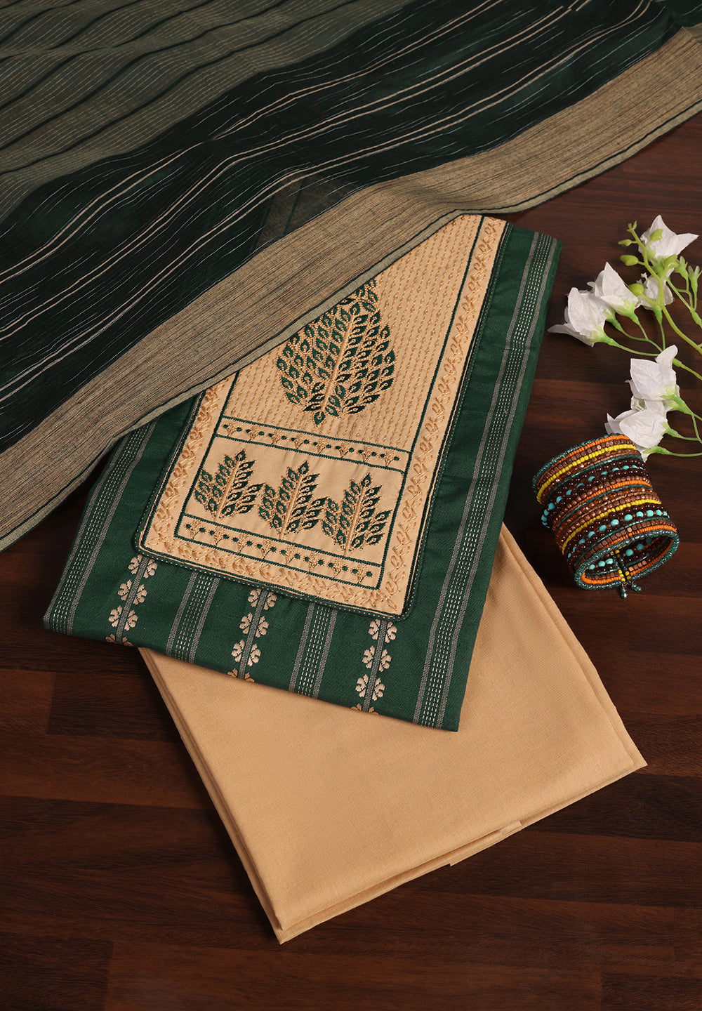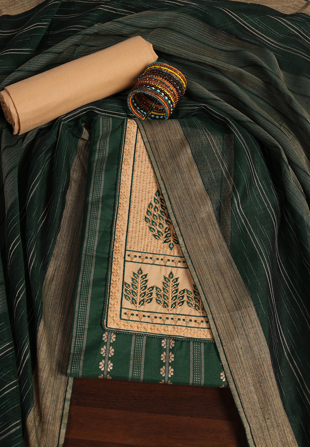 "Unstitched Cotton Suit with Artistic Resham Thread Detailing"