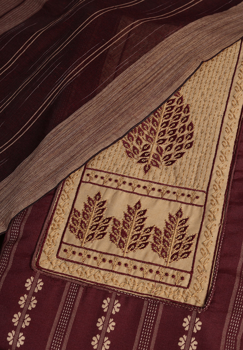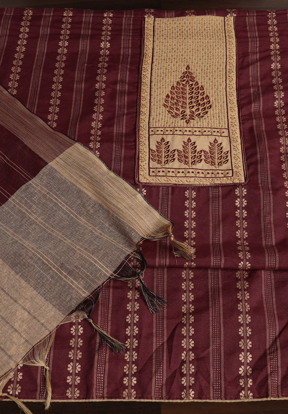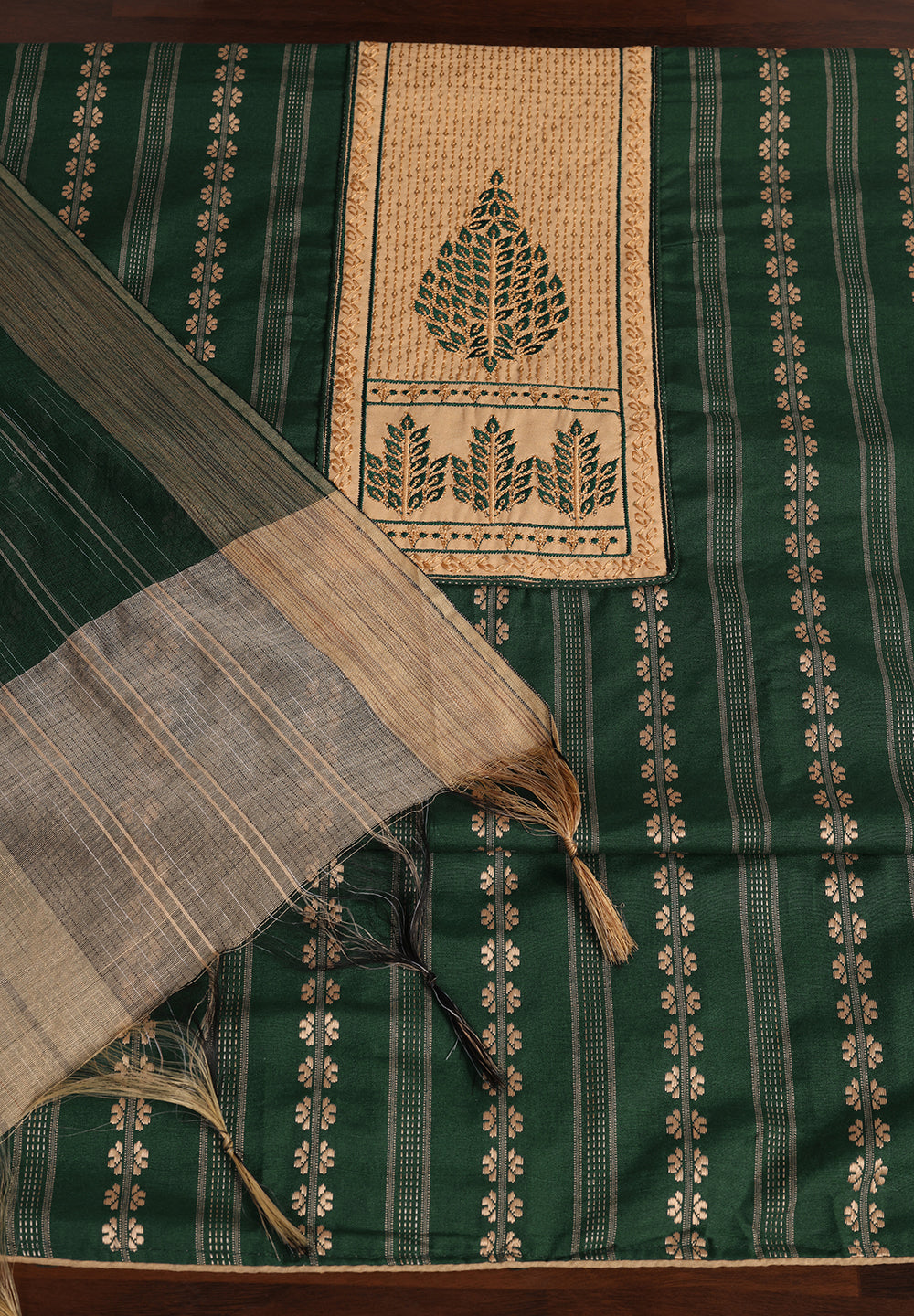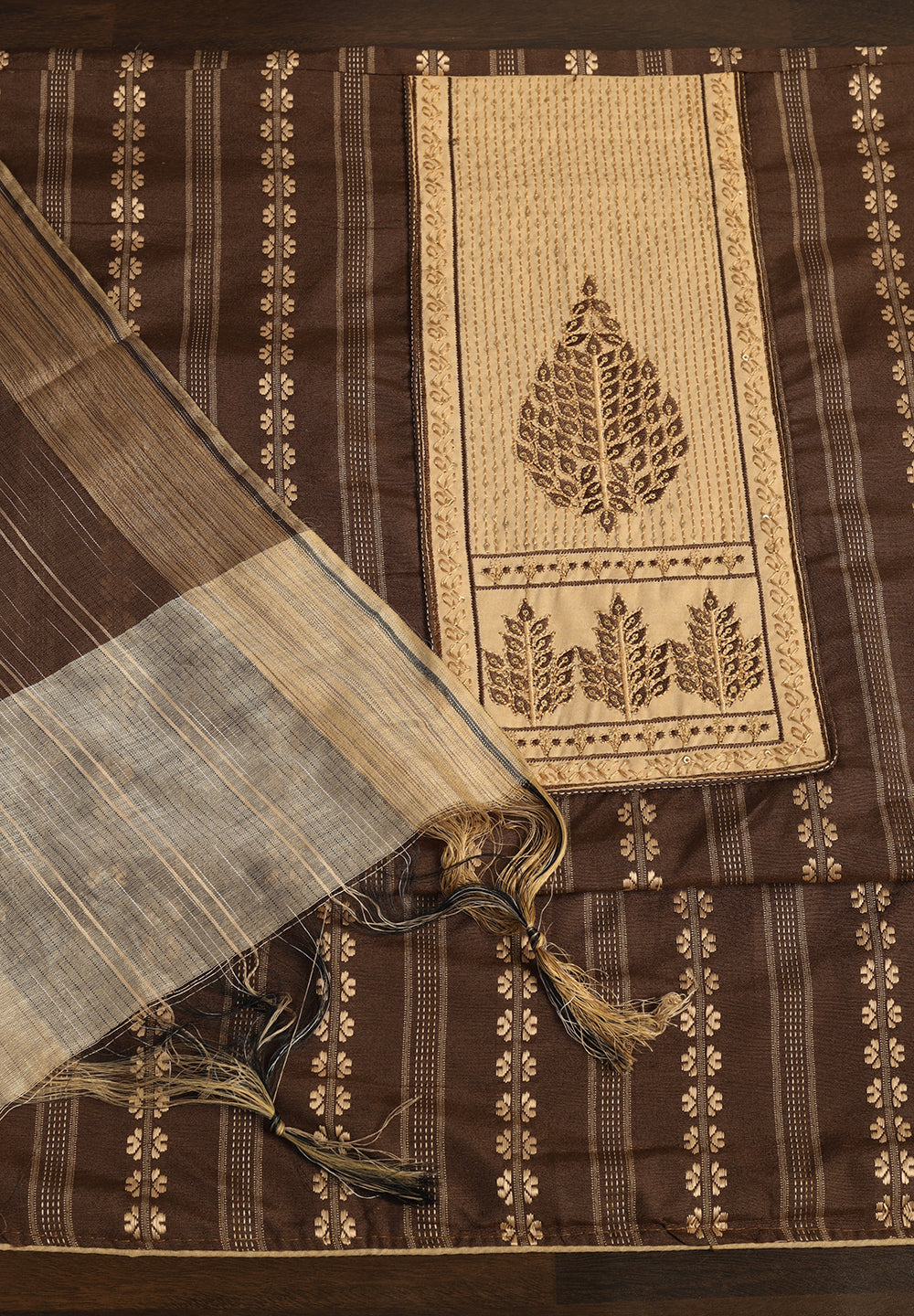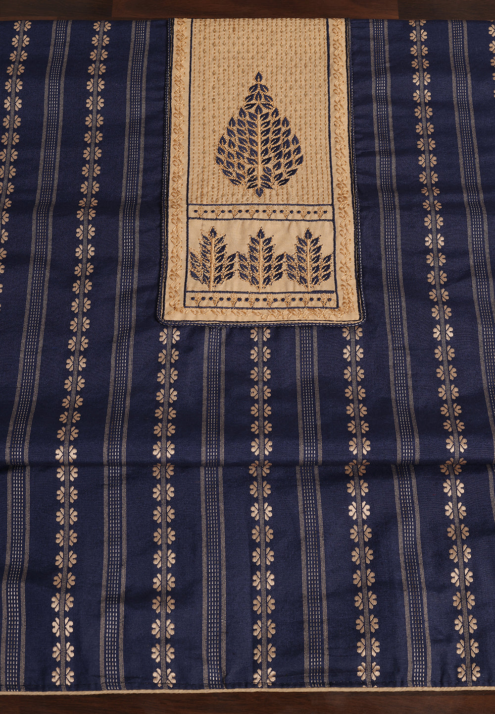 "Unstitched Cotton Suit with Artistic Resham Thread Detailing"